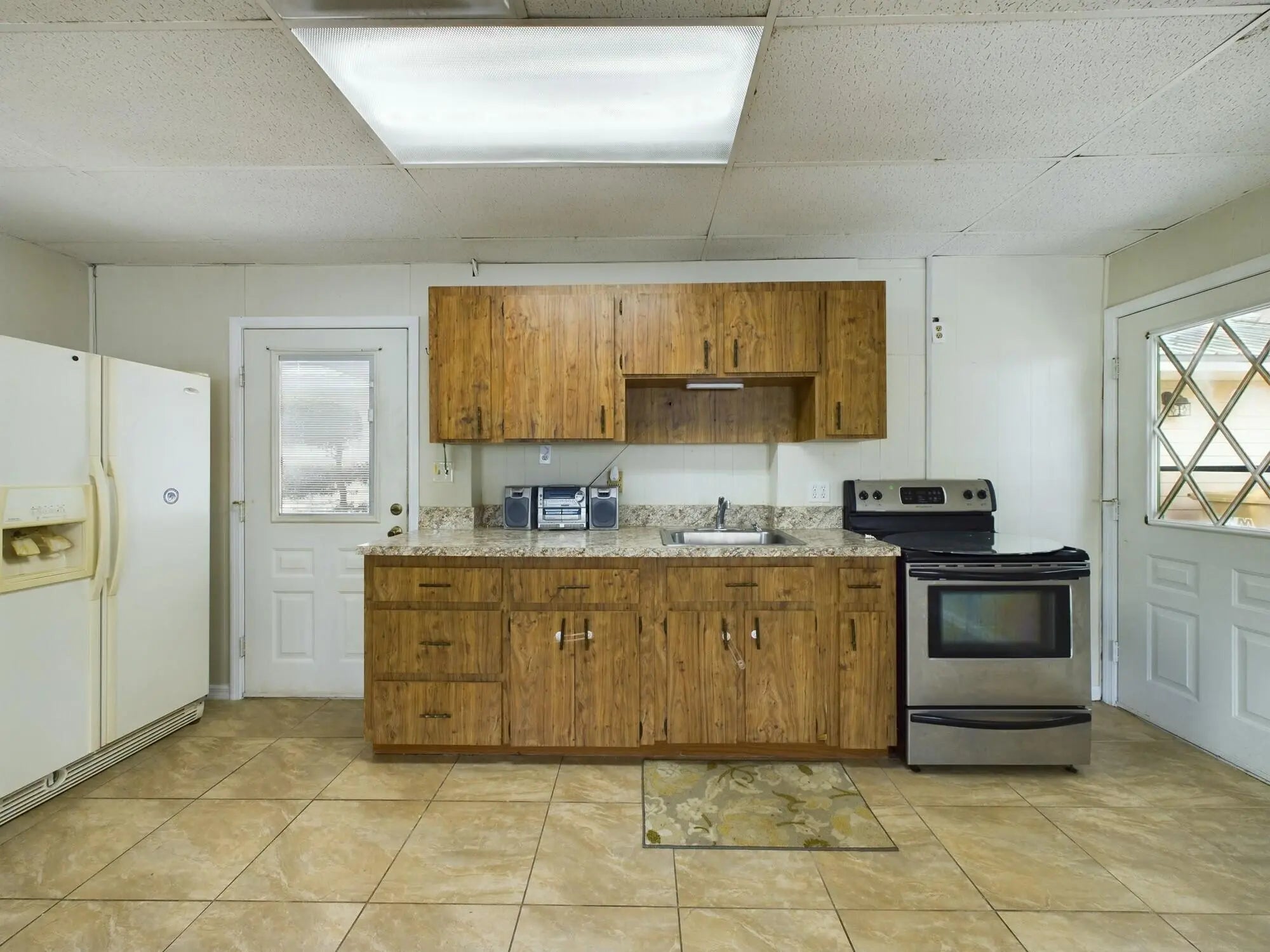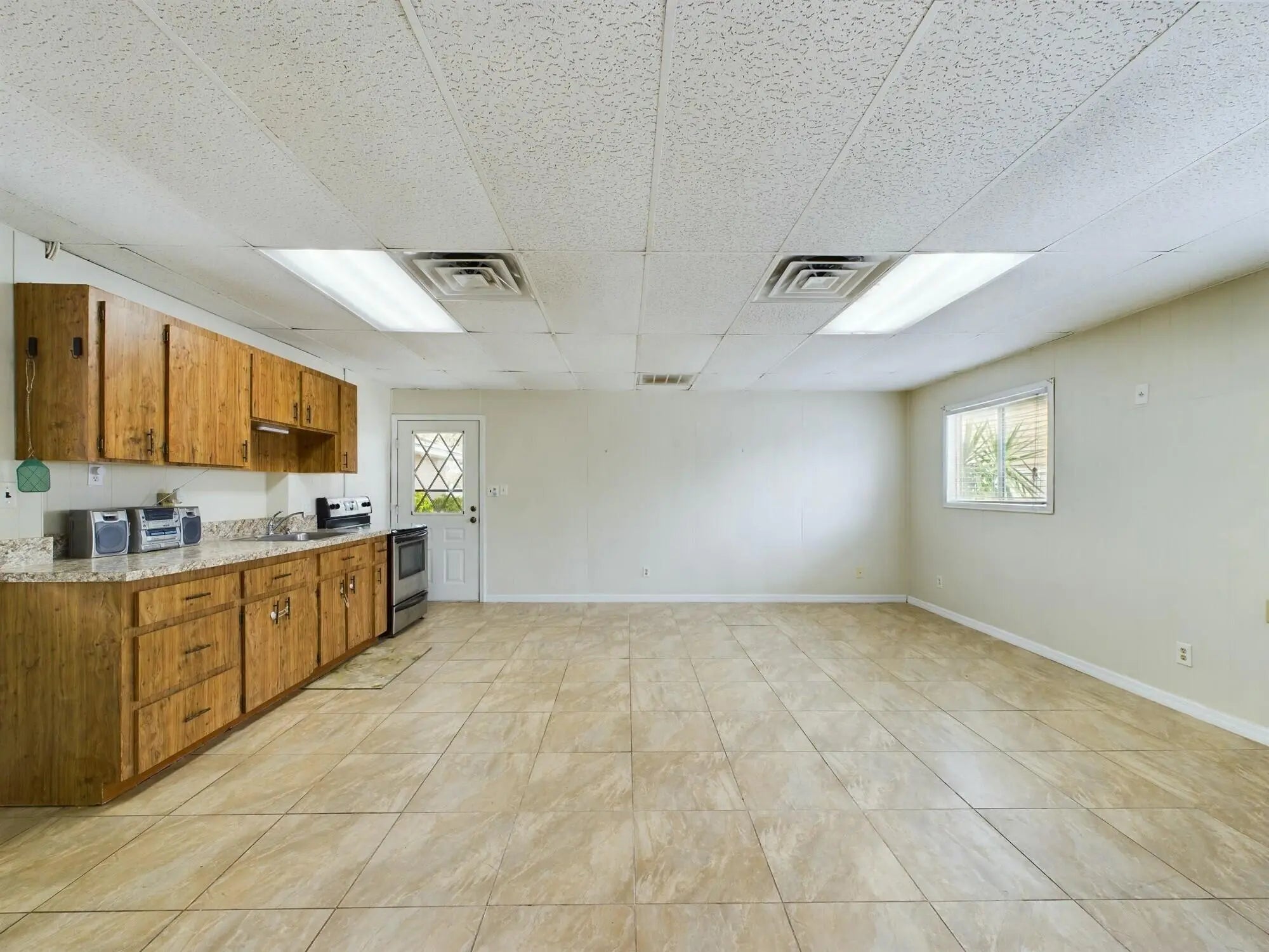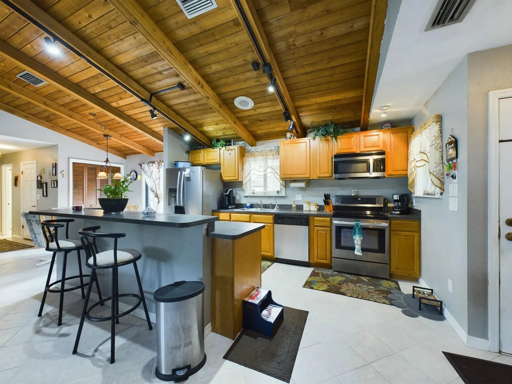 Discover this charming property at 1517 SW 5th Ave in Okeechobee, offering both a spacious main house and a versatile guest house. The main home features vaulted ceilings with exposed beams, creating an inviting and airy atmosphere. It includes 3 bedrooms, 2 bathrooms, and plenty of character. The guest house provides a large 1-bedroom layout, a bonus office or small guest room, and a handicap-accessible bathroom, perfect for extended family or rental opportunities. Enjoy outdoor living in the fenced backyard with an open patio, ideal for relaxing or entertaining. The property boasts metal and hurricane windows and shutters for added security and durability. The carport canvas will be replaced before closing for the buyer's convenience.