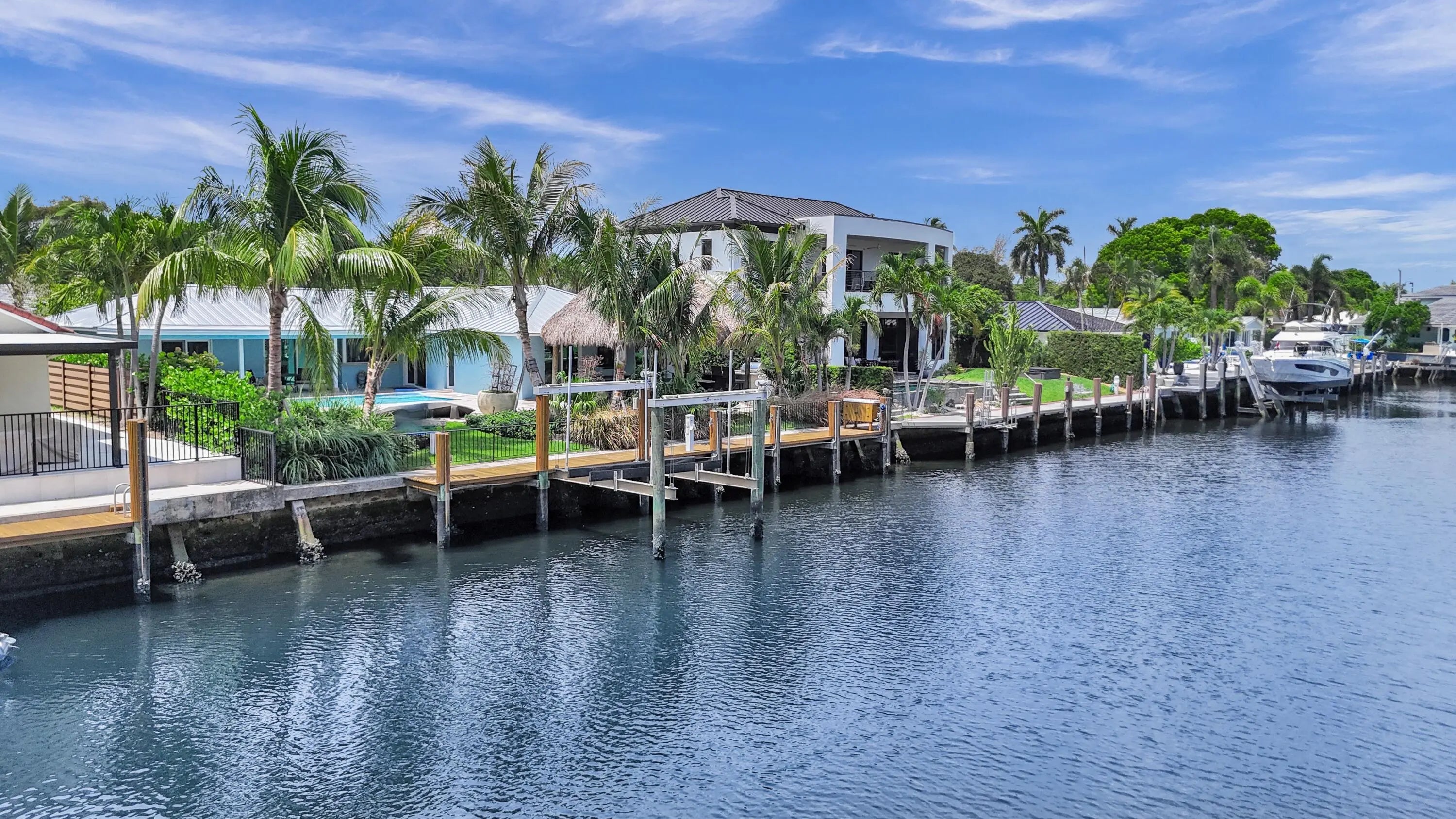 A Coastal Haven in Coveted Little Harbor! Welcome to 1107 Little Harbor Drive, a rare opportunity to own a meticulously maintained, luxuriously renovated and fully furnished 3-bedroom, 2-bathroom waterfront residence in one of Deerfield Beach's most sought-after enclaves. With 80 feet of pristine water frontage in a no-wake zone just off the Hillsboro River, this boater's paradise offers effortless access to the Intracoastal, Boca Inlet, and Hillsboro Inlet. Tucked beside a tranquil cove with sweeping views of both the exclusive estate homes and the protected beauty of Deerfield Island Preserve, this home provides a stunning and serene backdrop for everyday living. The dock, dock pilings, and a 16,000 lb boat lift, all installed in 2022, ensure a seamless boating experience. Perfect for entertaining, the outdoor living space features an oversized pool, fully equipped summer kitchen, and a spacious tiki hut for laid-back luxury. Inside, the home boasts a stunning chef's kitchen with oversized island, luxurious marble countertops, a Viking gas stove and double sided Gaggenau fridge and freezer. The thoughtfully designed split floorplan is complemented by a spacious, light filled family room overlooking the inviting pool and connecting the primary suite including walk-in closet with the two secondary bedrooms and conveniently located cabana bathroom. Additional upgrades include hurricane-rated PGT windows and doors, all new flooring throughout, updated AC ductwork, PVC plumbing, and a smart ADT security system with 8 cameras. A brand new metal roof will be installed in the coming weeks. Set within a prestigious neighborhood, this home is just minutes from world-class dining, shopping, and the award-winning beaches of Deerfield. This is South Florida living at its finest.