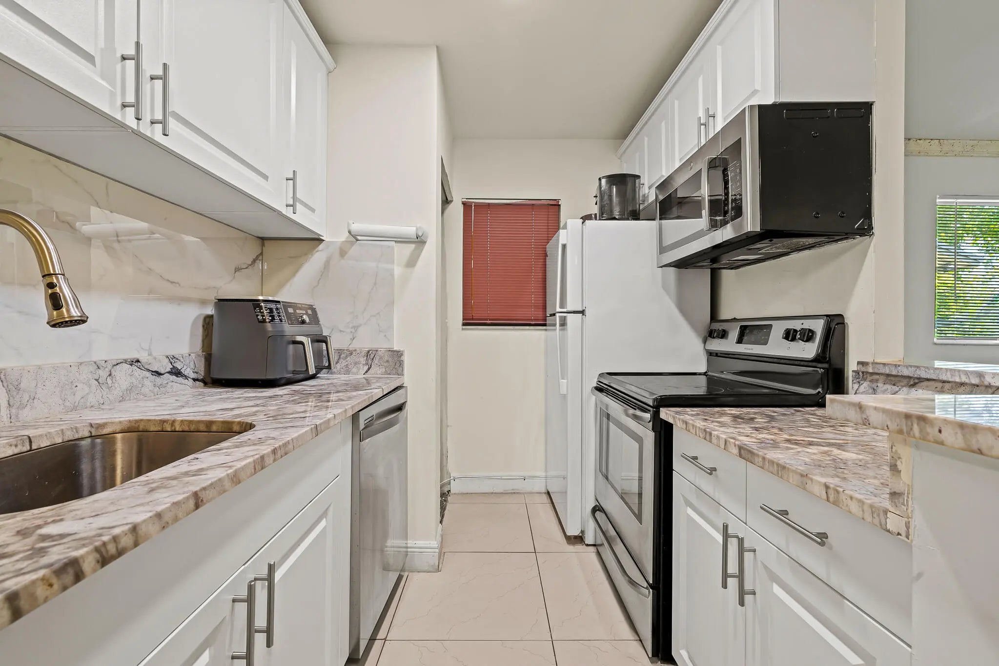 Exceptional value in the heart of Deerfield Beach. This updated corner unit in popular Tivoli Trace (an all-ages community with good reserves and recent building updates) offers a bright, private setting with a tranquil preserve backdrop, creating a calm and natural view from your screened balcony without any parking lot distractions. Inside, the home features sleek, polished tile floors throughout, an updated kitchen with white cabinetry and quartz countertops, in-unit washer/dryer, and two updated bathrooms. The community offers resort-style amenities, including a heated pool and jacuzzi, and is ideally located just minutes from the beach, I-95, shopping, and dining. One of the best opportunities in Tivoli Trace.
