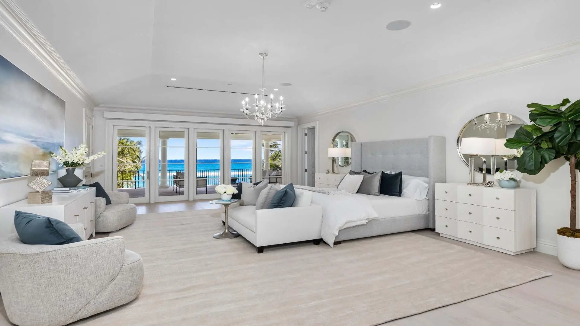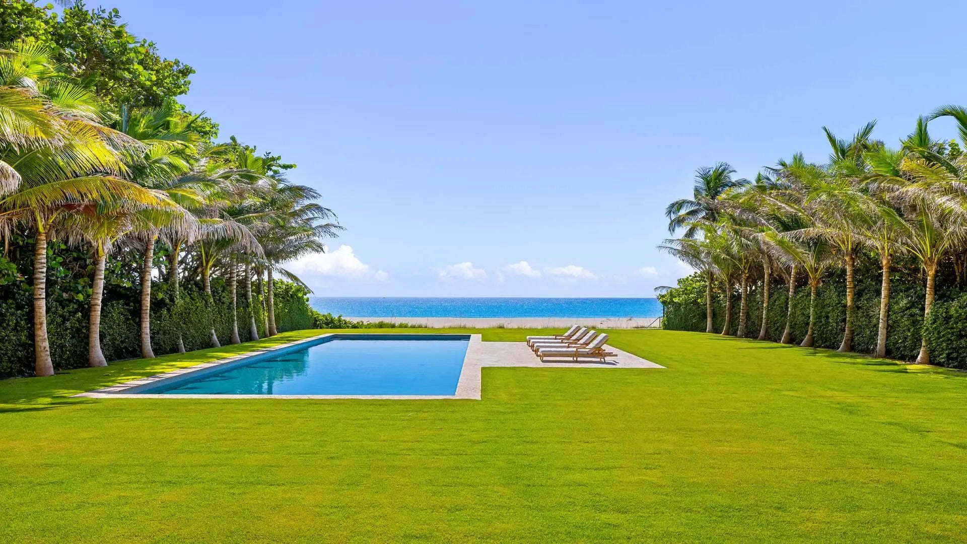 A rare opportunity to own a fully renovated direct oceanfront estate in Palm Beach. Ideally located south of Worth Avenue and north of Manalapan and Delray Beach, this ultra-private, move-in ready residence offers expansive ocean views, a deep backyard with lush tropical grounds, two pools, a theater, gym, and guest/staff quarters, all within close proximity to elite shopping, dining, schools, and private airports. With its rare combination of location, scale, privacy, and sophistication, this direct oceanfront estate presents an extraordinary opportunity to enjoy the very best of Palm Beach living. PROPERTY HIGHLIGHTS Palm Beach's Schuler Award Estate Overview " Direct oceanfront British Colonial-Style estate " Located just south of Worth Avenue and north of Manalapan and Delray Beach " Ultra-deep lot with expansive private backyard and deep sandy beach " Gated, extremely private, with separate guest and staff parking Exterior Features " Brand new 60' x 20' pool plus secondary pool " Complete exterior repaint " Tropical resort-like landscaping: " 127 palm trees " 26 sea grapes " Green Island ficus, podocarpus, new sod, ferns & groundcover Interior Renovations " All bathrooms fully renovated " Whole house interior paint with Level 5 drywall finish " Custom marble fireplace " New windows throughout (retained high-quality existing doors) " Reimagined master suite with full-glass ocean-view windows and custom his/her closets " Open-concept kitchen and redesigned butler's pantry with breakfast area " Elegant new staircase, custom bar, media/library area " Two laundry rooms (first and second floors) " New wine room cooling system " Gym with rubber floors and mirrored walls " Refinished game room with custom flooring " Added bedroom in second-floor west wing Smart Home Features " Integrated Ketra Lighting System with circadian rhythm technology " New Lutron switches and plates " Invisible-ceiling speakers and whole-house sound system Luxury Amenities " Two resort-style pools " Fully equipped gym " Home theater " Wine room " Game and billiards room " Guest/staff quarters with private parking