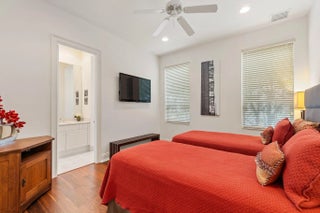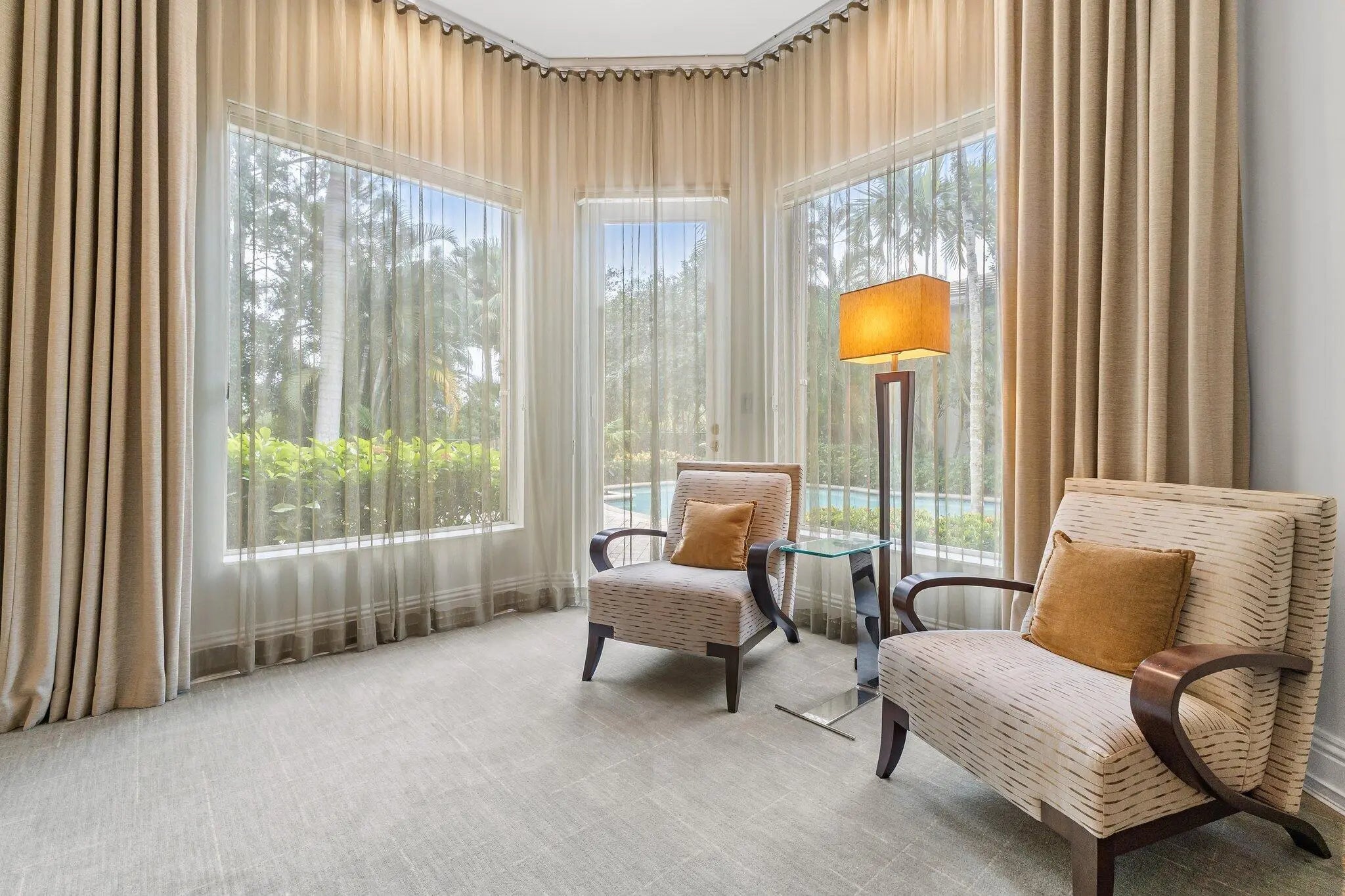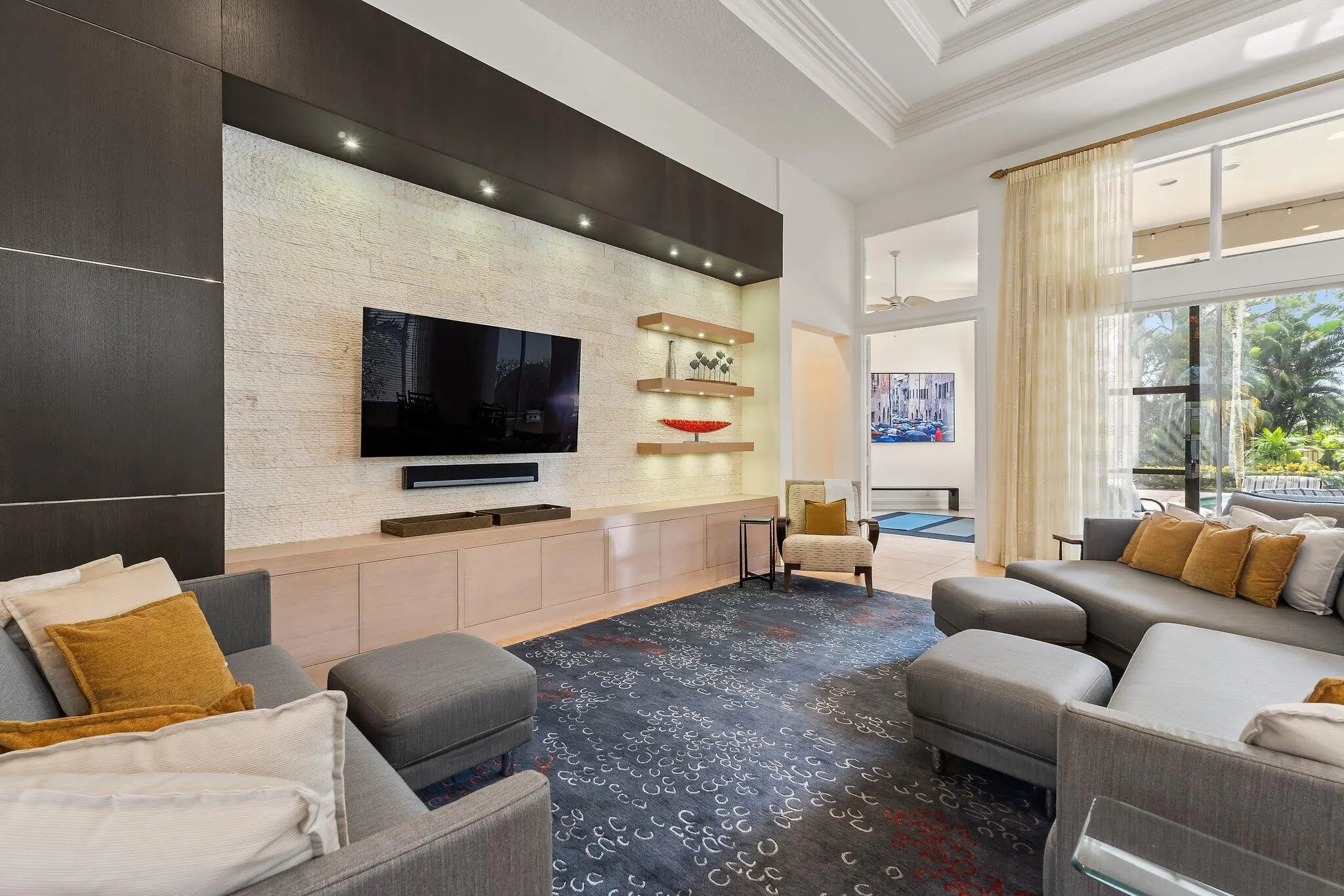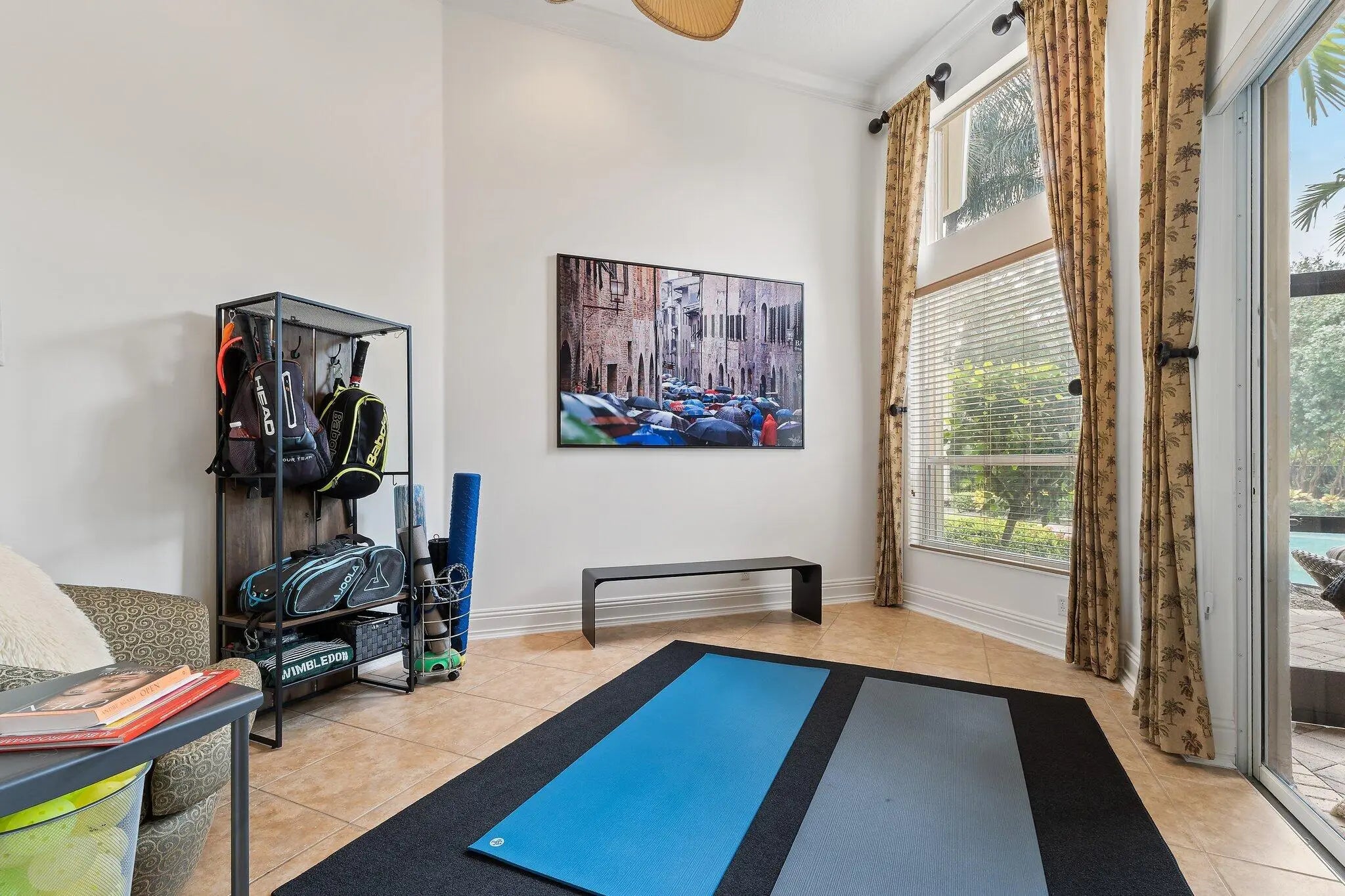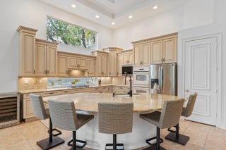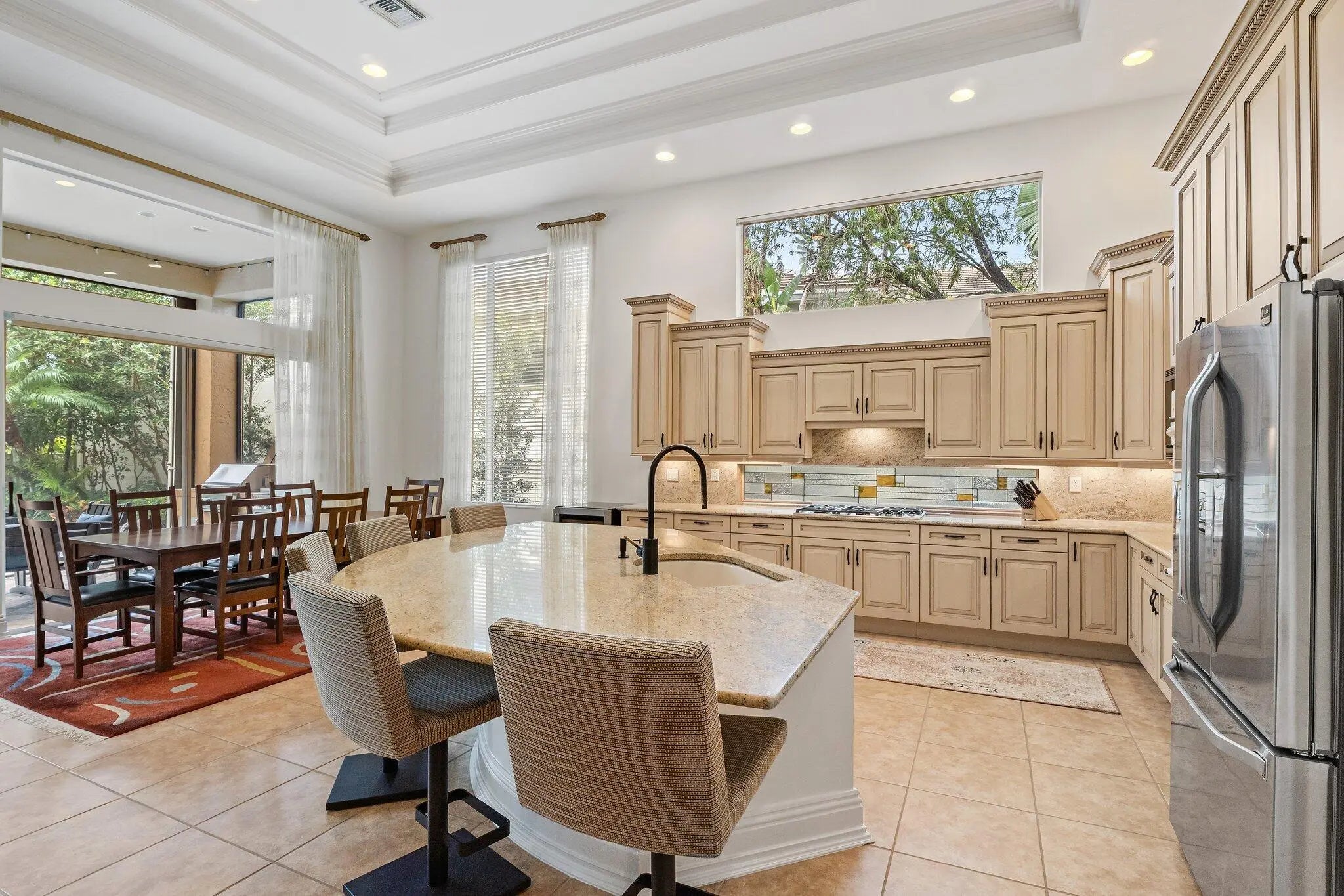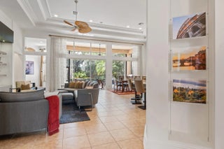Beautiful single-story home on desirable Via Paradisio in Mirasol Country Club, a short walk to all of the club's amenities (including soon-to-open indoor pickleball facility) and a quick drive to the community entrance/exit. This immaculate Bernini II floorplan has over 3,000 SF of living space boasting a light-filled great room, 3 bedrooms plus an office, 4.5 bathrooms, formal dining/bonus room, a 2.5 car garage, and a new roof (2024). Upon entry, you'll be greeted by an expansive foyer with beautiful architectural archways, custom stained glass impact door, a 24-foot ceiling, and garden views on display through the wall of windows on the back of the house. The entertaining space features an open-concept kitchen with island bar seating, eat-in kitchen area, and seamless transition to the family room and lanai/patio dining area. The family room is updated with modern built-ins on the focal wall with custom cabinetry/storage. The generously-sized primary suite is perfect to enjoy views from the sitting area and boasts two walk-in closets and his and her bathrooms, his also serves as a cabana bath. Two ensuite guest bedrooms have stunning walnut wood flooring, bathrooms, and ample closet storage. Enjoy indoor/outdoor living and step out to the amazing outdoor space which is a private retreat of its own, with a screened porch, covered summer kitchen, and a serene pool with garden views. Enjoy this well-maintained home with a new roof, updated whole-house plumbing with a smart/remote water monitoring system, and exterior accordion shutters. Experience the Mirasol Country Club lifestyle with a Sports Membership and enjoy the 15 Har-Tru tennis courts, 6 outdoor pickleball courts and coming April 2026, the new 7-court indoor pickleball facility. Mirasol Country Club hosts two championship 18-hole golf courses and this Sports membership currently allows for unlimited golfing May through October and limited golfing November through April. Residents enjoy a state-of-the-art fitness center, 4 dining venues, full-service spa and salon, multiple card rooms, a dedicated kids sports club area, aquatics center, endless social activities and so much more. The Country Club at Mirasol is a six-time member of the prestigious group of Platinum Clubs of America and a certified Audubon Cooperative Sanctuary.