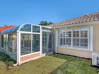 Live The Good Life in Magnolia Bay Beautiful Capri model villa has everything you've been looking for. Spacious living area, cozy den, modern touches throughout. New in 2023 a/c (in main house), appliances, carpet, plantation shutters, fence and accordion storm shutters. This home has the lanai incorporated with the living space so the living area square footage is 154 sq ft larger than the 1554. Enjoy the peaceful lake view from your glassed in sunroom with its own a/c. Gated community with sparkling pool, tennis courts and fitness center. This home combines comfort, convenience and security.
