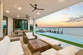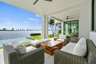 Experience the pinnacle of waterfront luxury with this exceptional estate, offering sweeping 180° panoramic views of MacArthur State Park, Munyon Island, and Singer Island. Perfectly positioned on a highly coveted .41-acre point lot, this residence showcases 219 feet of premier water frontage and captivating, wide-water vistas that span Lake Worth and the Intracoastal Waterway. Inside, the home's five bedrooms, six full baths and two half baths are designed around a bright, open-concept layout that captures stunning water views from nearly every room. The gourmet kitchen features dual islands, top-of-the-line appliances, and a seamless flow that's perfect for both entertaining and everyday living. Two primary suites offer serene retreats, each thoughtfully designed with timeless elegance, modern comfort, and breathtaking water panoramas. Each suite has an adjacent room that is suitable as an office, library or gym. Step outside to a very private resort-style oasis, complete with an infinity-edge pool and expansive covered terrace designed for alfresco dining and entertaining all set against the tranquil backdrop of the Intracoastal. A private concrete dock and bulkhead accommodates yachts up to 90 feet and provides quick, direct access to the Palm Beach Inlet ideal for the avid boater. Nestled within the prestigious Village of North Palm Beach, this property embodies the ultimate South Florida lifestyle where world-class boating, golf, and dining converge with coastal charm. A true masterpiece of waterfront design, this estate offers an extraordinary opportunity to own a piece of direct Intracoastal paradise where dramatic sunrises, golden sunsets, and passing yachts paint an ever-changing waterfront panorama.