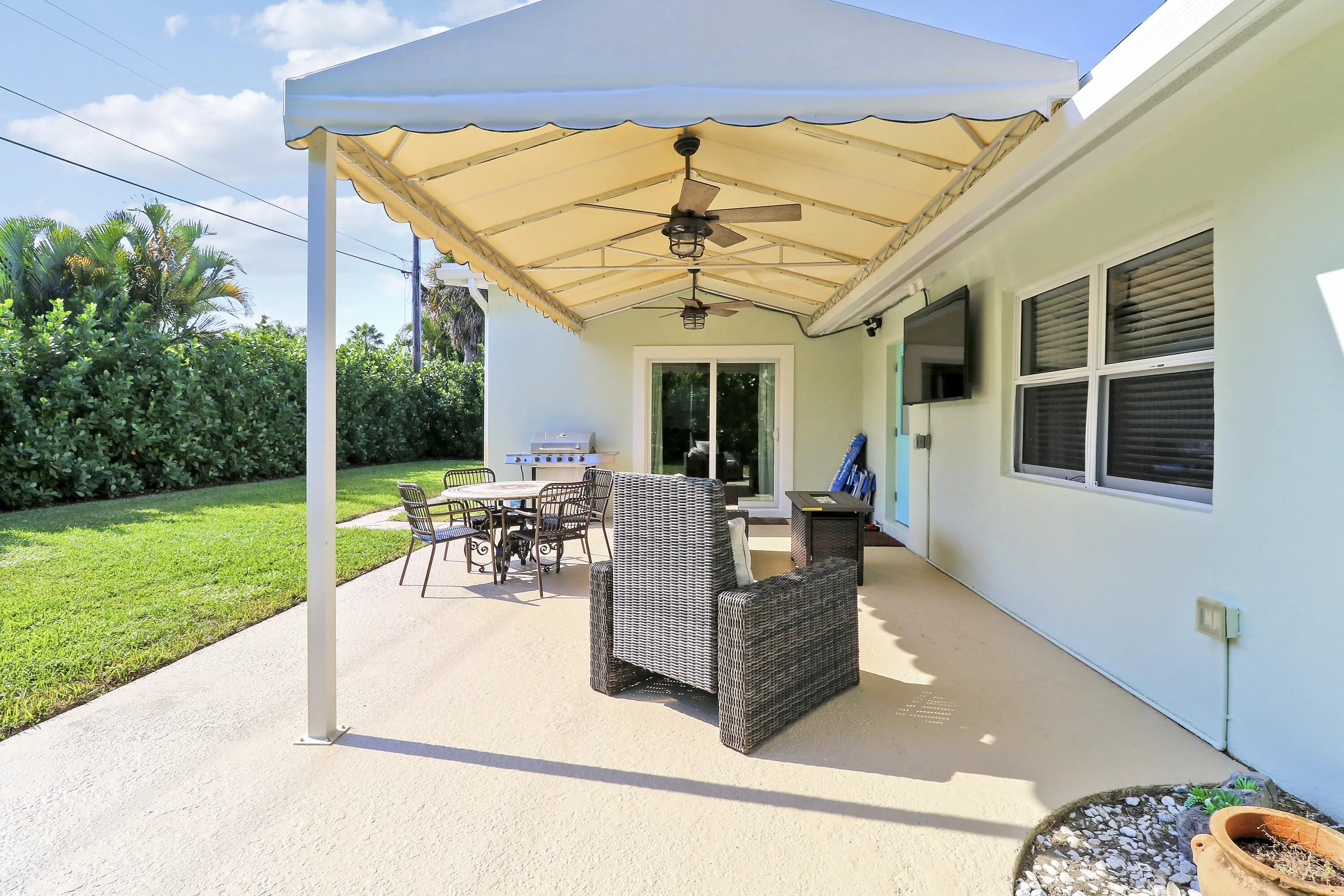 Welcome to this beautifully completely remodeled residence in the highly desirable Village of NPB. This 4 bed 2 bath home offers spacious living with top of the line finishes. Features include hardwood floors, updated kitchen with a large island, a vaulted living room ceiling and a generous dining area. Ideal for families and those enjoying the seasonal South FL lifestyle, this home is designed for effortless living and entertaining. Step into a serene tropical backyard, beautiful framed by colusa hedges offering privacy and a lush setting. Features also include a covered lanai with a fire pit area and room for a boat or plenty of water toys. Enjoy easy access to Anchorage Park, NPB CC and outstanding dining. No detail was overlooked in this home. Renovated from the ground up, impact windows, doors, gas stove, Tesla charger and so much more this home is ready to go! Schedule your private viewing today. See documents for a list of all upgrades.