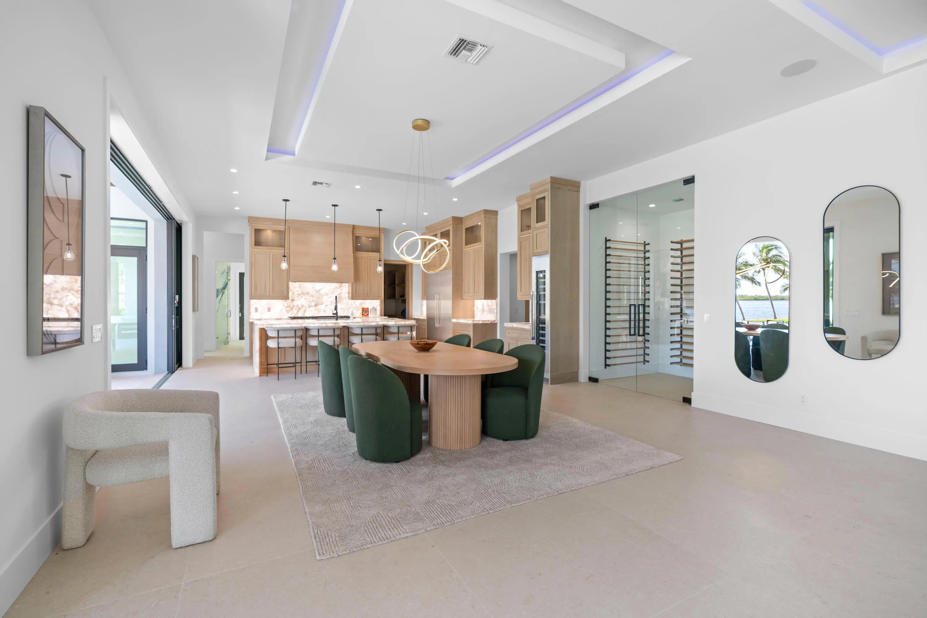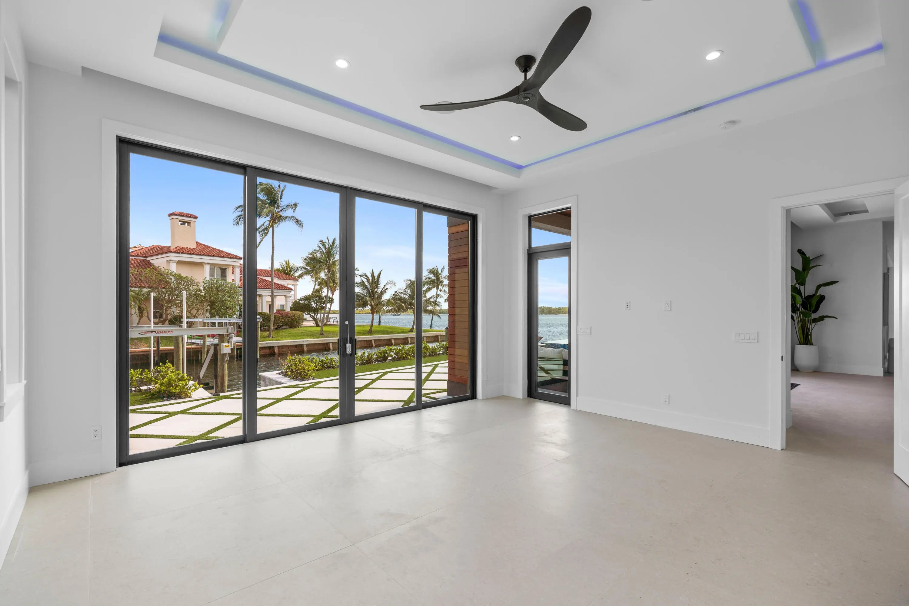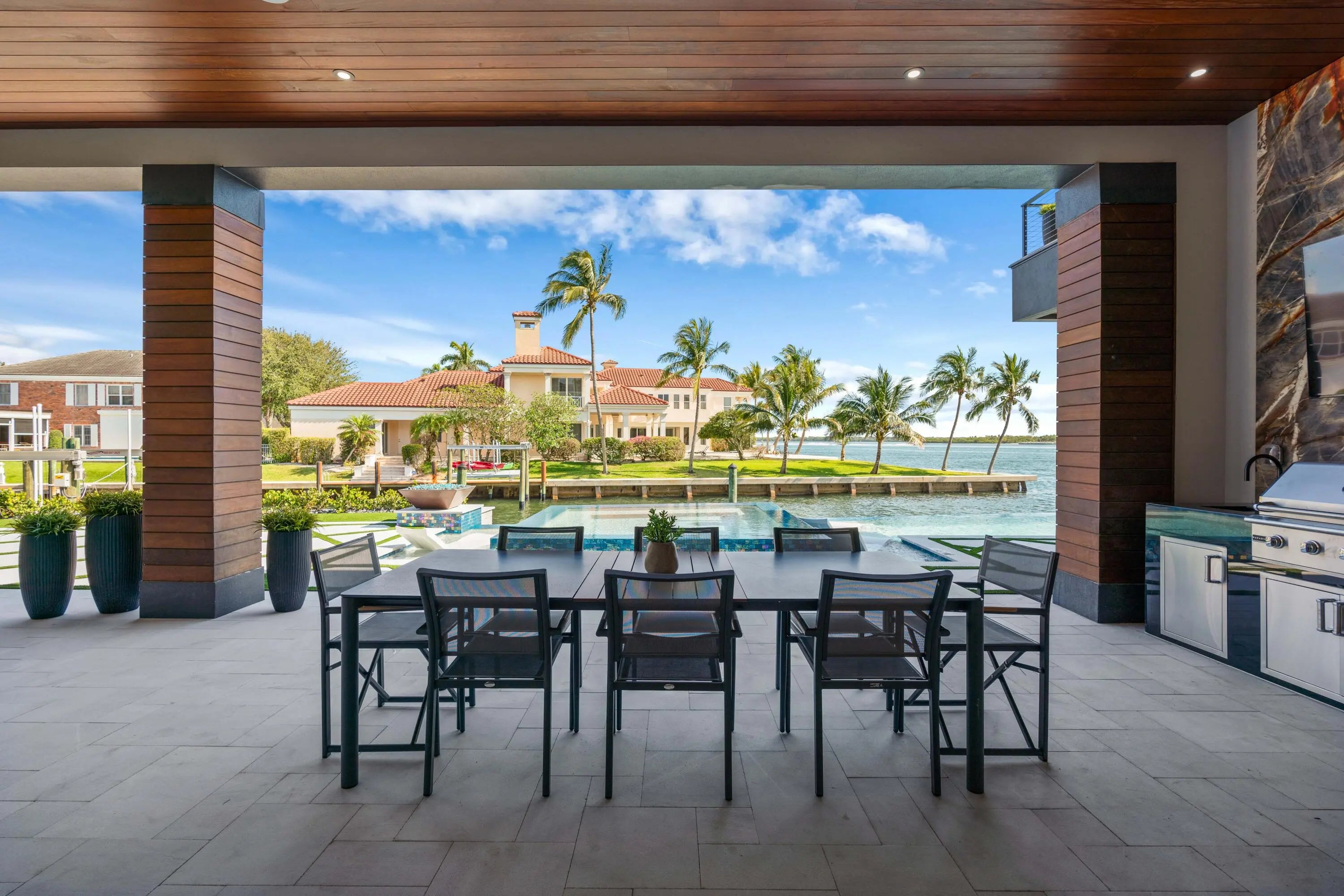 NEW 2024 WATERFRONT CONSTRUCTION AND BIG WATER VIEWS! Bring your largest vessels and dock directly behind this stunning estate home tucked away at the end of prestigious Bowsprit Drive in North Palm Beach. Situated on 150' of deep water with mooring piles and 24K lift! Meticulously engineered to capture wide water views from nearly every space with 90-degree sliding glass doors from the upper level primary suite to 10' tall 90-degree pocketing sliders in the lower level club room. Generously appointed and specifically designed with entertaining in mind, this home is the epitome of South Florida indoor-outdoor living with expansive covered patio and balcony areas, infinity-edge saltwater pool/spa and 60'' fire pit and conversation area, summer kitchen and smart home technology!