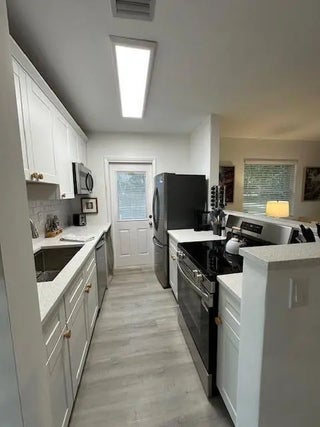 Welcome to your dream coastal retreat in North Palm Beach, Florida! This charming 2-bedroom,1-bathroom bungalow has been meticulously renovated and is fully furnished, offering a perfect blend of modern elegance and comfort. As you step inside, you'll be greeted by an open-concept living space adorned with contemporary finishes and sun-drenched rooms that exude warmth and tranquility. The gourmet kitchen boasts sleek countertops and state-of-the-art appliances, ideal for culinary enthusiasts who love to entertain. Each bedroom provides a serene escape with plush furnishings and ample closet space with the primary suite featuring a King bed and the guest a twin trundle. The updated bathroom feature spa-like touches that promise relaxation after a day enjoying the Florida sun. The bungalow has a private patio with a lovely table and chairs and a private grill for the perfect Florida evenings. There is also a shared patio for the three bungalows to use which features a shared laundry room with full sized washer/dryer and a second patio/common area with outdoor sofas and a hot tub. Situated in an enviable location, this turnkey property allows you to embrace the vibrant coastal lifestyle effortlessly. Just minutes away, enjoy morning strolls for fresh coffee at local gems like Jupiter Donuts or savor mouth-watering meals at PA BBQ before exploring the breathtaking Intracoastal waterways nearby. Whether you're seeking a seasonal residence or a short term vacation getaway, this bungalow offers unparalleled convenience with walkability to renowned restaurants and attractions. Don't miss out on this gem.