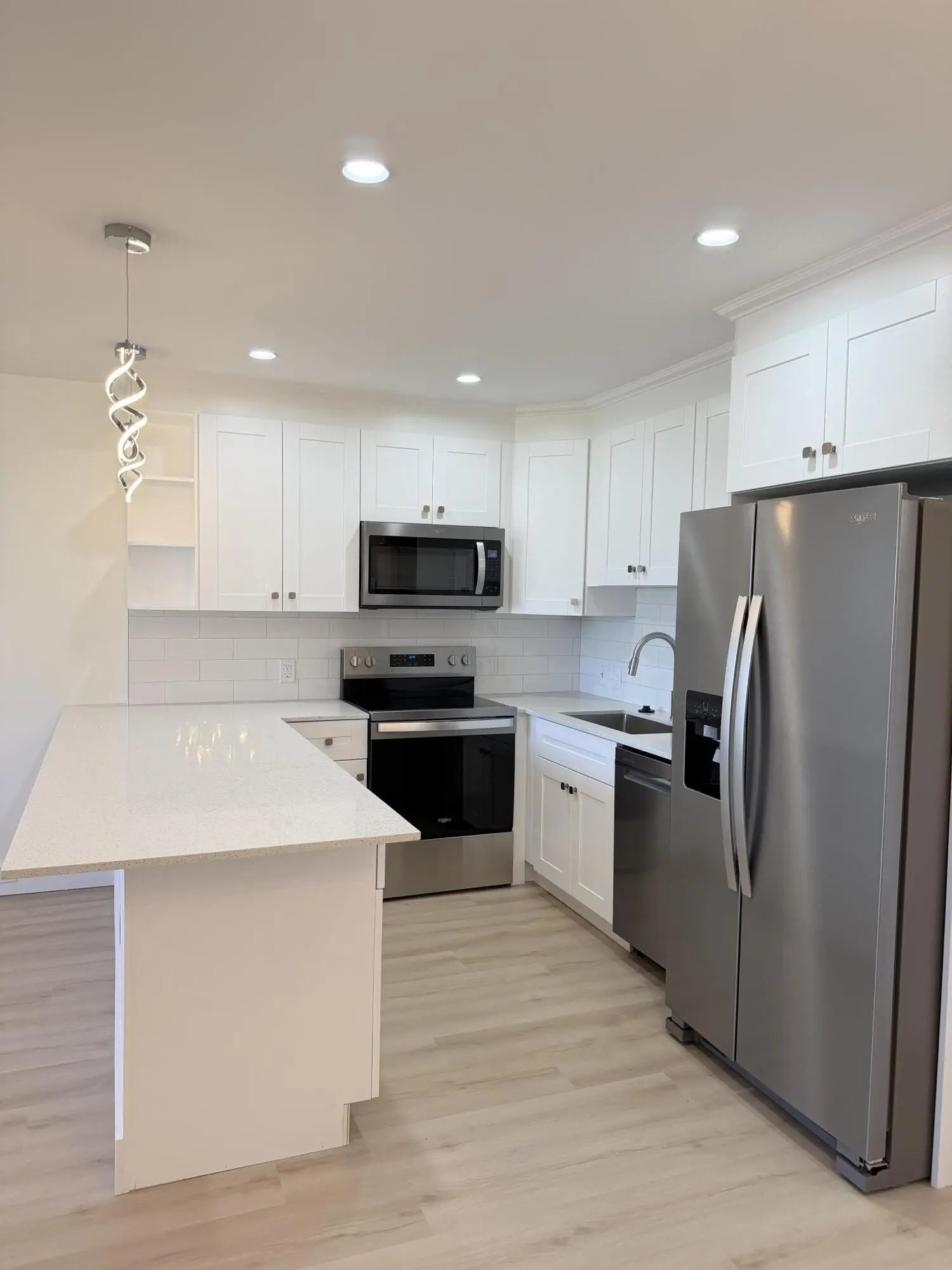 Fully renovated 1br/1.5 bth condo maintenance free with an expanded kitchen, white shaker cabinets, granite counter tops ,subway tile backsplash, large Island with brand new stainless steel appliances. Freshly painted & New Vinyl flooring throughout to create a bright,clean feel. Great closet space. New modern walk-in shower & vanities accented by designer lighting. Brand new A/C units,hot water heater and upgrated electrical panel to ensure comfort & efficiency. Enjoy serene lake views from the living area with a private screened in balcony with pool views.Top floor unit offers elevator access and laundry facilities 2 doors down + extra storage. Water,basic cable, & internet incl. Enjoy a vibrant 55+ active Community with 24 hr manned gated security, Free bus service,Theater,clubs & gym