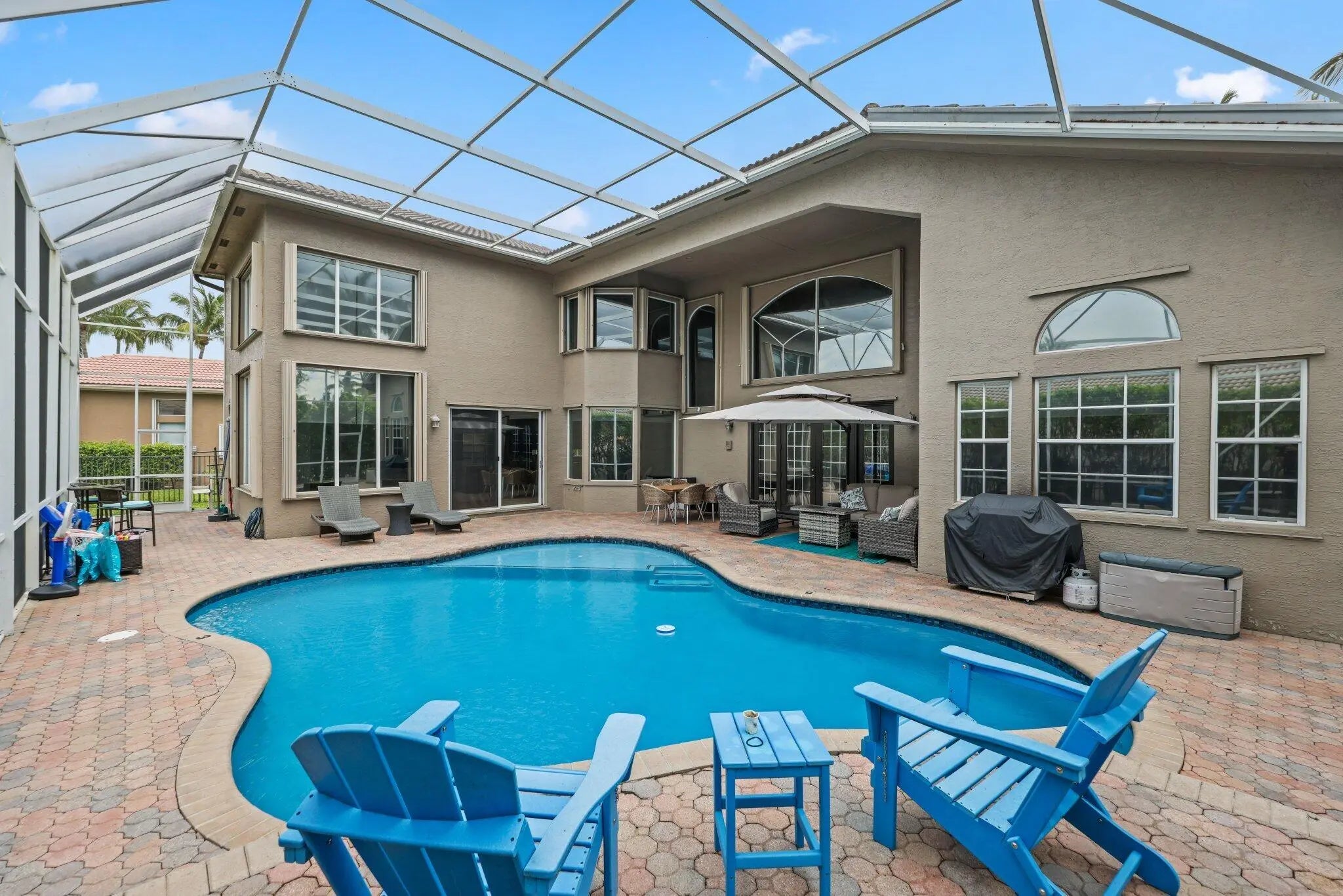 BRAND NEW ROOF JUST COMPLETED! LEAST EXPENSIVE HOME PER SQ FT BTWN. 4000-5000 SQ FT IN ALL OF BOCA RATON & DELRAY BEACH. NESTLED ON A TRANQUIL CUL-DE-SAC WITHIN THE PRESTIGIOUS GATED COMMUNITY OF SATURNIA, THIS MAGNIFICENT RENOIR MODEL HOME BY GL HOMES OFFERS NEARLY 5,000 SQUARE FEET OF LUXURIOUS LIVING SPACE. IDEALLY SITUATED ACROSS THE STREET FROM TWO A-RATED SCHOOLS AND AN ACTIVITY-FILLED COUNTY PARK FEATURING AN AMPHITHEATER, BOATING LAKE, AND NATURE PRESERVE, THIS RESIDENCE IS THE EPITOME OF SOPHISTICATED LIVING. THE PRIMARY SUITE IS A TRUE RETREAT, SHOWCASING COFFERED CEILINGS, A BRAND-NEW LUXURY BATHROOM, RAISED SITTING AREA, AND EXPANSIVE HIS-AND-HERS WALK-IN CLOSETS. THE FIRST FLOOR ALSO FEATURES AN ADDITIONAL GUEST SUITE PLUS A PRIVATE OFFICE. THE SECOND FLOOR OFFERS THREE ADDITIONAL BEDROOMS, TWO FULL BATHS AND A GIANT LOFT. FRENCH DOORS LEAD TO THE OVERSIZED, SCREENED POOL AREA, PROVIDING THE PERFECT SETTING FOR OUTDOOR RELAXATION AND ENTERTAINING. ADDITIONAL FEATURES INCLUDE ACCORDION HURRICANE SHUTTERS WITH IMPACT FILM ON ALL WINDOWS FOR PEACE OF MIND, THREE NEWER AC UNITS, AND AN ELECTRIC CAR-READY GARAGE. A VERSATILE OFFICE SPACE, CURRENTLY STYLED AS A CHARMING "SHE SHED," ADDS A UNIQUE TOUCH TO THIS STUNNING HOME. AN EXQUISITE EXECUTIVE ESTATE IN SATURNIA OFFERING A PRIME LOCATION WITH TOP-RATED SCHOOLS AND RESORT-STYLE AMENITIES!!!