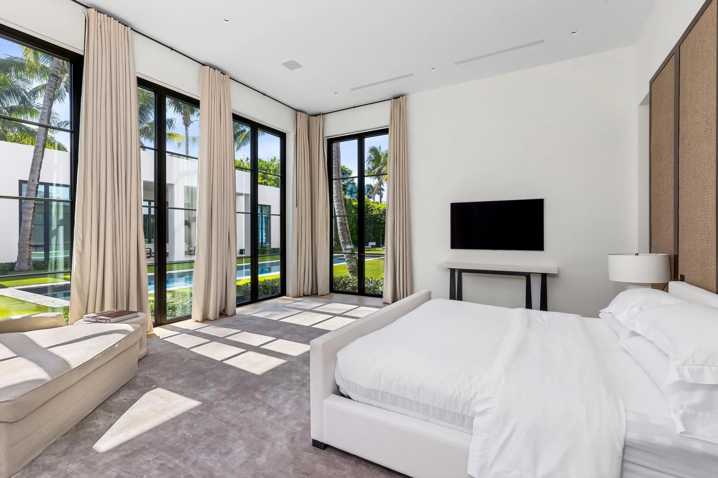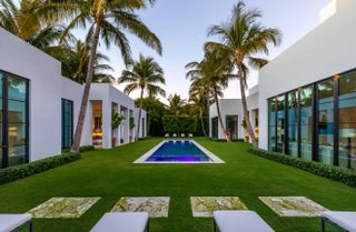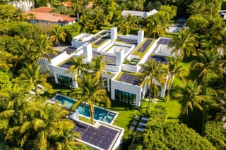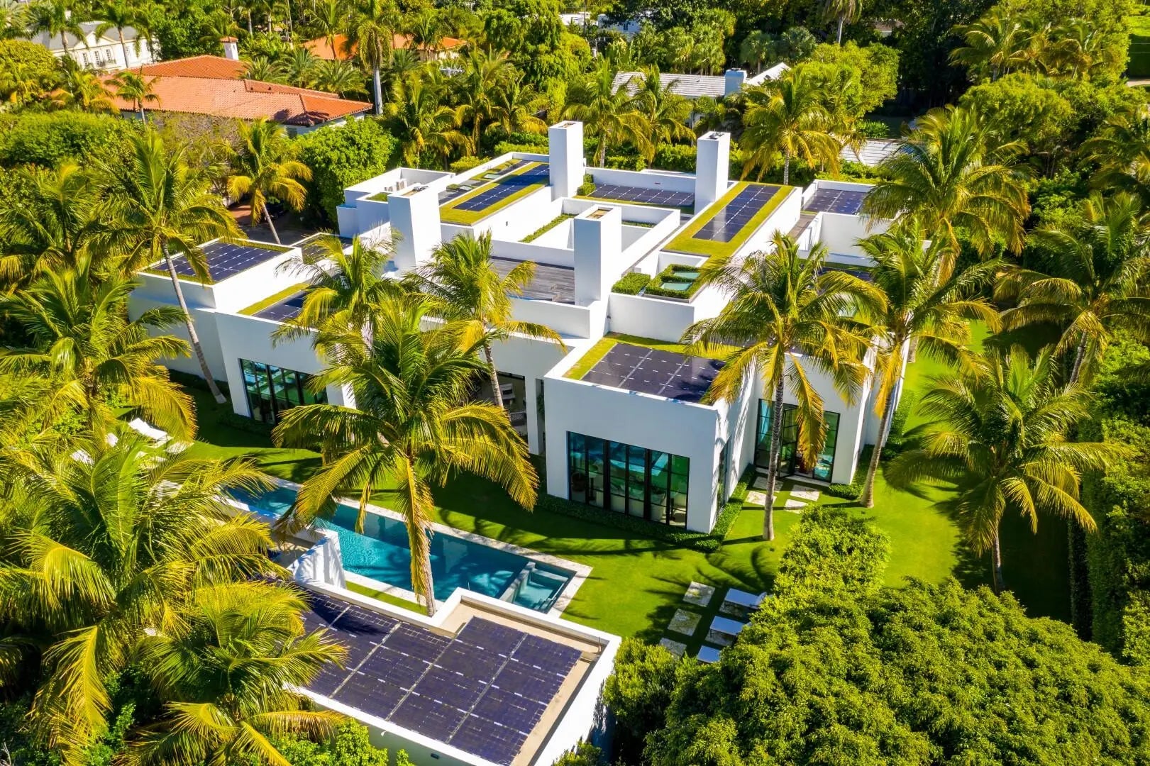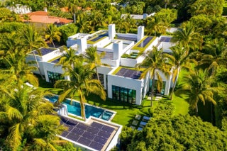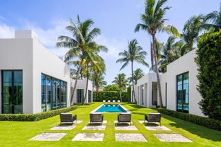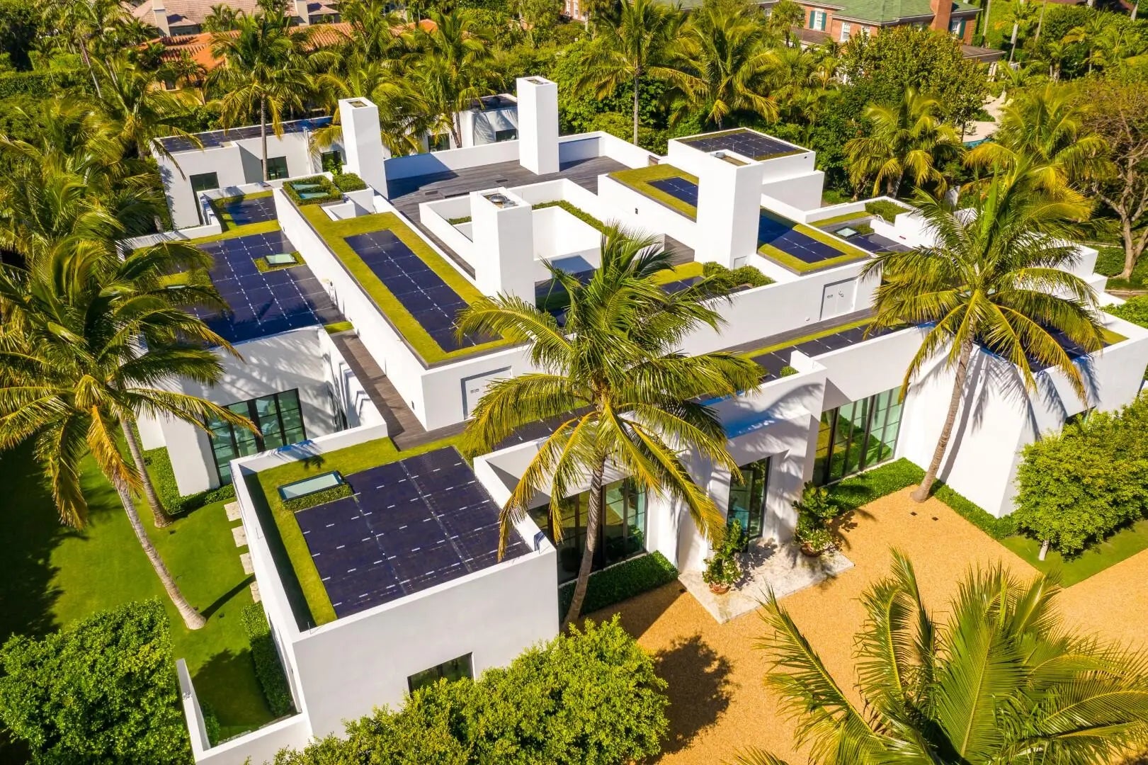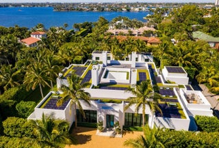 Striking and refined Classical Modern one-story estate built in 2016. 6BR/6.3BA, 12,914+/- SqFt home with separate guest house beautifully designed around interior courtyard. No detail has been overlooked in this spectacular custom estate. Perfect for entertaining with expansive living spaces including formal living room with fireplace, formal dining room, and billiards room. Highlights include library, office, home gym, and family room. Estate features exceptional energy sustainability with 200+/- solar panels hidden and surrounded by rooftop gardens. Inviting outdoor spaces include dining patio and fantastic loggia, rooftop lounge, cabana, and 55'+/- lap pool with sun shelf and spa. Soaring 15'+/- ceilings in the living room and 14'+/- ceilings throughout. 12'+/- steel frame French doors throughout bring in an abundance of natural lighting. Gourmet top-of-the-line chef's kitchen with oversized eat-in island, buffet room, and separate prep kitchen. Stunning finishes throughout including gorgeous oak flooring. Guest house includes two guest suites with ensuite baths and dual sinks. Winner of the Preservation Foundation's 2019 Schuler Award. Designed by Daniel Kahan of Smith and Moore Architects, built by David General Contracting, and exteriors designed by landscape architect Mario Nievera of Nievera Williams Design. Located in Palm Beach's fabulous Estate Section.