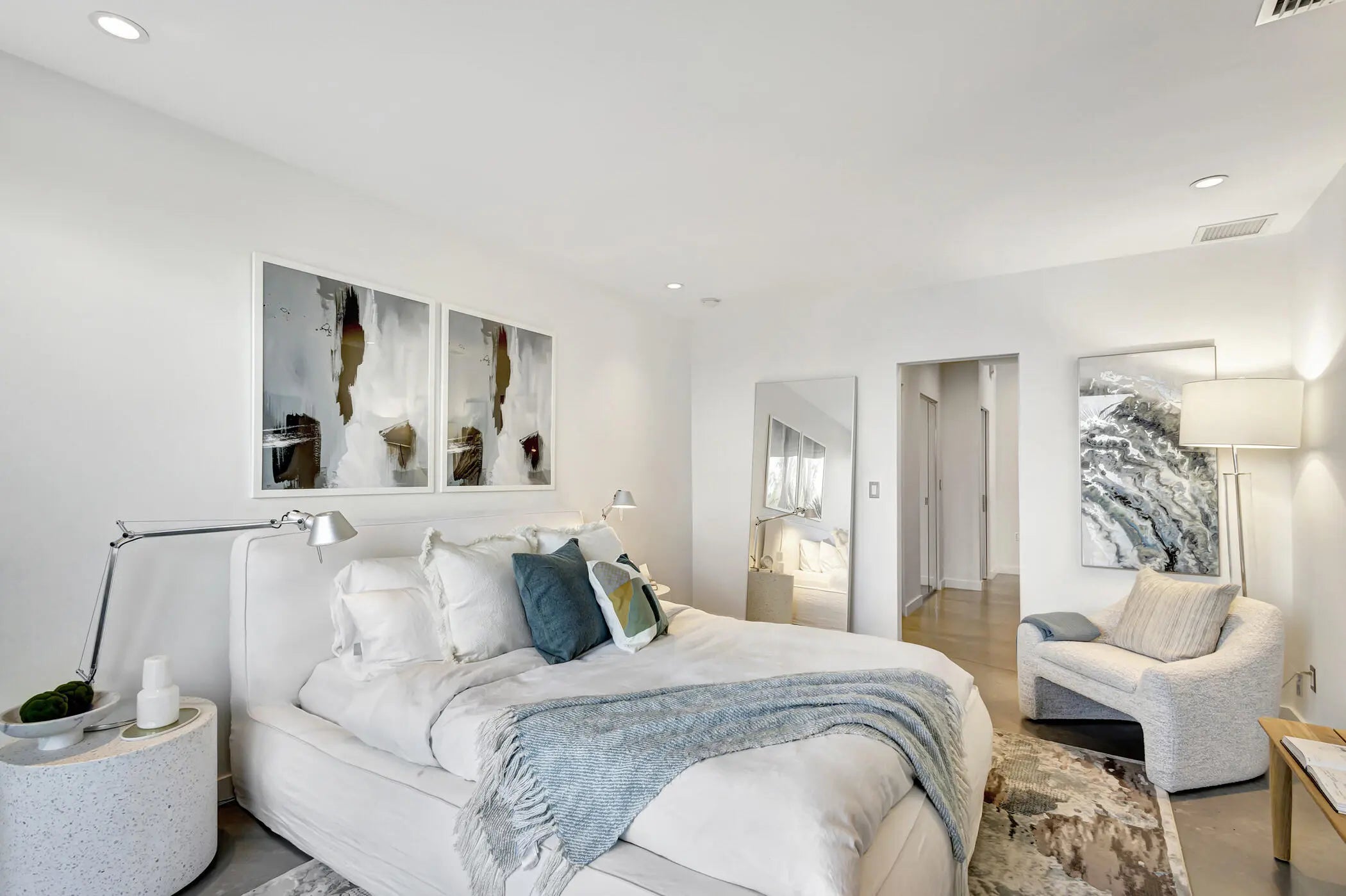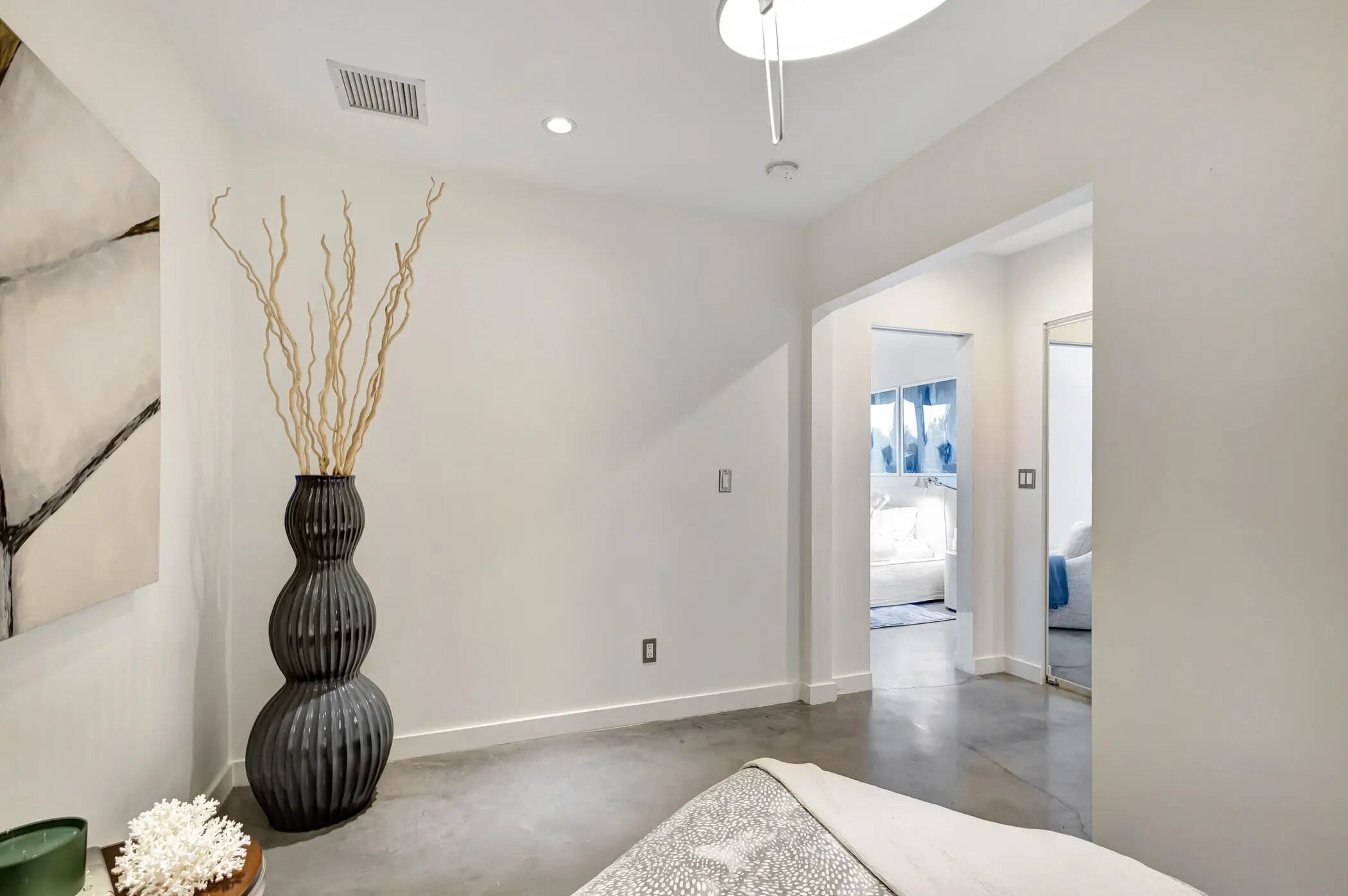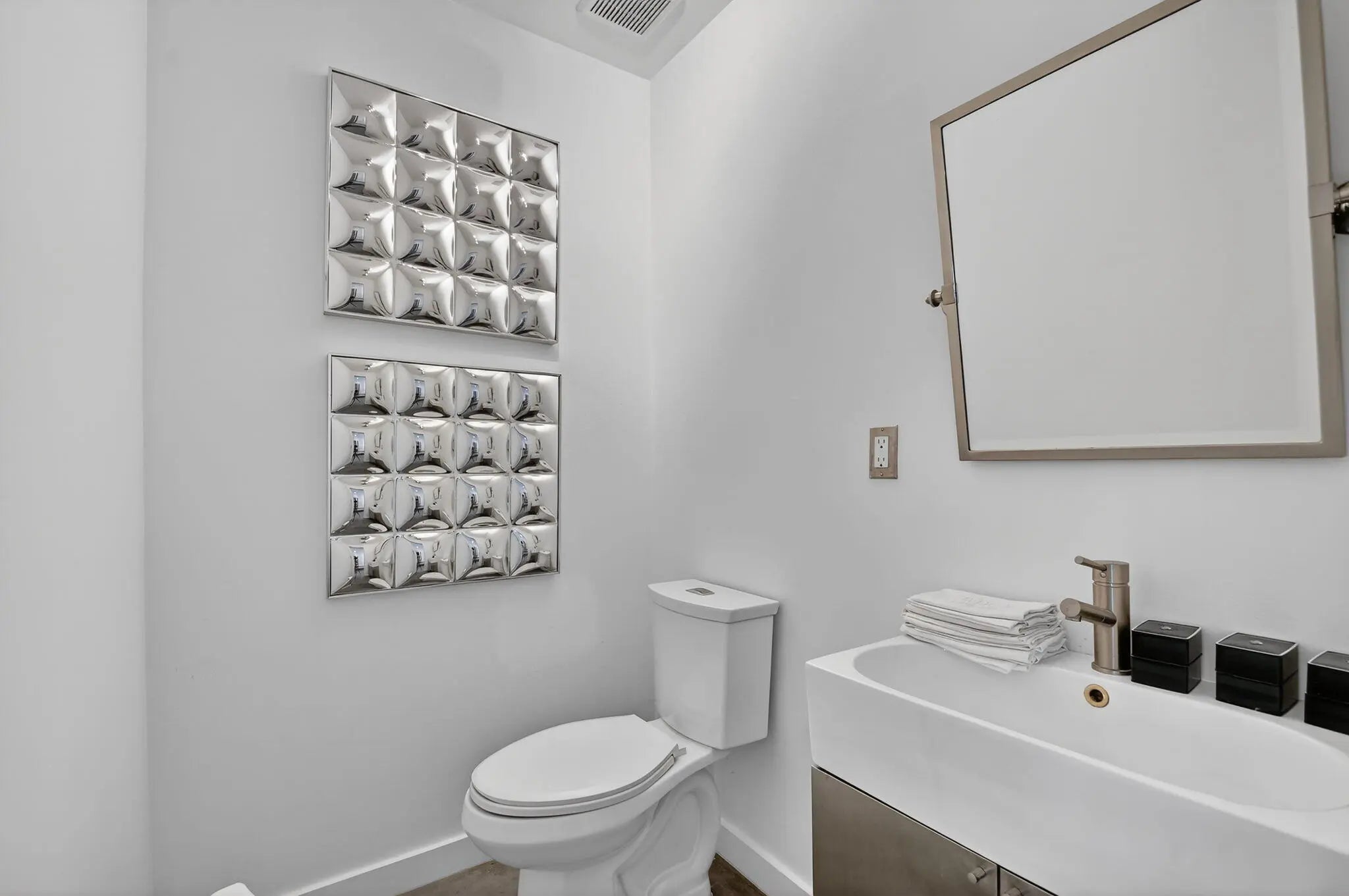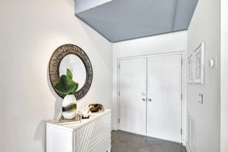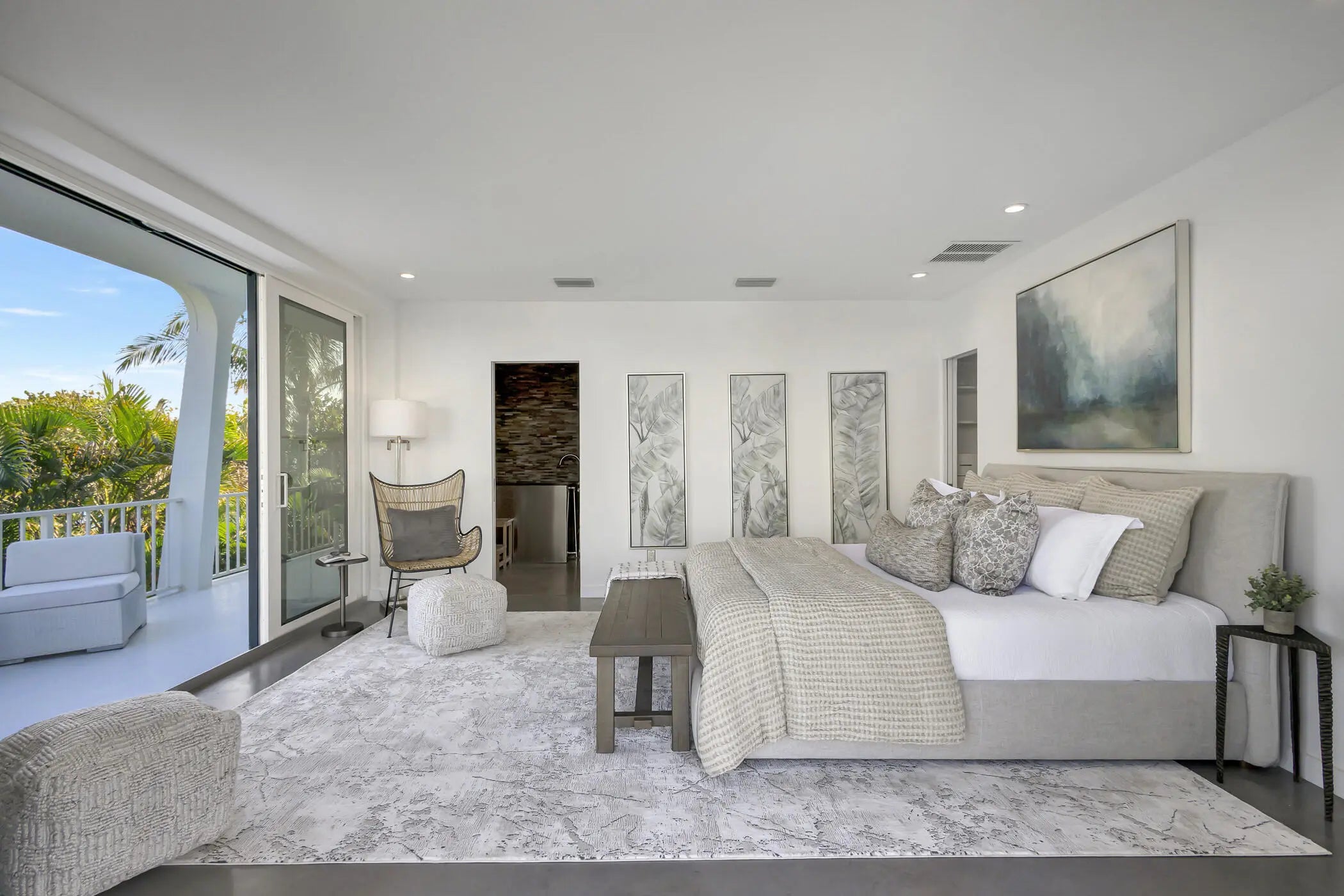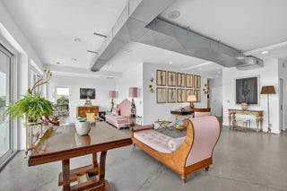 Stunning oceanfront corner unit at The Reef, a landmarked architectural jewel designed by Gene Lawrence. This completely renovated 1,868 sq/ft 2 bedroom, 2.5 bathroom plus den apartment is a modern take on coastal living with an open floor plan, polished concrete floors, volume ceilings, and uninterrupted rows of sliding impact glass doors. The kitchen features an extended white marble island and European cabinets while the sophisticated master bath features a stainless steel Japanese soaking tub. Beautifully situated on the top floor, this corner condominium has an expansive 700 sq/ft wraparound balcony offering sweeping views of the Atlantic Ocean and the tropical treetops of Phipps Ocean Park by day and sunsets over the Intracoastal Waterway each night. Private poolside cabana included The Reef has a beautiful pool deck and lawn with gated access to a pristine sandy beach. Poolside cabana with full bath and kitchenette. The award-winning Palm Beach Par 3 Golf Course and Phipps Ocean Park Tennis Center are both steps away. Adjacent to a lake trail perfect for walks, jogs, and bike rides, this chic pet-friendly building offers a modern, well-equipped gym, steam room, garage parking, doorman, and professional on-site manager.