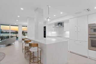 Directly across from The Four Seasons. A rare, fully renovated 3BD/3BA residence with direct Intracoastal views from all living areas & primary suite. The open kitchen features Thermador appliances, large wine fridge, & custom white cabinetry. Enjoy walk-in closets, motorized shades, impact glass, Sonos sound, & a 40-ft wraparound terrace ideal for entertaining. Third bedroom includes a queen Murphy bed. Two renovated cabanas. One poolside cabana & direct intracoastal cabana, available separately. The newly redesigned East Building lobby offers privacy with only 3 residences per floor. Cove amenities include a 75-ft resort-style pool, fitness center, club room, doorman, beach access with chair service, EV charging, & guest suite.Deeded beach access. Cove owners enjoy preferred pricing at The Four Seasons Resort & Spa.