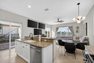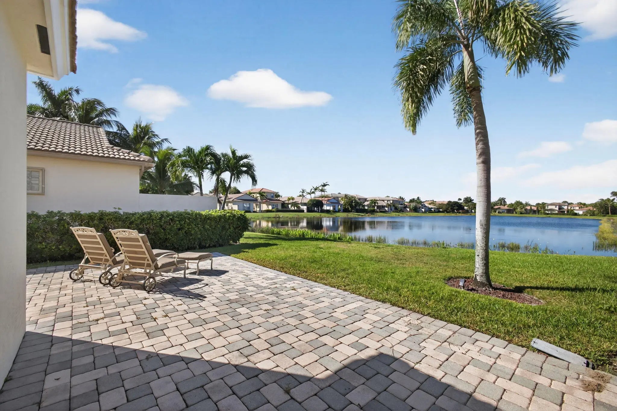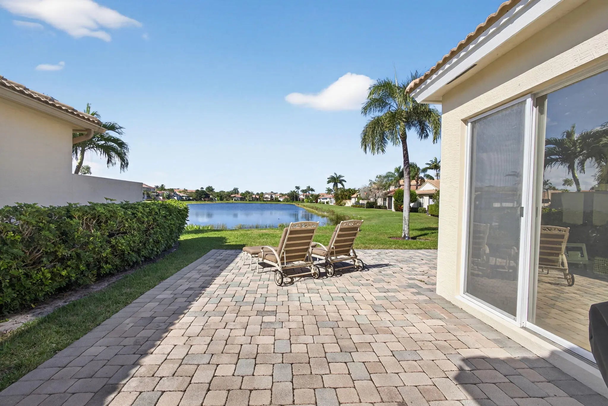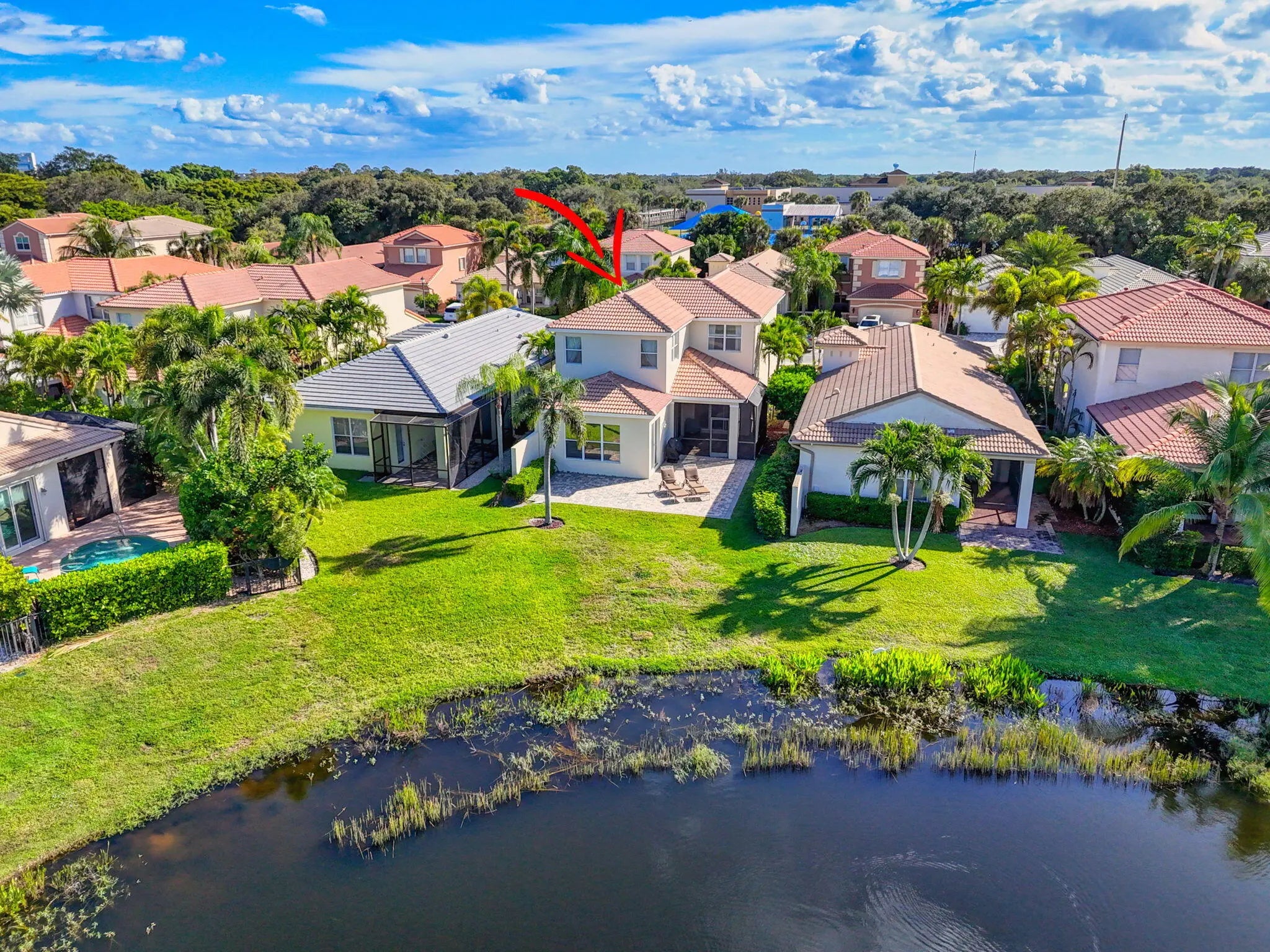 Absolutely pristine 4-bedroom Cortina Model with 3 bathrooms on a fabulous lakefront lot with long lake views in Isle Verde. This home has been meticulously maintained & features a Brand-New Roof Installed in 2023, Newer Samsung stainless steel kitchen appliances & refinished wood cabinetry & granite countertop, and a center island. New light fixtures, custom Window Treatments, & new vinyl flooring on the stairs and hallway, and updated designer carpeting in the bedrooms. Other updates include: recently repainted exterior and interior and full hurricane protection. This home has a nice screened-in lanai & extended patio area for entertaining & enjoying the amazing South Florida Sunsets. This home is even nicer in person, and truly a must-see. Mirabella is one of the best 24/7 Manned Guard Gated HOA Communities in all of Palm Beach Gardens with Resort Style Amenities: a Refurbished Clubhouse with Social Events and onsite property managers, one of the best Tennis Facilities, and Workout Room for a non-country club community in the entire area, Separate Kids' Clubhouse & Gated Playground and Heated Pool.