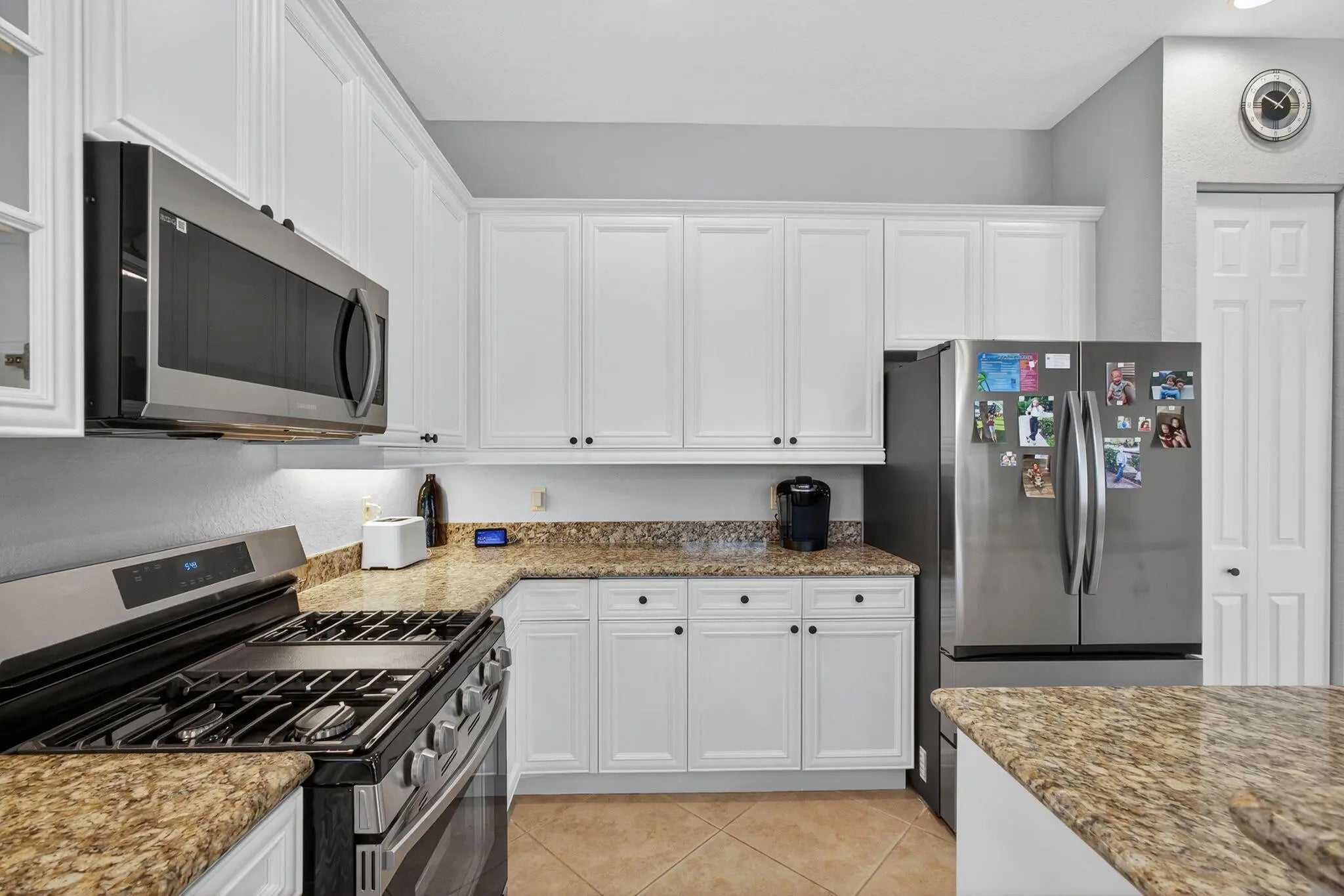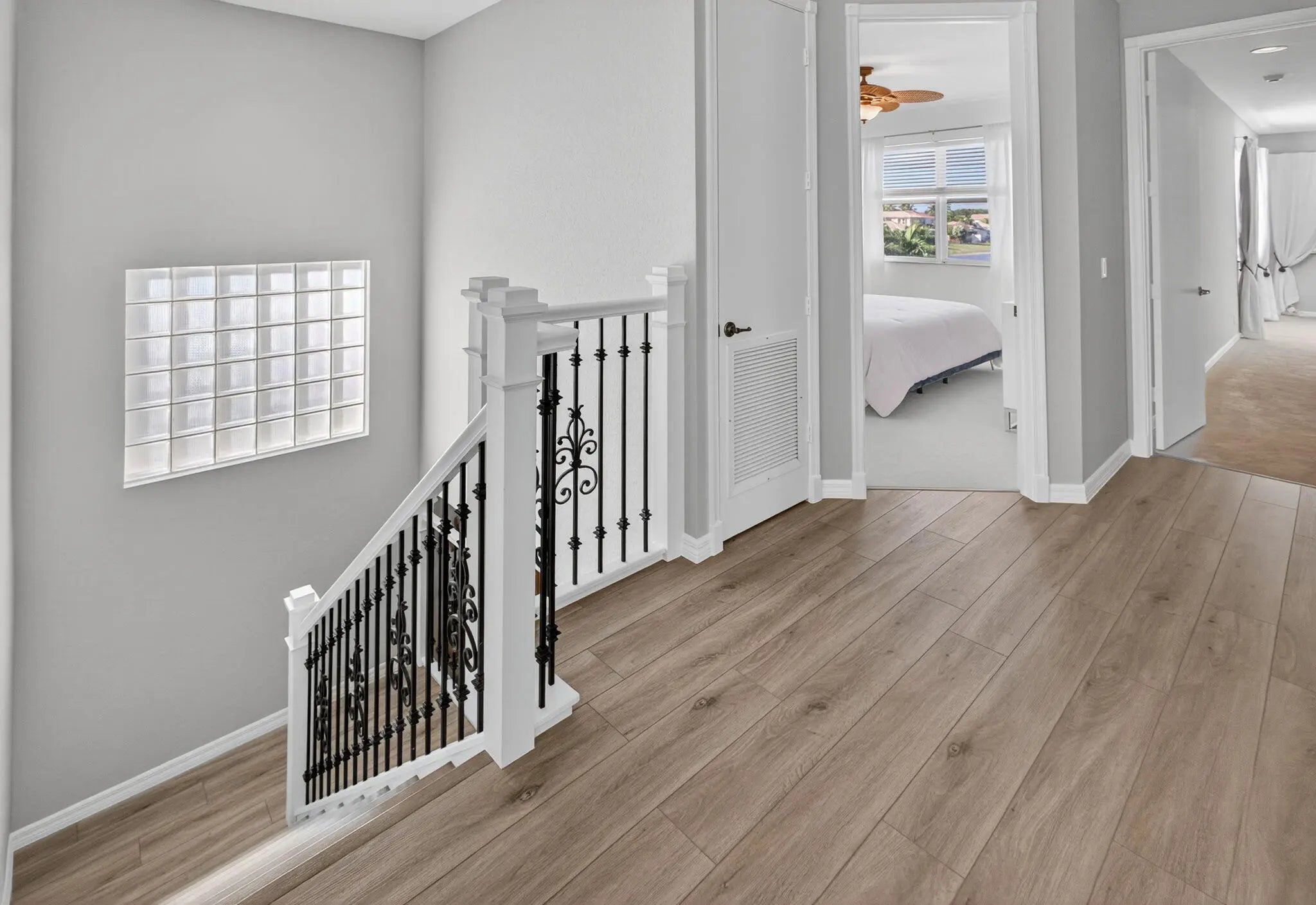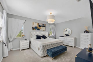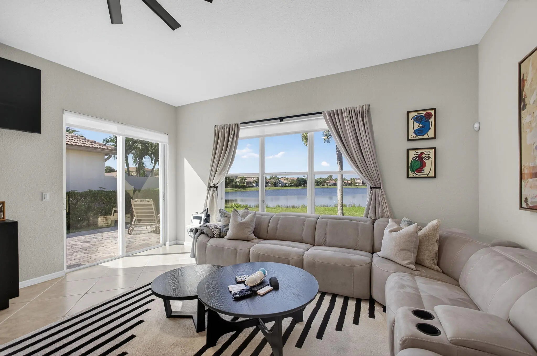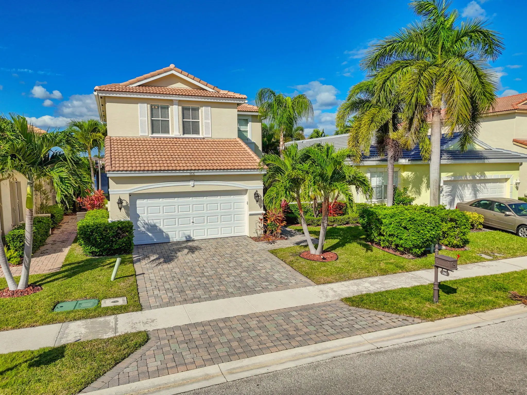 Absolutely pristine 4-bedroom Cortina Model with 3 bathrooms on a fabulous lakefront lot with long lake views in Isle Verde. This home has been meticulously maintained & features a Brand-New Roof Installed in 2023, Newer Samsung stainless steel kitchen appliances & refinished wood cabinetry & granite countertop, and a center island. New light fixtures, custom Window Treatments, & new vinyl flooring on the stairs and hallway, and updated designer carpeting in the bedrooms. Other updates include: recently repainted exterior and interior and full hurricane protection. This home has a nice screened-in lanai & extended patio area for entertaining & enjoying the amazing South Florida Sunsets. This home is even nicer in person, and truly a must-see. Mirabella is one of the best 24/7 Manned Guard Gated HOA Communities in all of Palm Beach Gardens with Resort Style Amenities: a Refurbished Clubhouse with Social Events and onsite property managers, one of the best Tennis Facilities, and Workout Room for a non-country club community in the entire area, Separate Kids' Clubhouse & Gated Playground and Heated Pool.