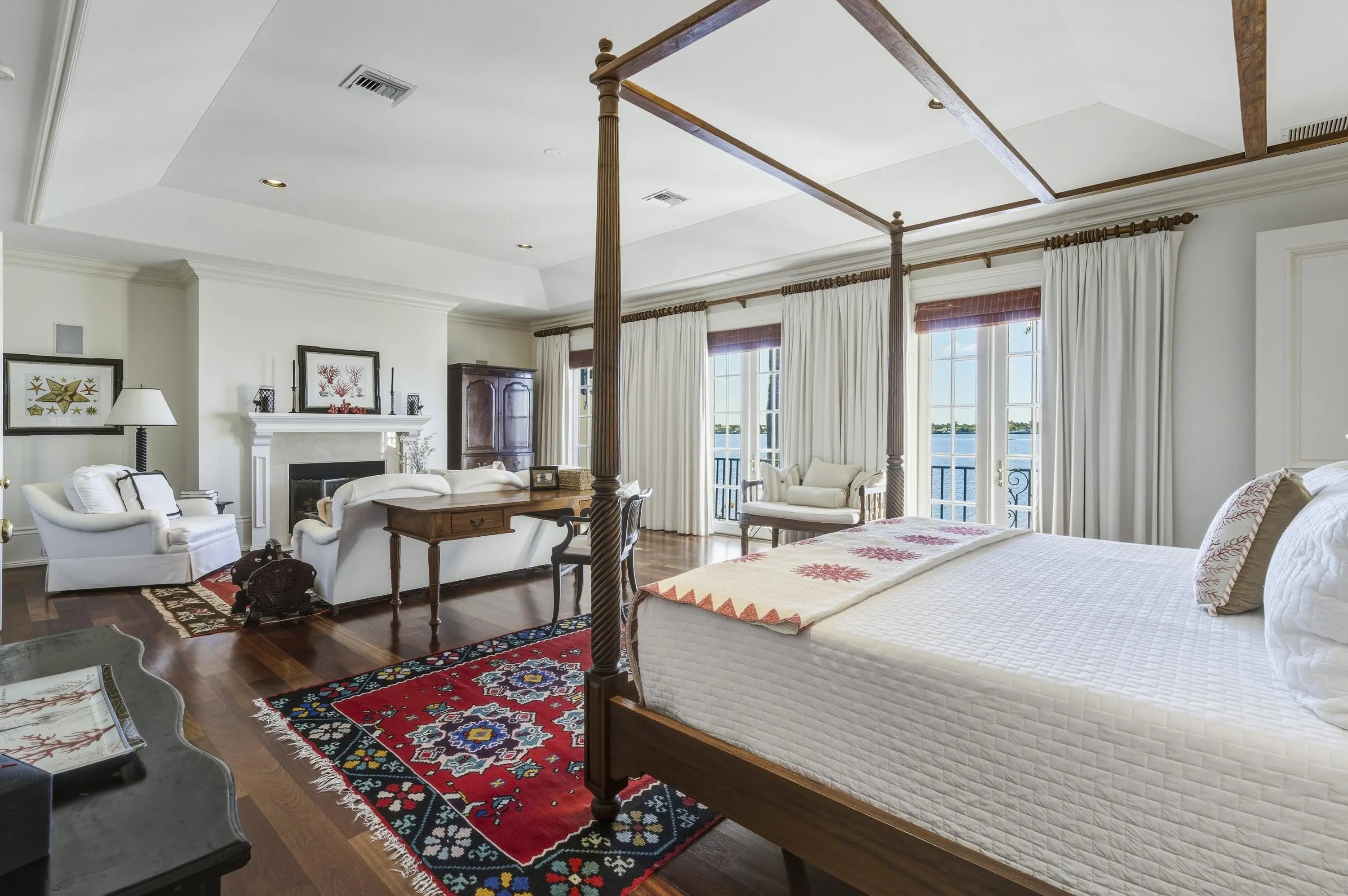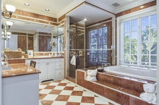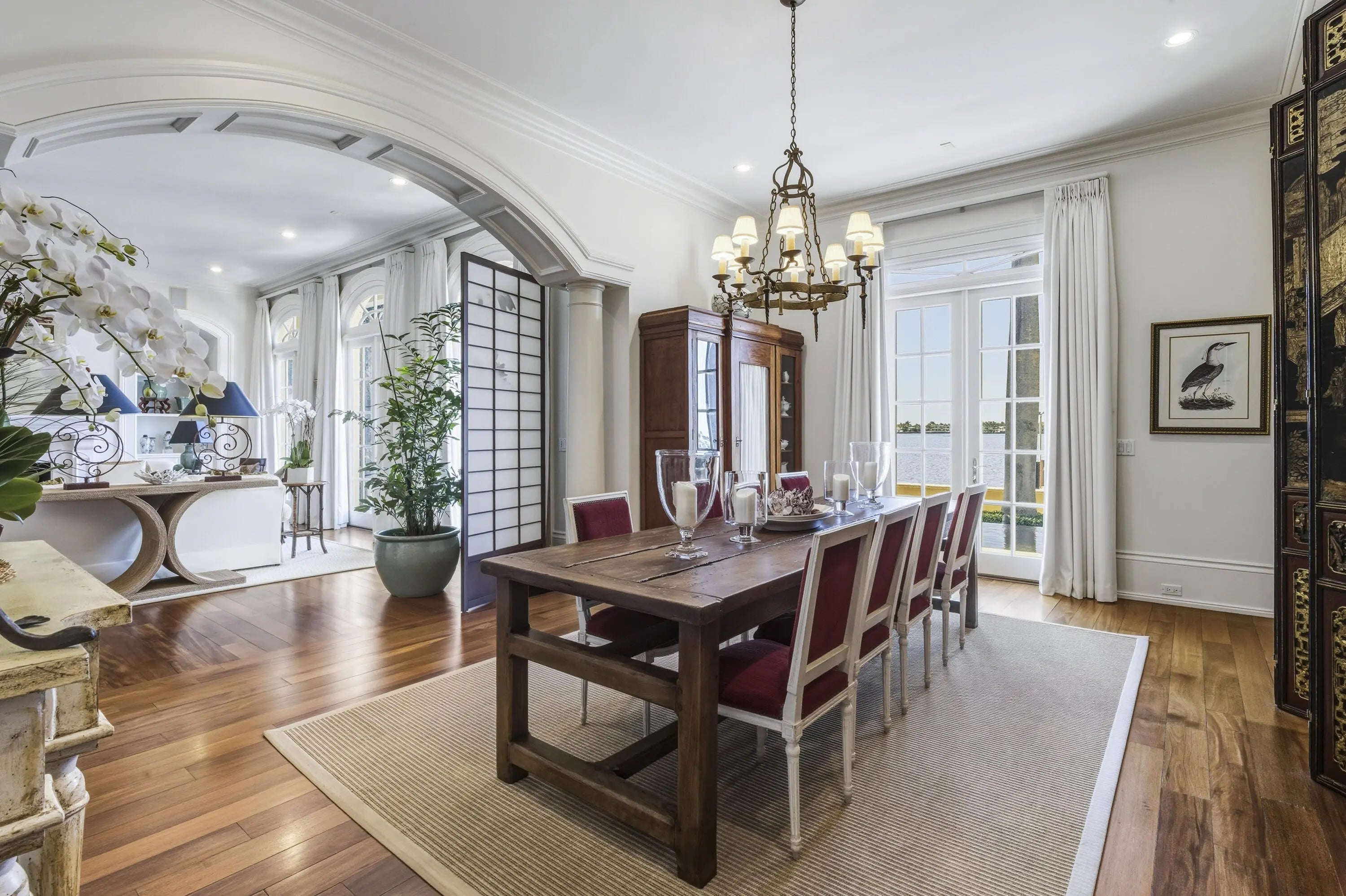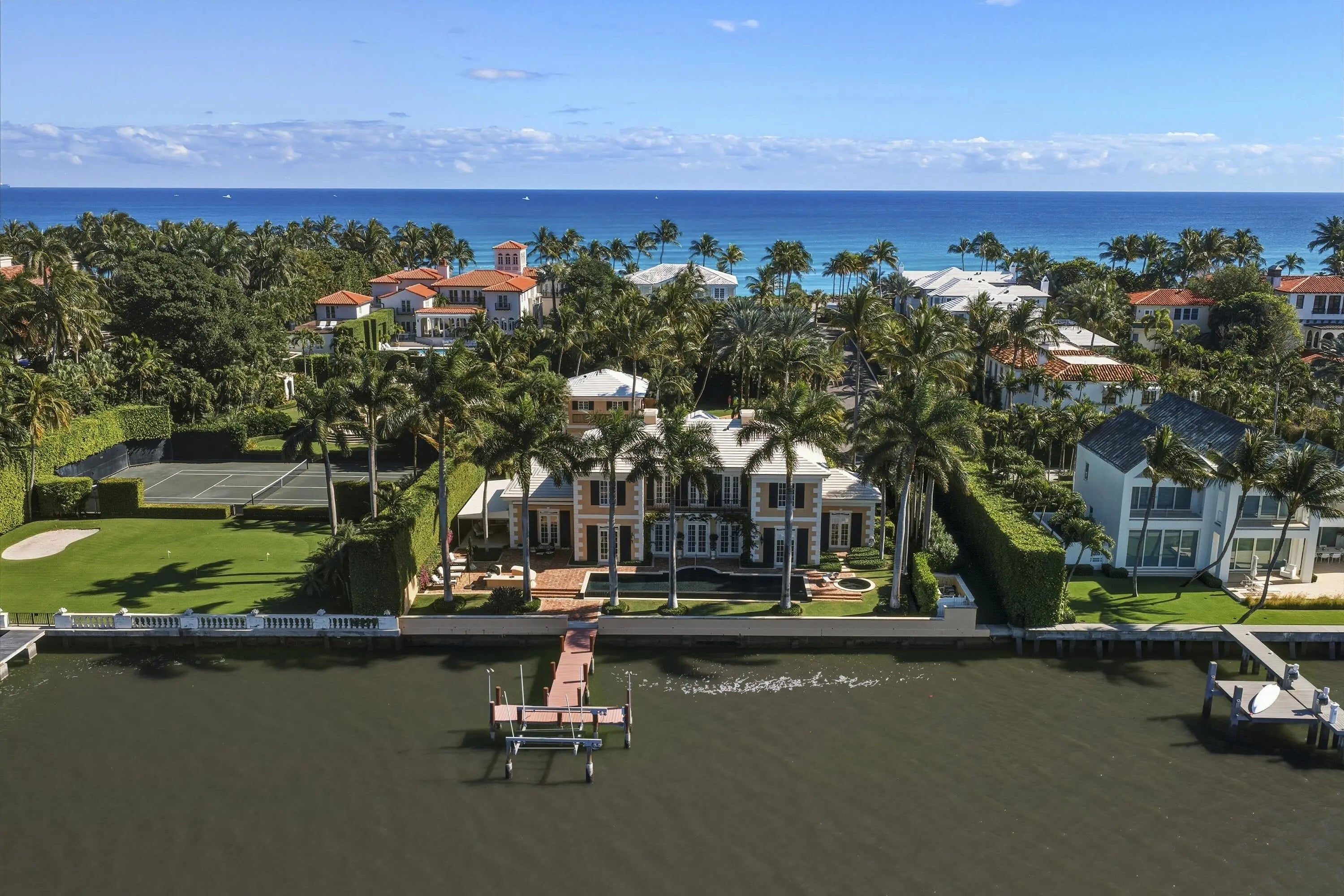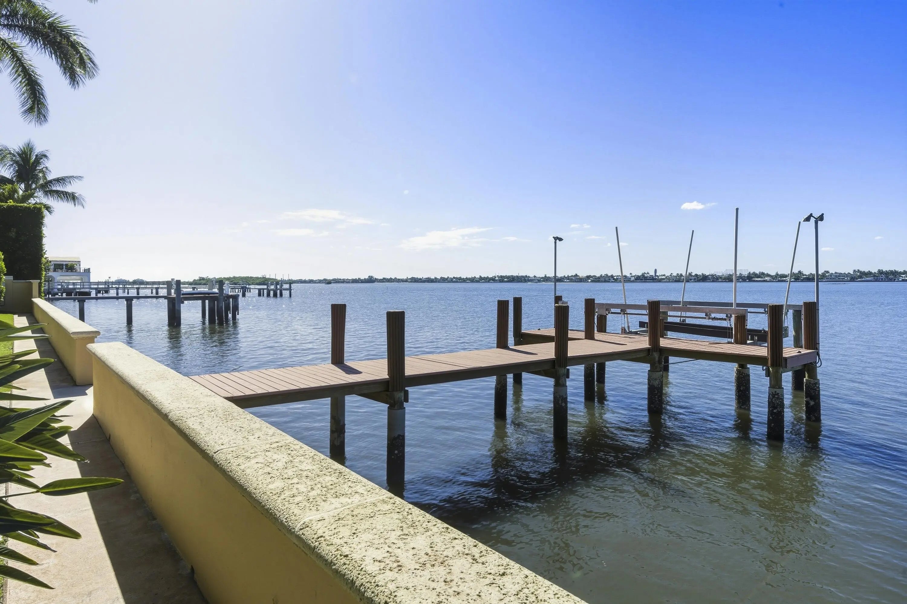 Beautiful Intra-Coastal property (3/4 acre) with deeded ocean front lot with possibility of adding an oceanfront cabana. Beautiful classic elements in this 4 Br/ 4.5 bath home with dock, lap pool and gorgeous wide water views. 11' ceilings, hardwood mahogany flooring. Four garage parking. Detached double garage with apt. above with LR, full KIT, 1 Br/1Ba, balcony overlooking serene lush gardens.