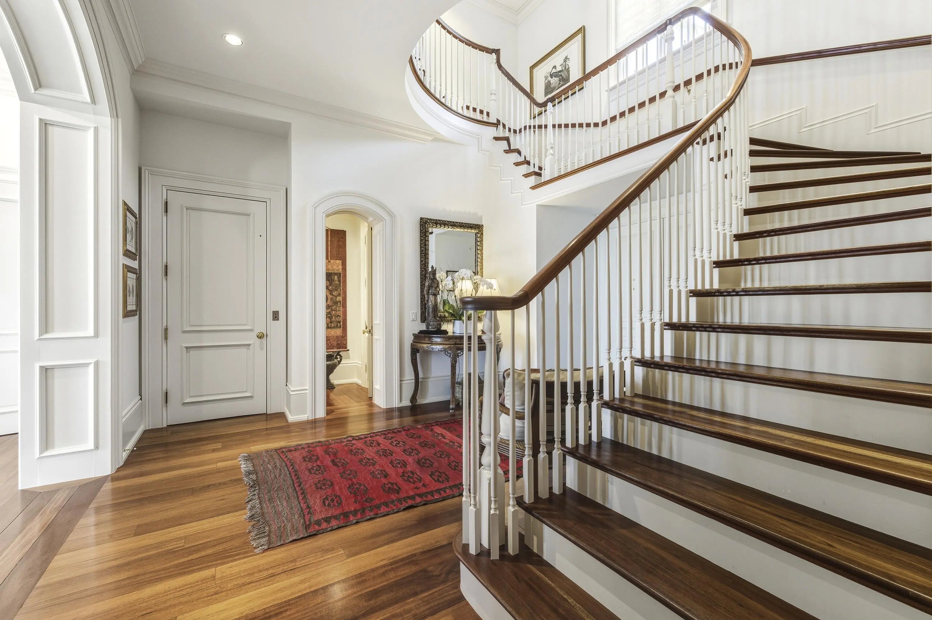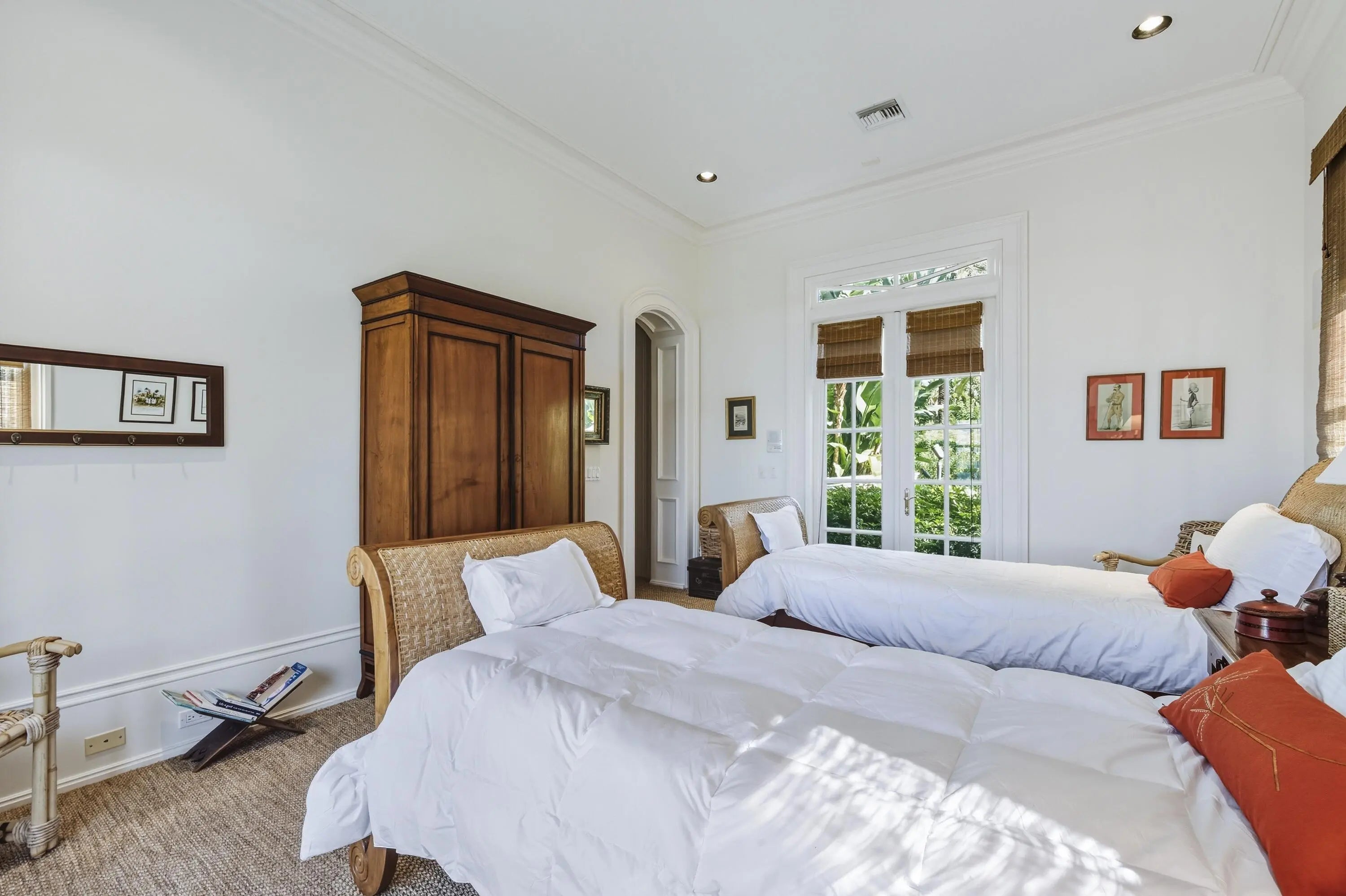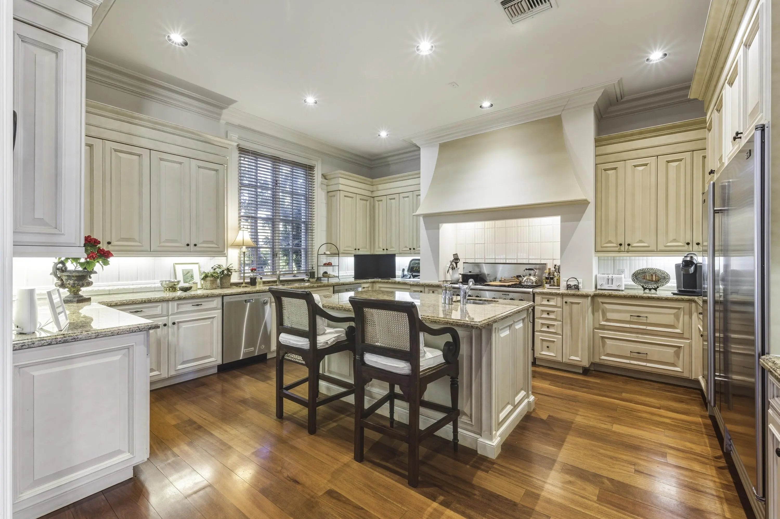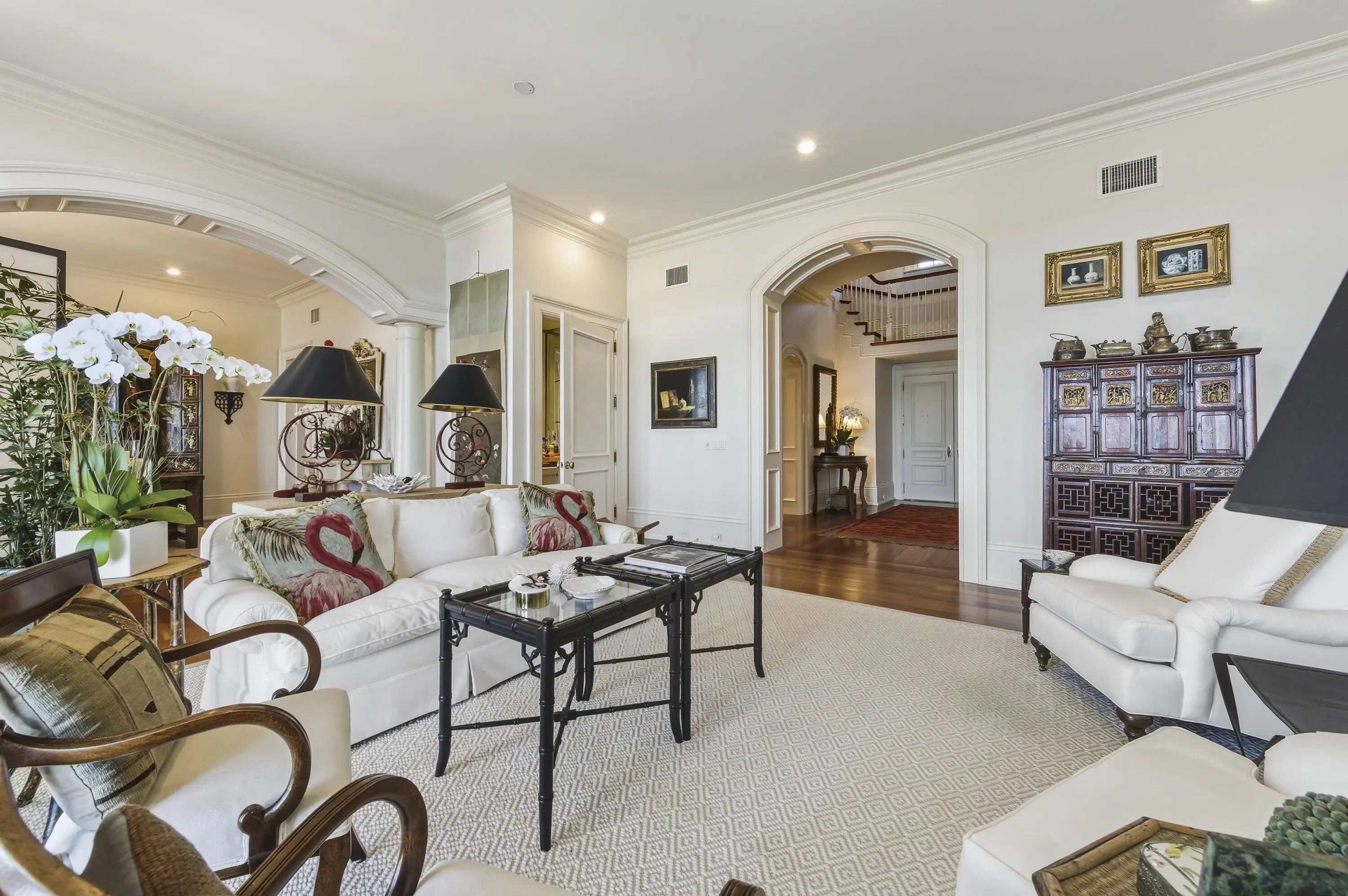 Beautiful Intra-Coastal property (3/4 acre) with deeded ocean front lot with possibility of adding an oceanfront cabana. Beautiful classic elements in this 4 Br/ 4.5 bath home with dock, lap pool and gorgeous wide water views. 11' ceilings, hardwood mahogany flooring. Four garage parking. Detached double garage with apt. above with LR, full KIT, 1 Br/1Ba, balcony overlooking serene lush gardens.