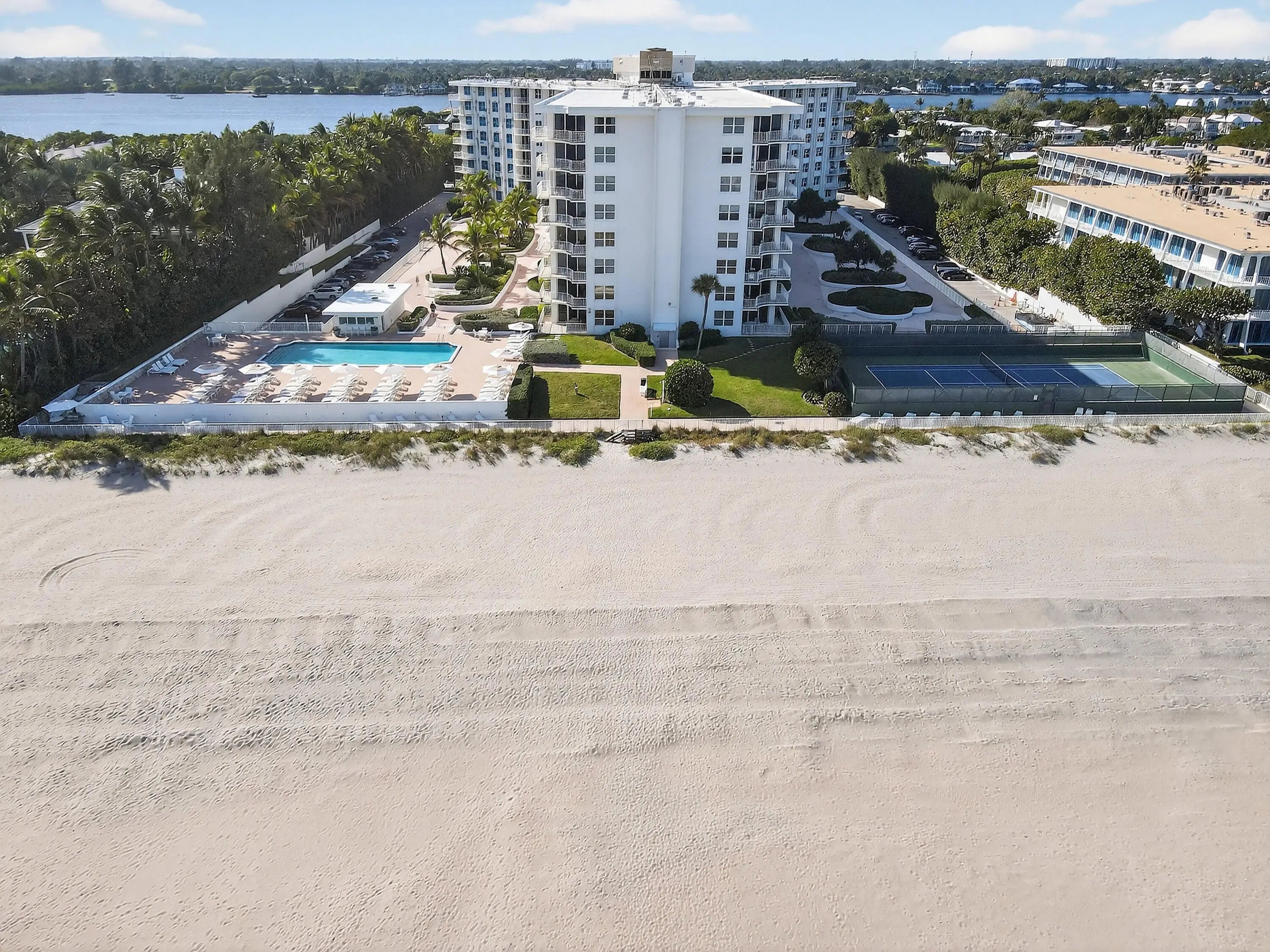 Gorgeous Intracoastal and ocean views from the eighth floor of this beautiful two-bedroom, two-bath residence. Light and bright, the apartment features wood floors, new appliances, and an abundance of charm throughout. The building offers excellent amenities, including: • 24-hour security • On-site manager • Party room • Fitness center • Oceanfront pool • Har-Thru tennis courts Ideally located just 10 minutes from Worth Avenue and only five minutes from the Four Seasons and the Raymond Floyd Par-3 Golf Course & Clubhouse. Enjoy a wide, sandy beach, beautifully restored last summer. See the sunrise and the sunset as this unique apartment has two balconies