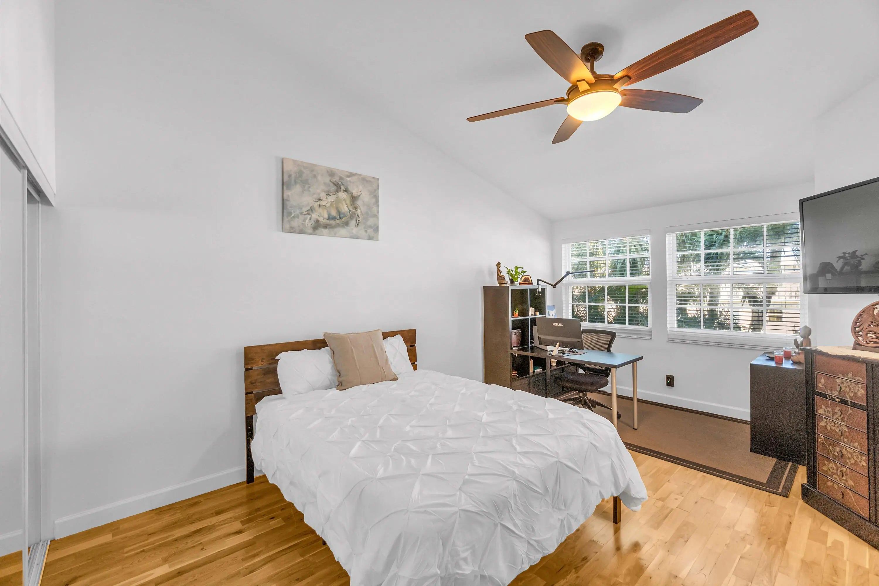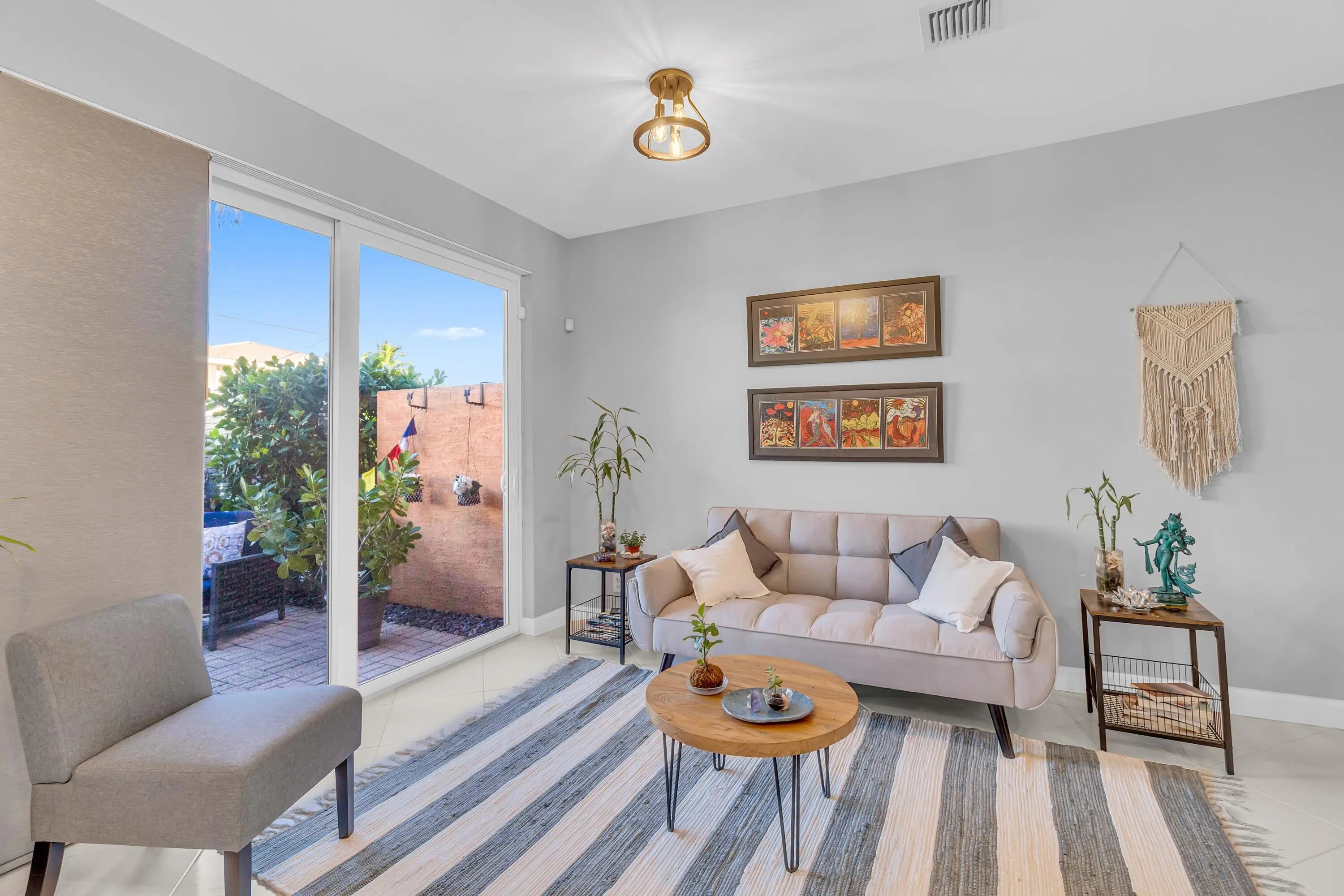 Experience the epitome of Florida's coastal lifestyle in this rarely available townhome in ocean breeze club. Located just steps from the sand, this 2 story townhome with 1 car garage is waiting for you to come home. 2 Bedrooms and 2.5 Bathrooms with preferred east/west exposure. Complete hurricane protection with full impact windows and doors including the garage door! Wake up everyday to sea breezes and tons of natural light pouring into the living room and master bedroom. Downstairs you'll find a half bath for your guests and an open living/dining room setup with direct access to the kitchen. Out back you'll find an expansive patio with full shade in the afternoon hours. The Monthly HOA covers the roof, exterior insurance, exterior maintenance, lawn & pool service, painting and reserves! Upstairs you'll find both bedrooms with ensuite baths and a bonus feature of 2 separate closets in each room! A major bonus especially in this area is the community pool just steps from the front door. All of the best restaurants and shops on the barrier island are within short walking distance. Recent upgrades include a 2024 A/C and new electric panel. Must own 1 year before renting.