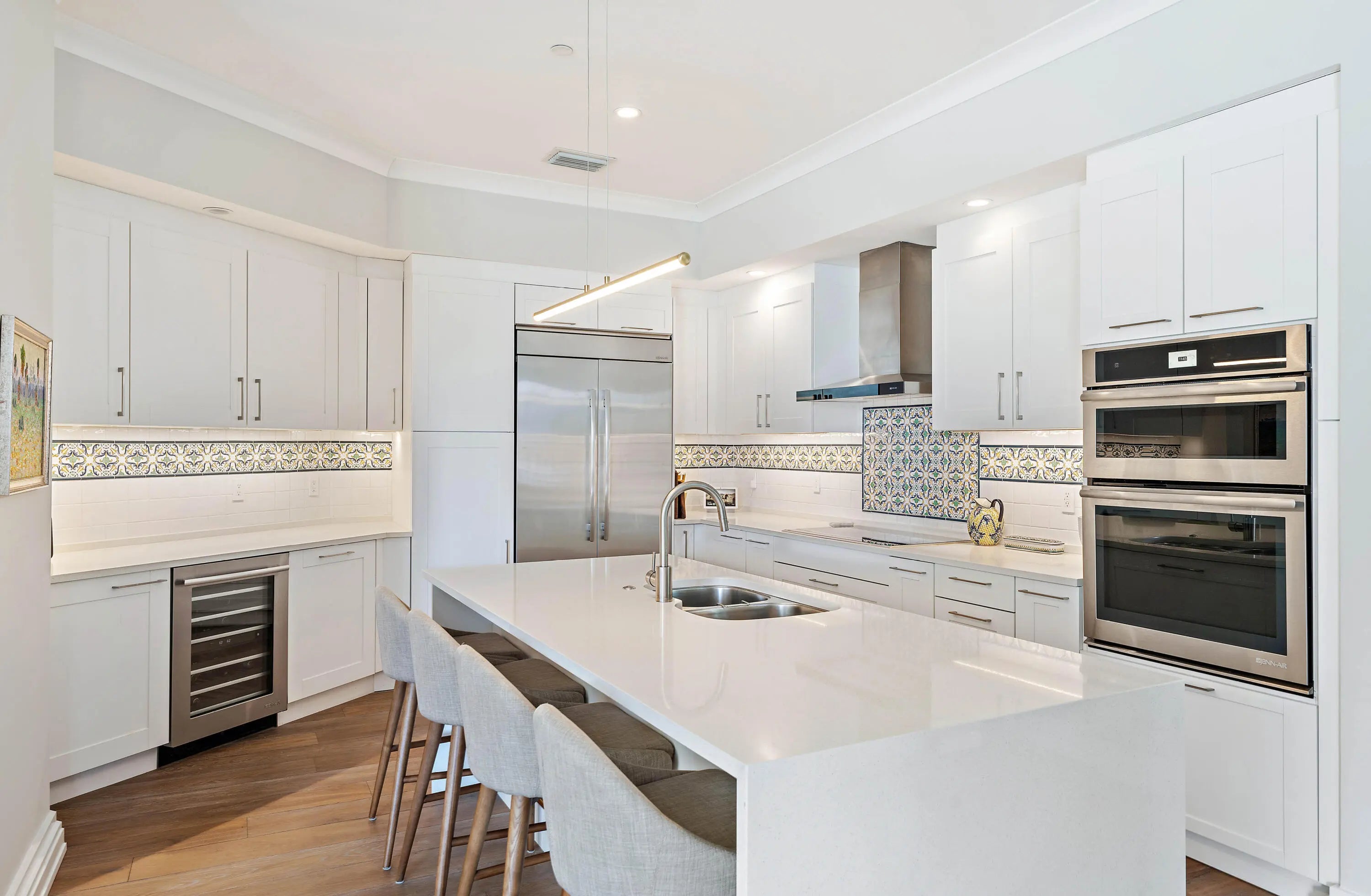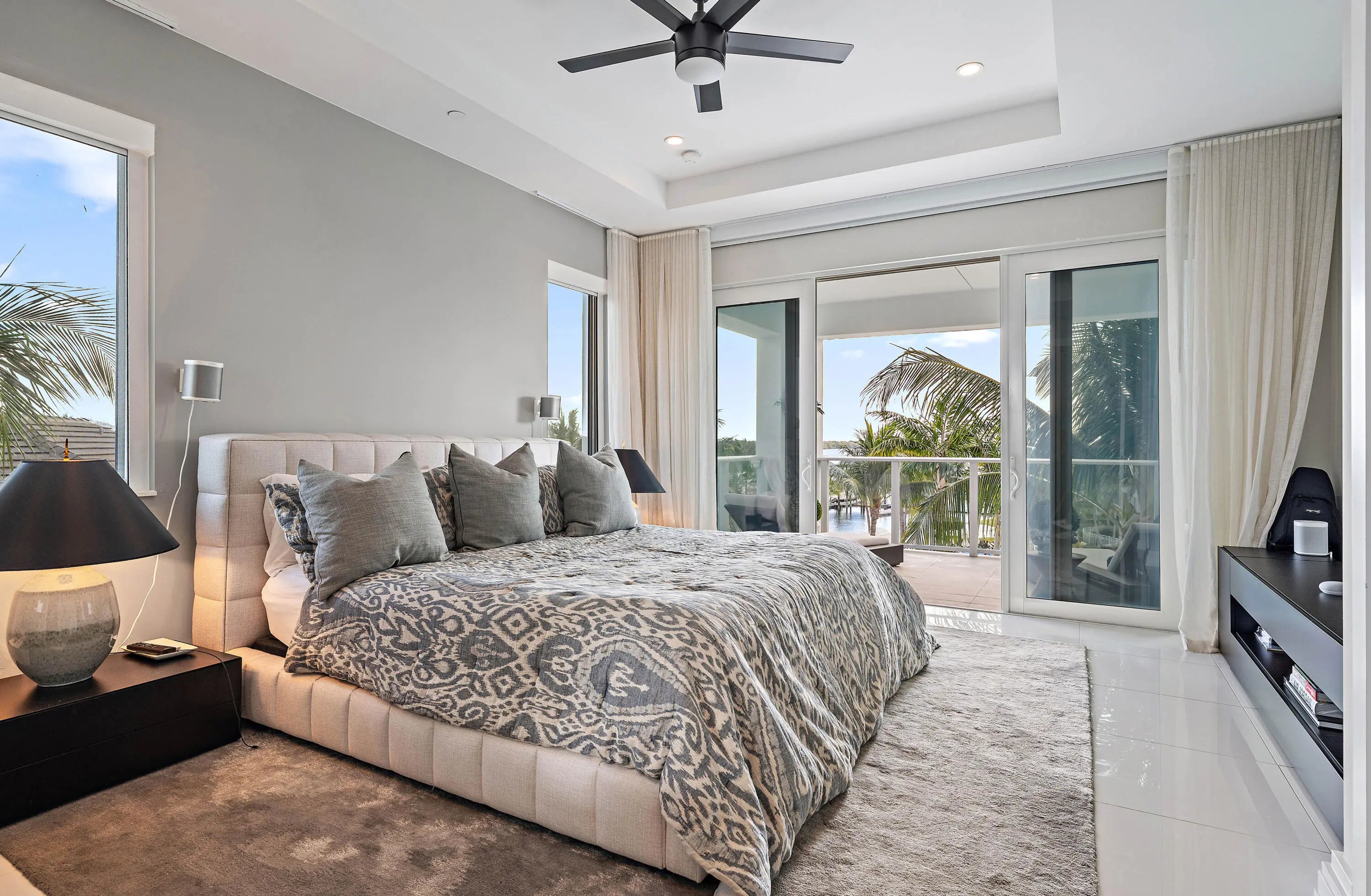 Experience elevated waterfront living in this beautifully updated three-bedroom, four-bathroom three-story villa at the Water Club in North Palm Beach, where panoramic harbor and marina views define a refined coastal lifestyle. Designed by Kolter Homes and thoughtfully enhanced, the residence blends modern elegance with effortless comfort. Light-filled interiors feature warm oak flooring, and a private elevator servicing all levels, creating a home that feels both polished and inviting. Recent upgrades reflect meticulous care and a move-in-ready presentation. Outdoor living shines with over 630 square feet of terraces ideal for relaxing and entertaining, complemented by new porcelain tile, refreshed landscaping, and a newly renovated outdoor kitchen. Residents enjoy a resort-style lifestyle with access to two state-of-the-art fitness centers, two elegant resident club rooms, three pools, fire-pit seating areas, and day docks with direct Intracoastal access. Guest suites are also available within the complex when having an overflow of guests. A rare opportunity to enjoy luxury waterfront living in one of North Palm Beach's most coveted communities.