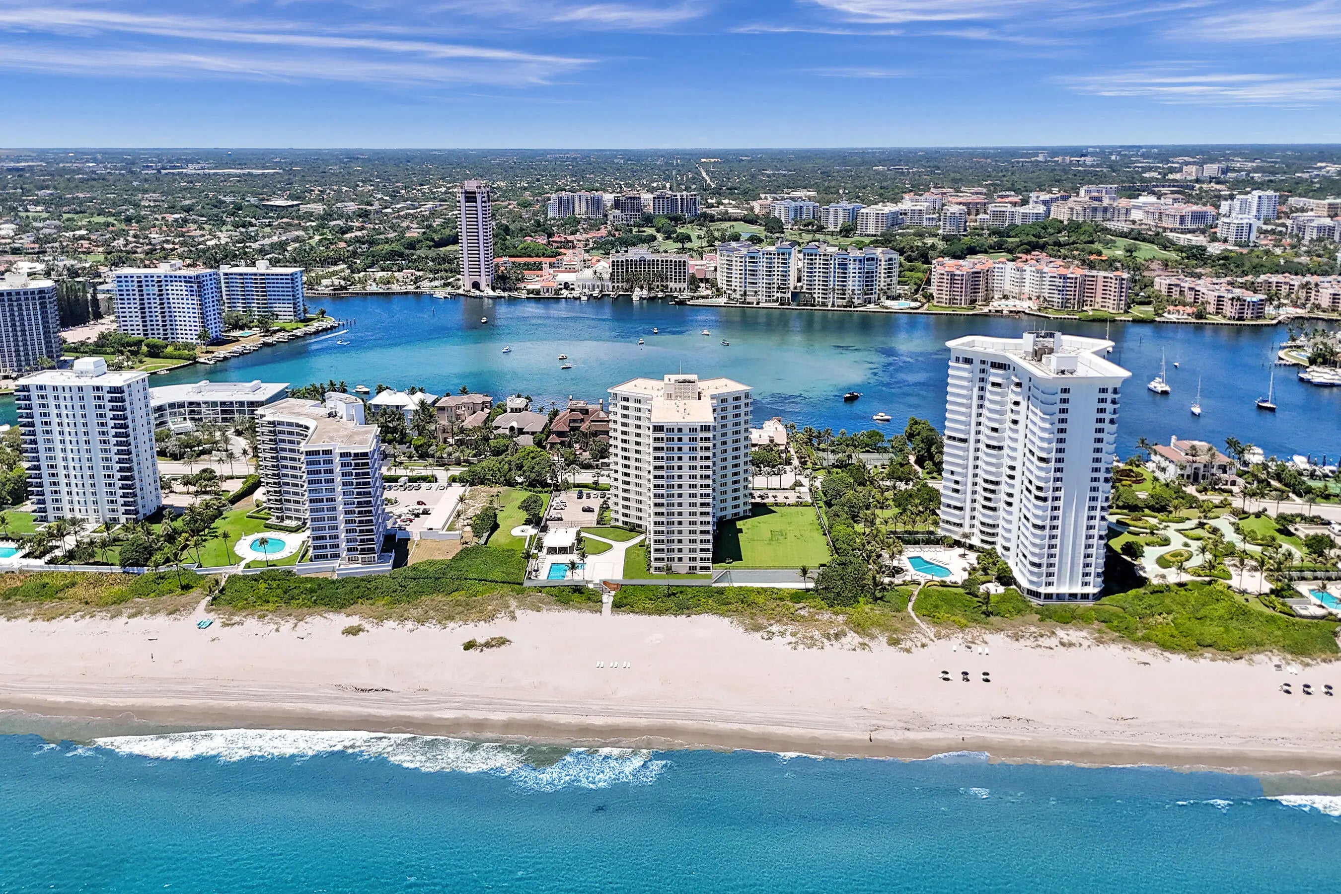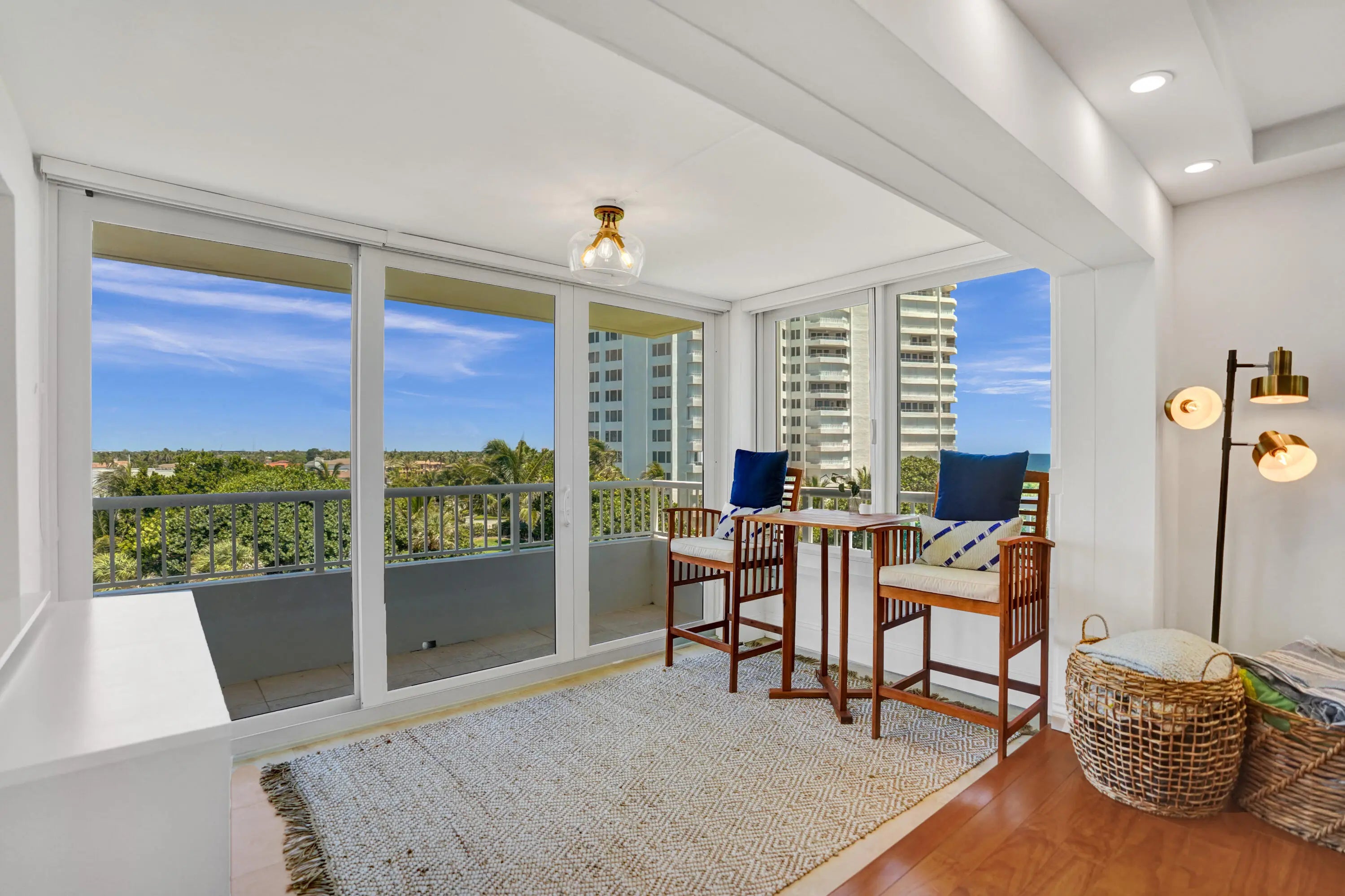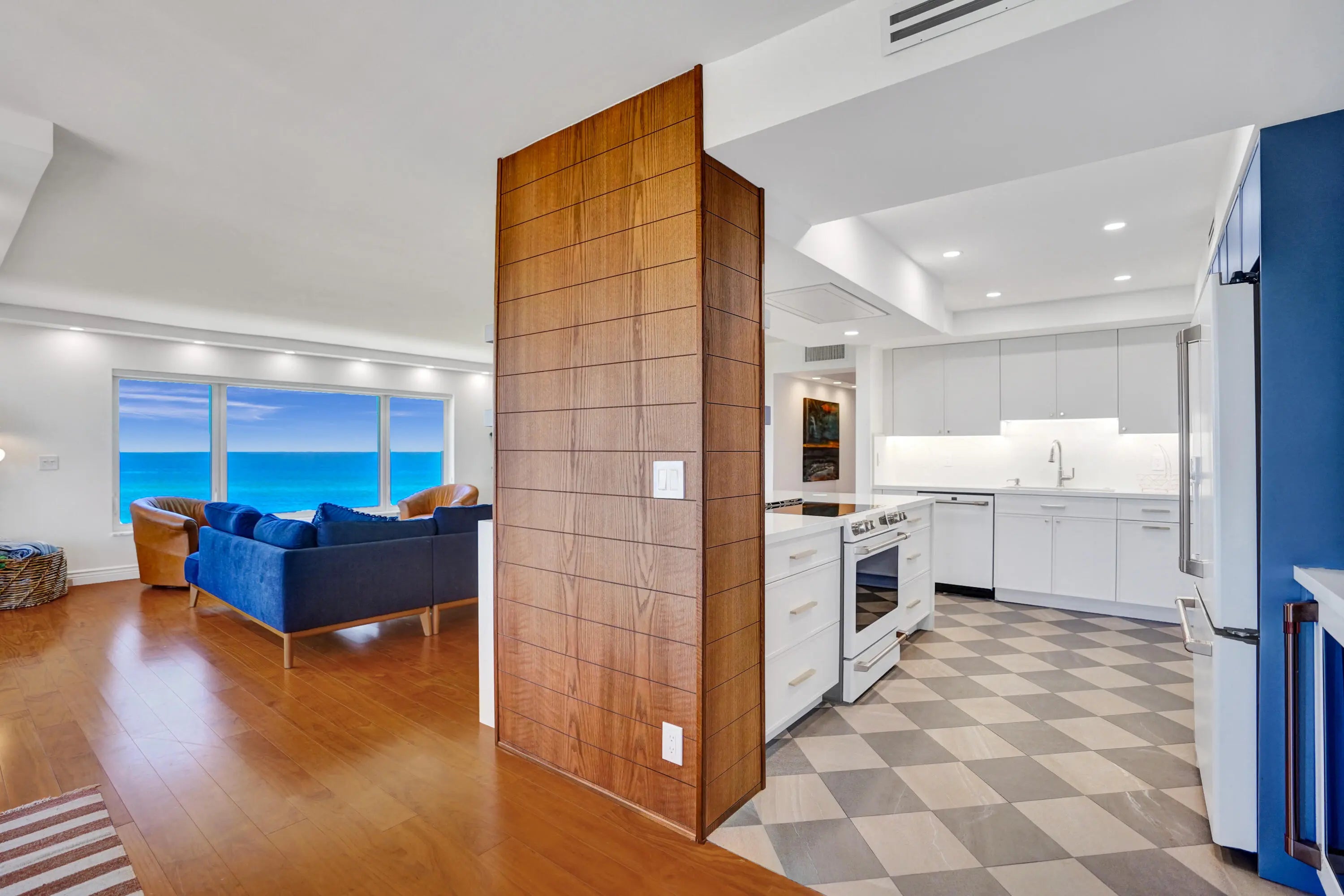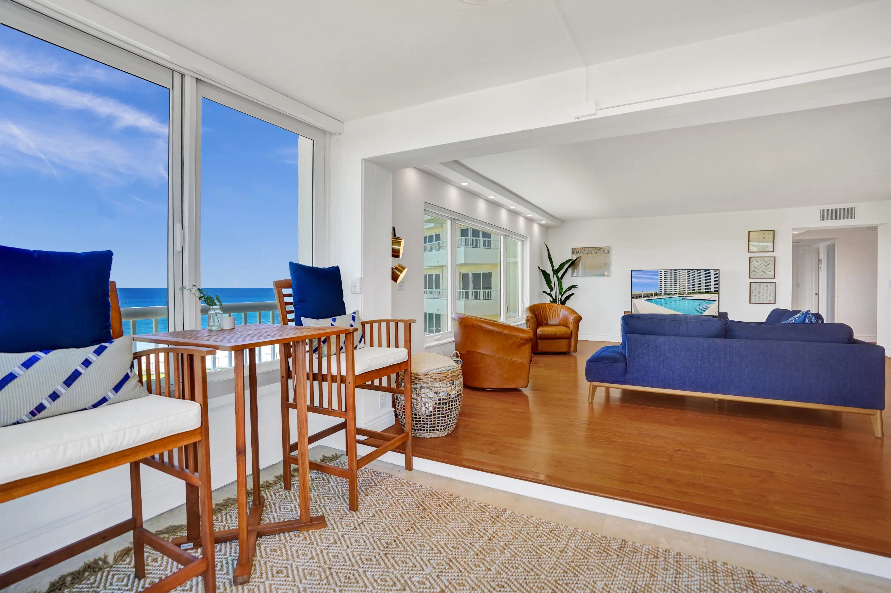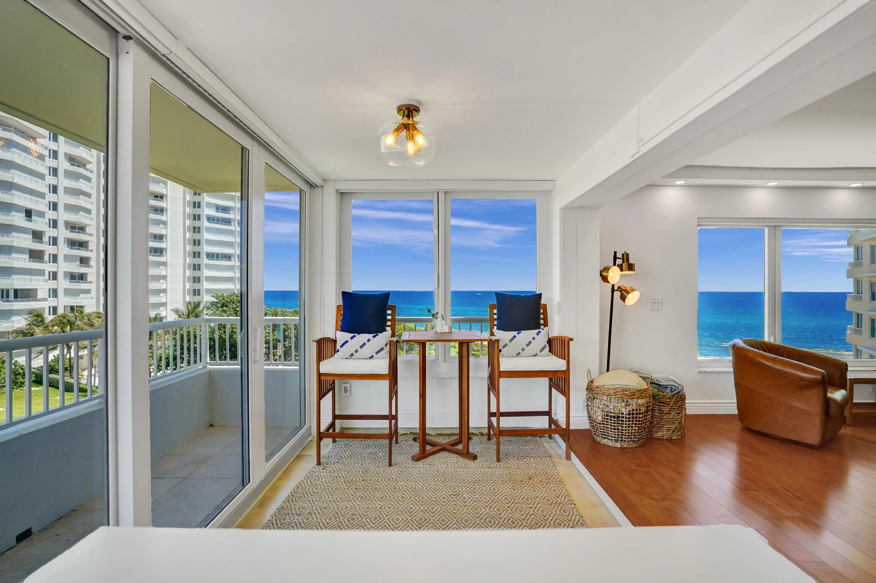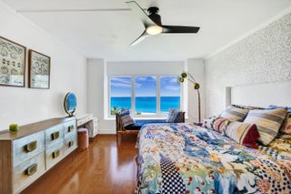 Oceanfront living awaits in this fully furnished 2-bedroom, 2-bath condo at Sabal Shores. From every room, take in spectacular panoramic views of the ocean along with stunning Intracoastal vistas, capturing both sunrise and sunset horizons. The kitchen was redesigned in 2021 by Boca Kitchen & Bath Design, featuring a beautiful open-layout island that serves as both a centerpiece and a gathering space. California closets and a custom Murphy bed, added in 2022, further enhance the balance of elegance and function. Wood and tile flooring flow throughout. An additional storage room provides extra convenience. Sabal Shores offers direct beach access, a resort-style pool deck, outdoor grills, and a modern fitness center, all just steps from the sand.