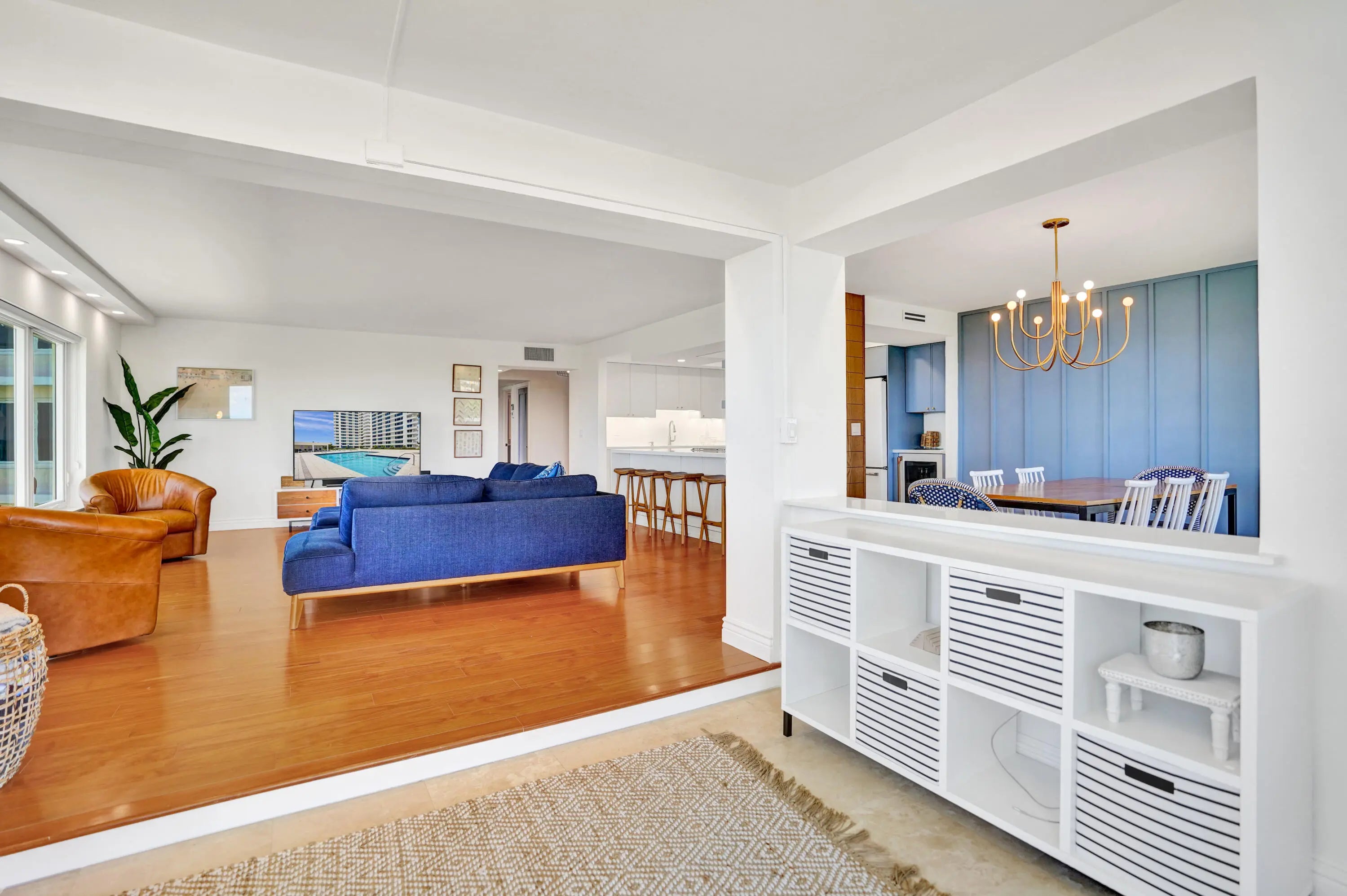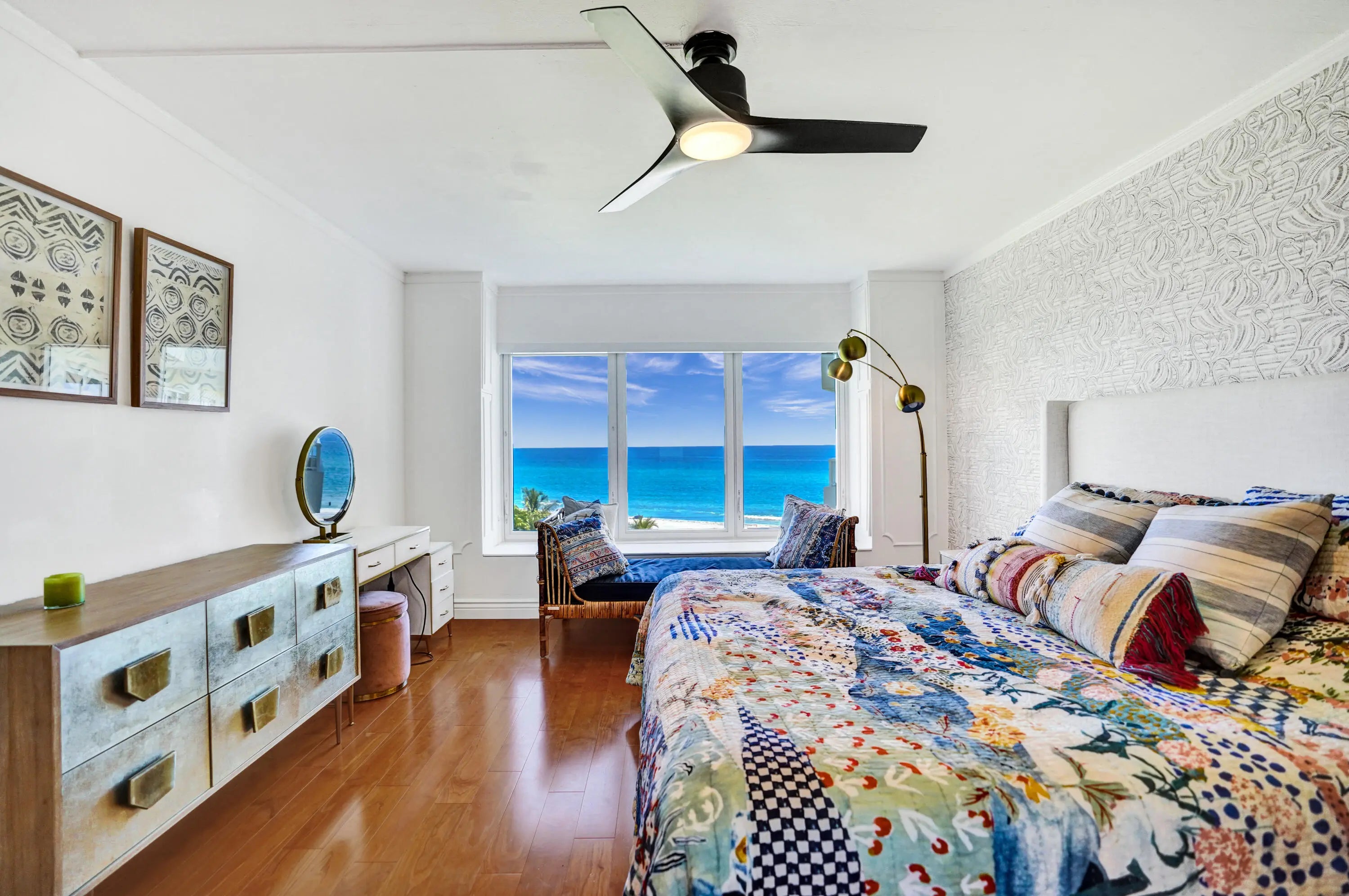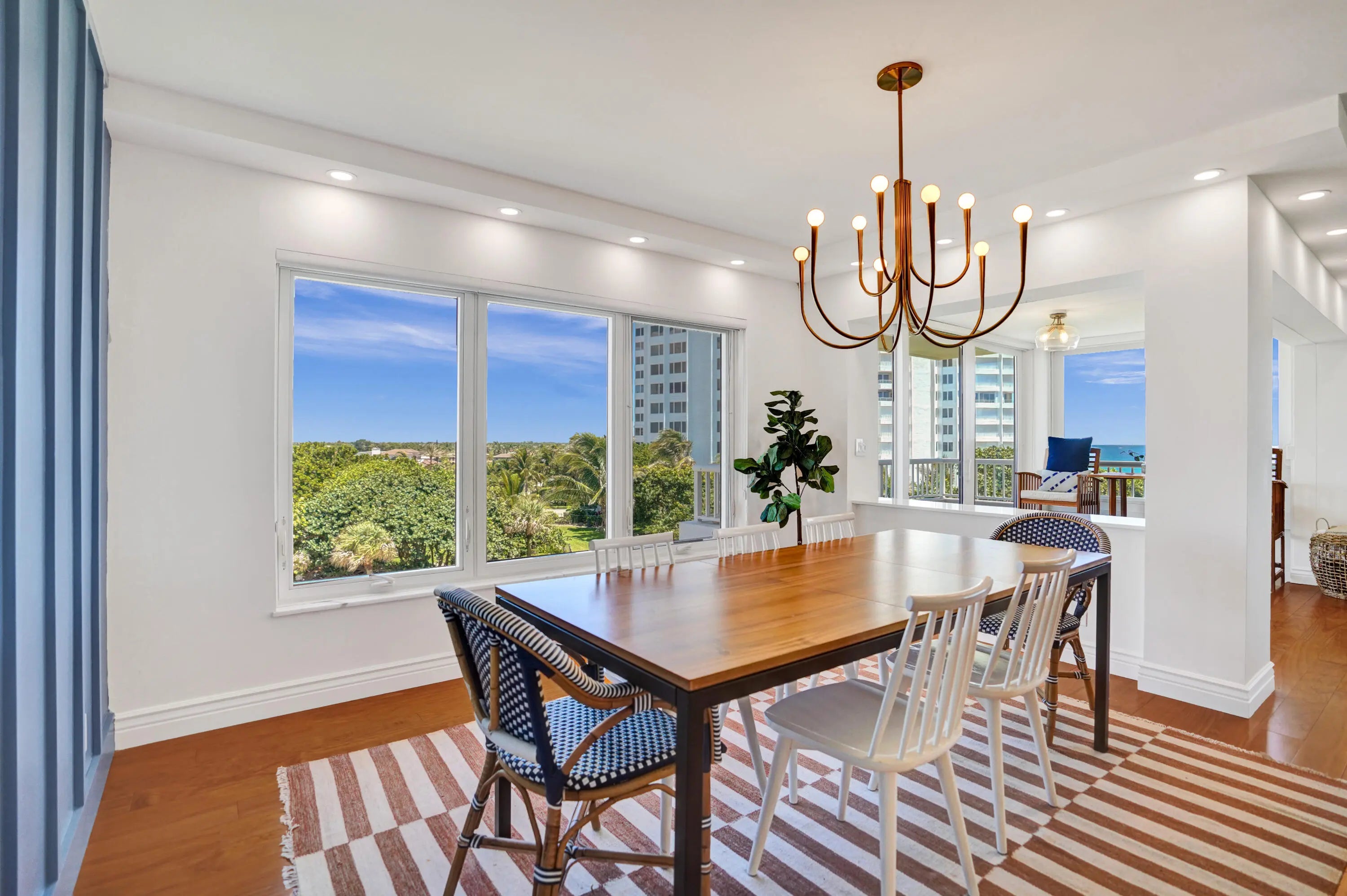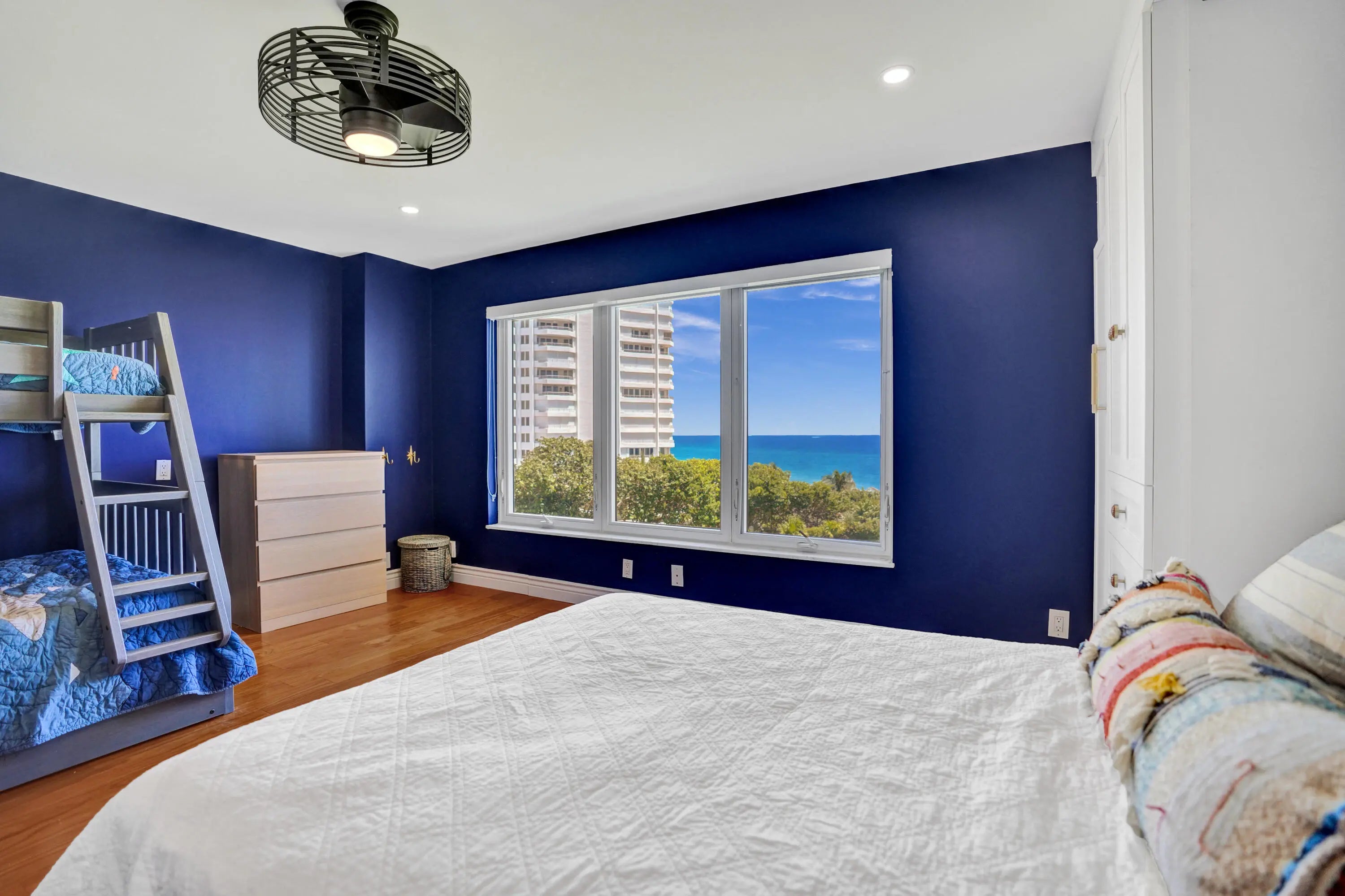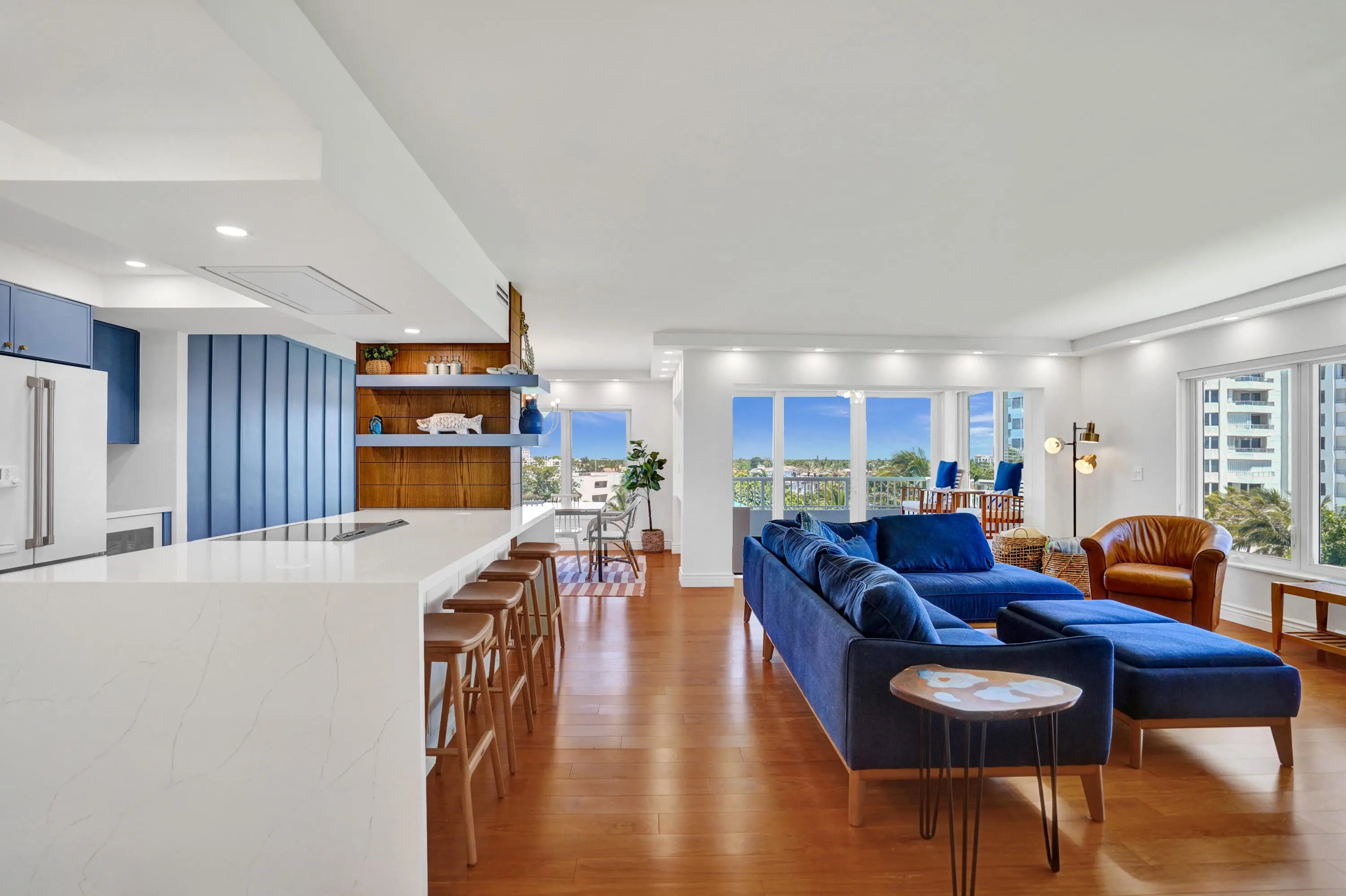Oceanfront living awaits in this fully furnished 2-bedroom, 2-bath condo at Sabal Shores. From every room, take in spectacular panoramic views of the ocean along with stunning Intracoastal vistas, capturing both sunrise and sunset horizons. The kitchen was redesigned in 2021 by Boca Kitchen & Bath Design, featuring a beautiful open-layout island that serves as both a centerpiece and a gathering space. California closets and a custom Murphy bed, added in 2022, further enhance the balance of elegance and function. Wood and tile flooring flow throughout. An additional storage room provides extra convenience. Sabal Shores offers direct beach access, a resort-style pool deck, outdoor grills, and a modern fitness center, all just steps from the sand.