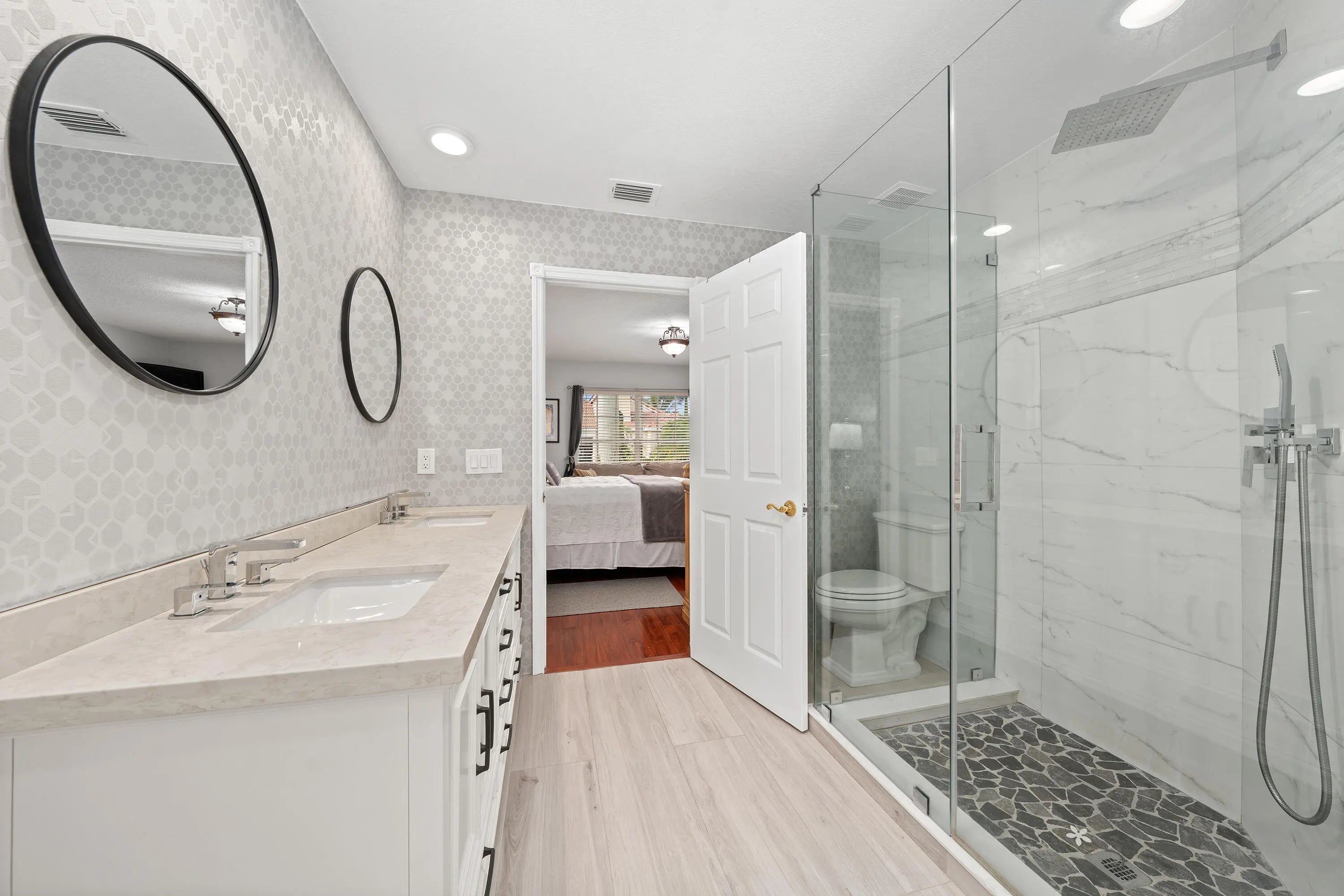 Beautifully updated 4-bedroom +bonus room, 2.5-bath home located in the desirable West Boca Raton. The spacious primary suite and renovated bath are conveniently located on the first floor, along with a guest half bath and a versatile bonus room—ideal for a home office or guest room-offering excellent privacy and flexibility.Upstairs has a loft, three additional bedrooms & a bathroom.Enjoy a huge screened patio overlooking a lush backyard filled with mature fruit trees, perfect for relaxing or entertaining. This home features a 2-car garage plus a large driveway with ample parking. Hurricane protection with impact windows provides added peace of mind. Located in sought-after Boca Landings, low HOA community offering resort-style amenities, cable, pool, tennis, basketball, pickleball+more