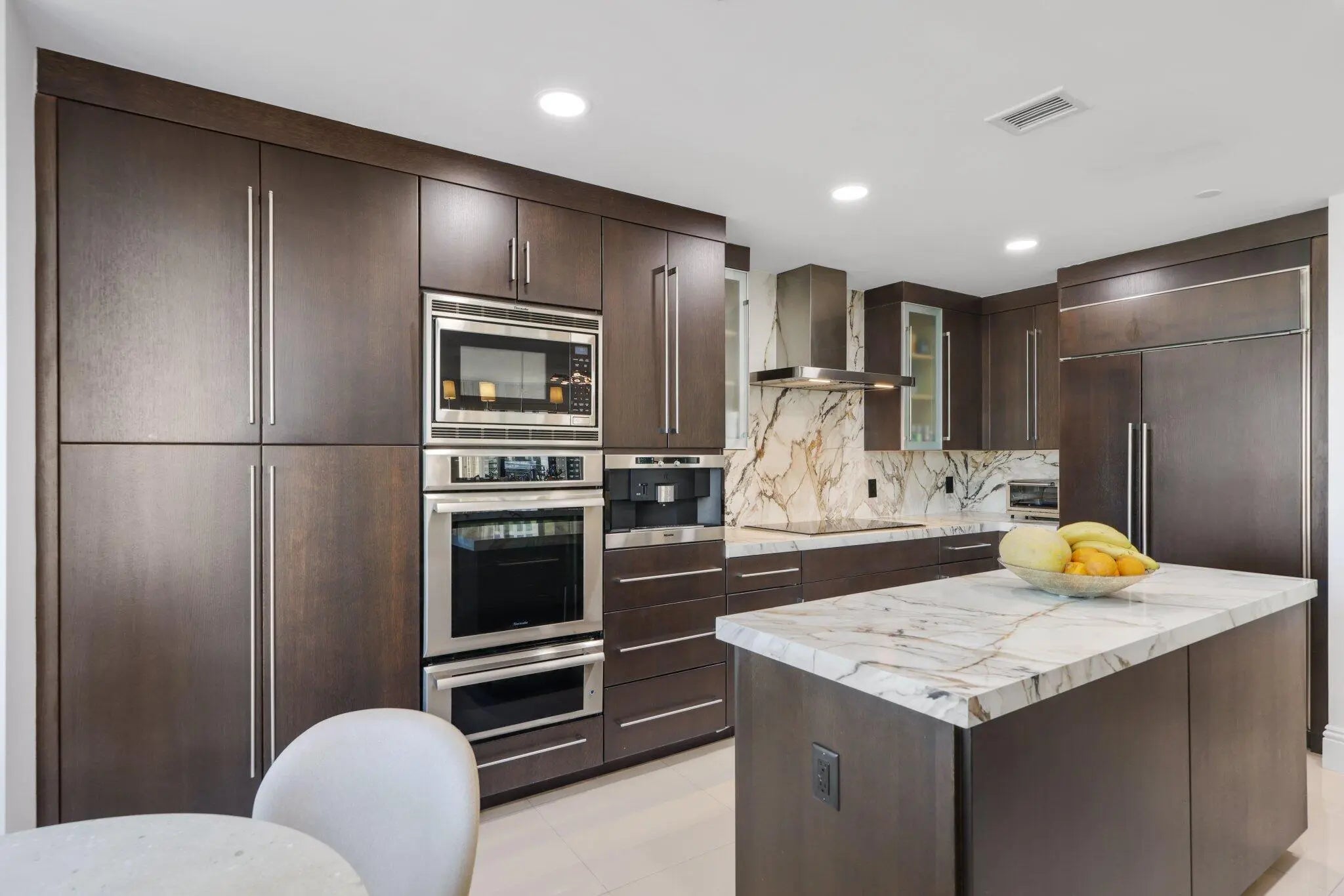 DOWNTOWN MODERN ELEGANCE! Exceptional 3Bed/3.5Ba corner residence offers 2,490 sf of open and airy living space in the heart of downtown Boca. A modern, beautifully designed kitchen features rich espresso wood cabinetry, a workstation sink, induction cooktop and thick mitered-edge white porcelain countertops and backsplash accented by sweeping veins of brown, tan, and beige. Premium appliances include a Wolf induction cooktop, BEST chimney range hood, Miele built-in Nespresso system, and Sub-Zero fridge. A chic powder room makes a statement with a stunning new marble & brass vanity, a custom tiled wall with beautiful modern wall sconces mixed with elegantly appointed wallpaper. Enjoy add'l outdoor living w/ 3 covered spacious balconies offering engaging city views! 2 Pkg Spaces + 1 Stora Additional new improvements include a Hot Water Heater, A/C unit, Washer and Dryer and outdoor porcelain tile on all (3) balconies. 200 East just completed a $6M interior design / concrete restoration renovation in 2025. Ideally located just steps away from Mizner Park, Royal Palm Plaza and many of Boca's best restaurants, shopping and entertainment - Offering downtown living at its finest. 200 East offers 5-star services and amenities, including a 24/7 front desk and concierge, porte-cochère valet parking, a resort style 4th-level pool and spa deck, and an all new exercise and clubroom.