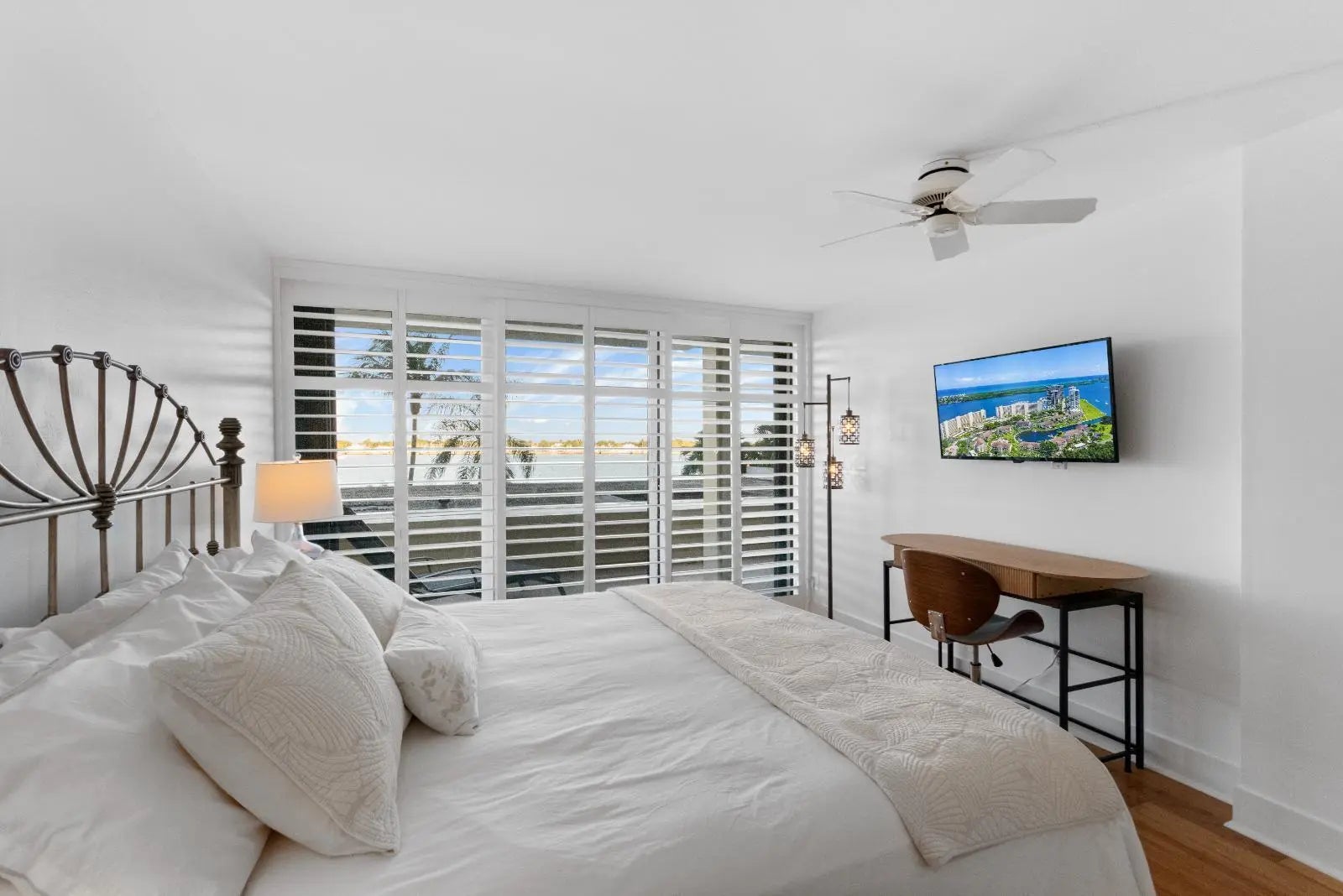 Beautifully renovated 2 bedroom, 2 bathroom residence located in the gated waterfront community of Old Port Cove. This updated unit features wood and tile flooring throughout, along with a stunning kitchen complete with custom cabinetry, marble-look backsplash, and newer stainless steel appliances. The spacious living and dining areas offer an open layout with serene water views. The large primary suite includes a dual vanity, walk-in shower, and generous walk-in closet. The guest suite offers an updated tub/shower combination. The dining space, kitchen, and both bedrooms have plantation shutters. Enjoy a wide, extended balcony with plenty of space to relax and take in the views, accessible from both bedrooms. Quay North offers excellent amenities, including a waterfront pool, fitness center, community room, covered parking, and more. Walk to Belle's Restaurant by the marina or enjoy the scenic waterfront pathway around the community. Ideally located near shopping, dining, golf, and miles of beautiful beaches.