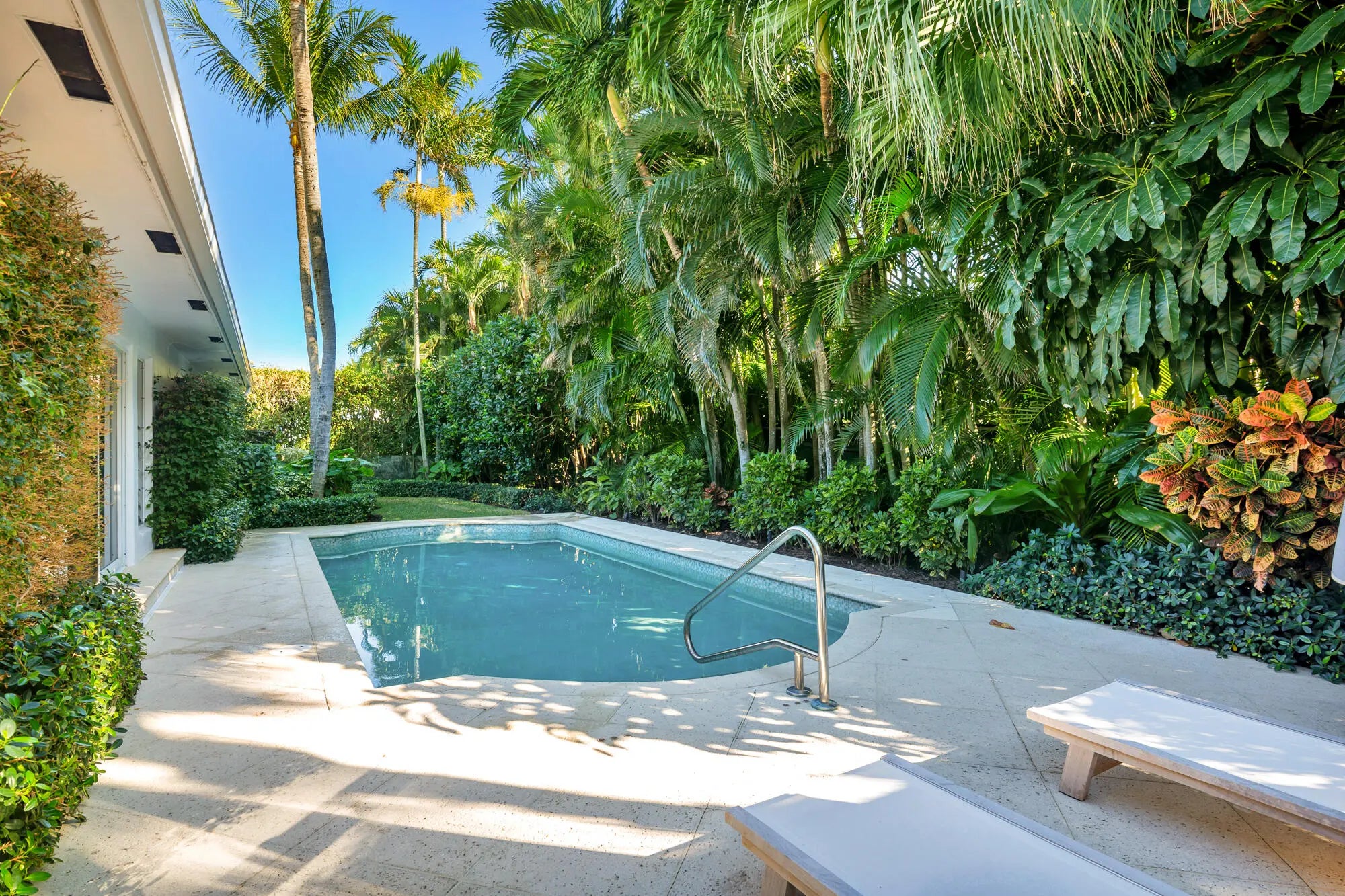 Located on a quiet North End street on the island of Palm Beach, this four-bedroom, three-bathroom residence offers exceptional access to both the ocean and the Intracoastal lifestyle. Residents of Osceola Way enjoy use of a private beach cabana reserved exclusively for the street, along with close proximity to the Lake Trail, ideal for walking, biking, and taking in the waterfront setting. The home is thoughtfully arranged for comfortable living and easy indoor-outdoor enjoyment. The primary suite opens directly to the pool and features a renovated bathroom with dual vanities. The dining room and main living areas also connect to the pool terrace, creating a natural gathering space surrounded by lush landscaping. Two of the guest bedrooms with a full bath are located in the main part of the house while one of the guest bedrooms has private access from the pool area, with an en suite bath, making it well suited for guests. Additional features include a two-car garage, dedicated laundry area, and beautifully landscaped outdoor spaces that enhance both privacy and the overall setting. This North End location, combined with private beach access and immediate proximity to the Lake Trail, makes the property especially appealing for those seeking a relaxed Palm Beach rental close to the water.