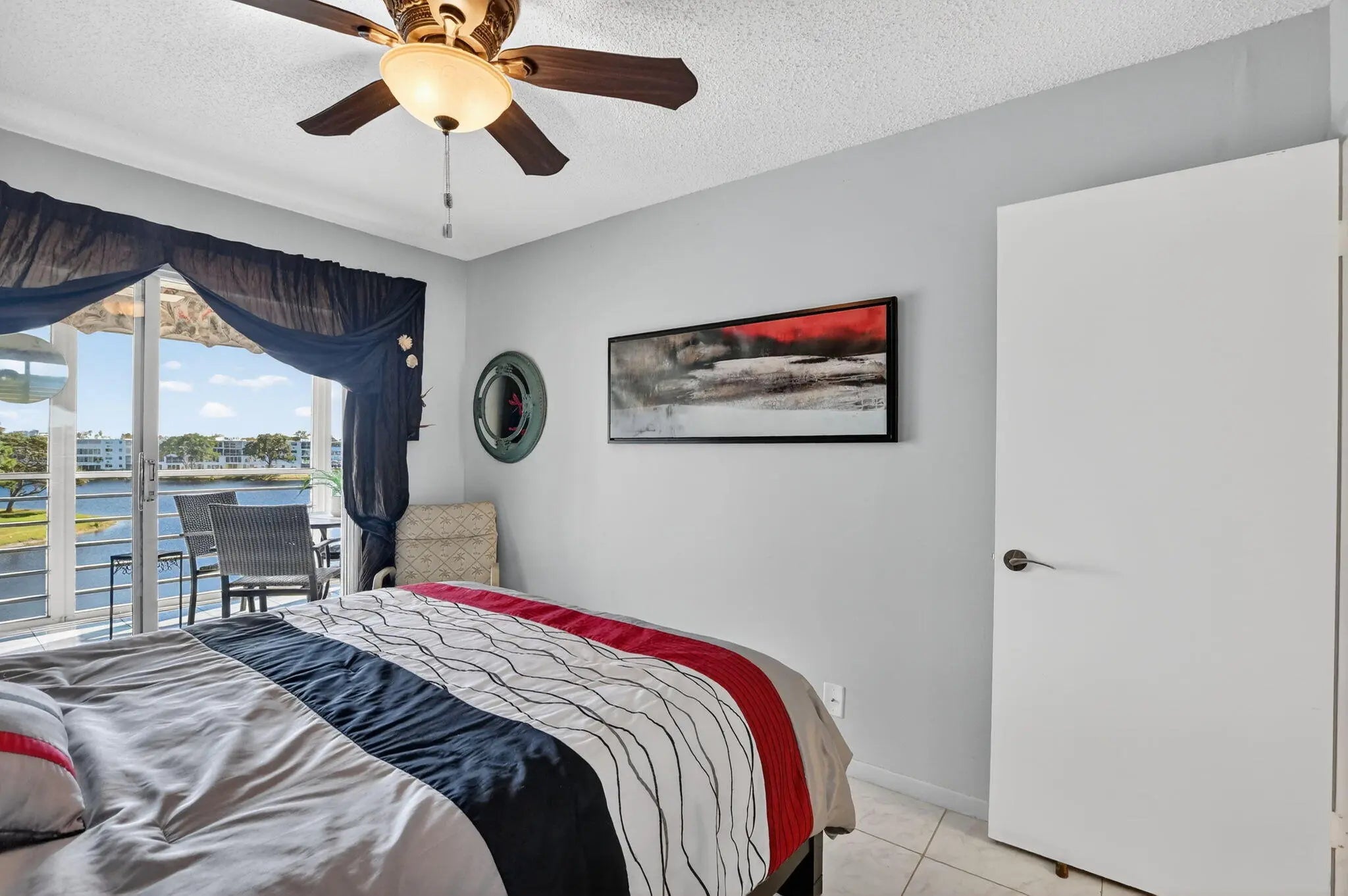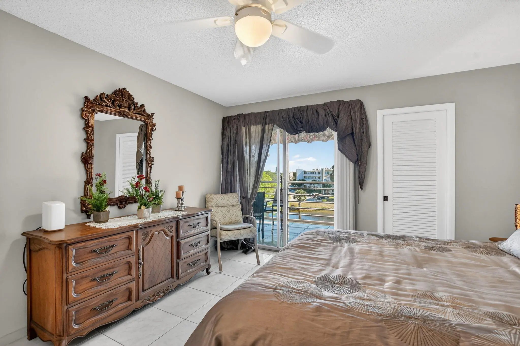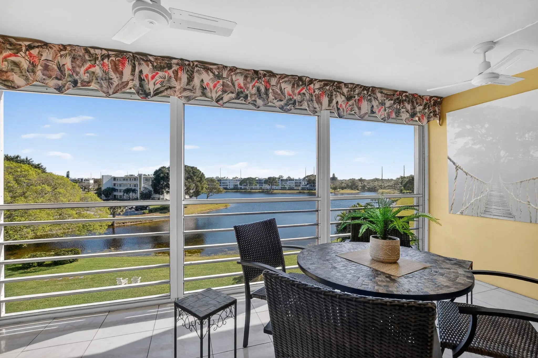 Enjoy picturesque water views from this immaculate 2-bedroom, 2-bath condo located in the prestigious Century Village community, within the highly desirable Oakridge V building. Situated on the 4th floor, this bright and spacious residence offers serene waterfront views from the large screened-in balcony — the perfect place to relax and unwind. The unit features beautifully updated bathrooms, tile flooring throughout, and an abundance of storage closets. Being sold furnished, this move-in-ready condo is ideal for year-round living or as a seasonal retreat. Century Village offers an exceptional lifestyle with resort-style amenities including 24-hour gated security, indoor and outdoor pools, clubhouse, fitness center, tennis courts, common laundry, and a wide array of social activities. Conveniently located near shopping, dining, beaches, and transportation, everything you need is just moments away. This is truly a must-see opportunity!
