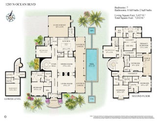 Nestled on a rare over half-acre oceanfront lot, this exceptional new construction home is situated on one of the most desirable ocean front stretches of Palm Beach Island, the prestigious North End. Known for its private and expansive beaches, this British Colonial estate occupies a .64-acre lot with 125 feet of breathtaking views over the clear blue Atlantic Ocean. It features private deeded beach access via the Kenlyn Road shared beach parcel, ensuring exclusive private entry to the pristine shoreline. This exquisite estate offers 7 bedrooms and 10 bathrooms within 5,637 square feet of interior space, totaling 7,012 square feet of living area. The home includes a basement with elevator access, a 2-car garage, and a heated saltwater pool complete with a jacuzzi spa. The rare oversized lot provides the potential to build additional +/- 5,000 square footage to suit your needs. Whether it's a guest house or tennis courts, the possibilities are endless. The interior layout is thoughtfully designed with a secondary primary bedroom on the first floor, a formal dining room, a private study, and a gourmet kitchen equipped with a walk-in pantry. All spaces are accentuated by soaring ceilings and designer-grade finishes. The primary suite features dual walk-in closets, while the basement level offers adaptable space with a bathroom and laundry facilities, perfect for a wine cellar or exercise room. This property represents a recent collaboration between the esteemed Harrison Design and M2B Homes, whose work has been highlighted in Florida Design. Their impressive portfolio includes Merrywood in Atlanta, Georgia, which won the 2020 Addison Mizner Award from the Institute of Classical Architecture and Art Florida Chapter and the 2021 Residential Design Award from the American Institute of Architects Atlanta Chapter. This is a rare opportunity to own a brand-new oceanfront residence on a rare .64 acre ocean front lot along one of the most coveted stretches of Palm Beach Island.