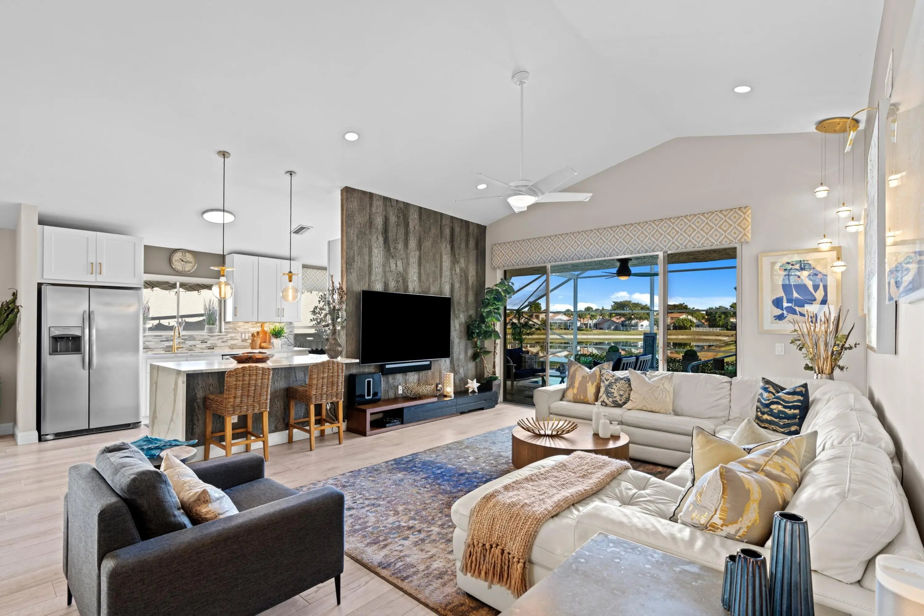ABSOLUTELY GORGEOUS WATERFRONT SINGLE FAMILY HOME | PRESTIGOUS GATED COMMUNITY OF BOCA POINTE | BREATHTAKING LAKE VIEWS | Fully Renovated | Bright Open Split Floor Plan | LED Custom Lighting | Vaulted Ceilings | Arched Windows | Sky Lights | Eat-In Kitchen | Breakfast Bar/Center Island | Quartz Countertops | Tile Backsplash | White Wood Cabinets | S/S Appliances | Large Primary Bedroom | Ensuite with Dual Sink Vanity | Immaculate Lush Landscaping | Turf | Screened Covered Patio | Heated Saltwater Pool with Sundeck | Pergola | Fenced Backyard | 2 Car GA & Driveway | Resort-Like Amenities | Optional Membership | Minutes to Beaches, Mizner Park, Royal Palm Plaza & 1-95 | Top A+ Rated Schools | New 2020 Pool Heater | WH 2017 | AC 2013 | Roof 2006 | PRESENT ALL OFFERS!