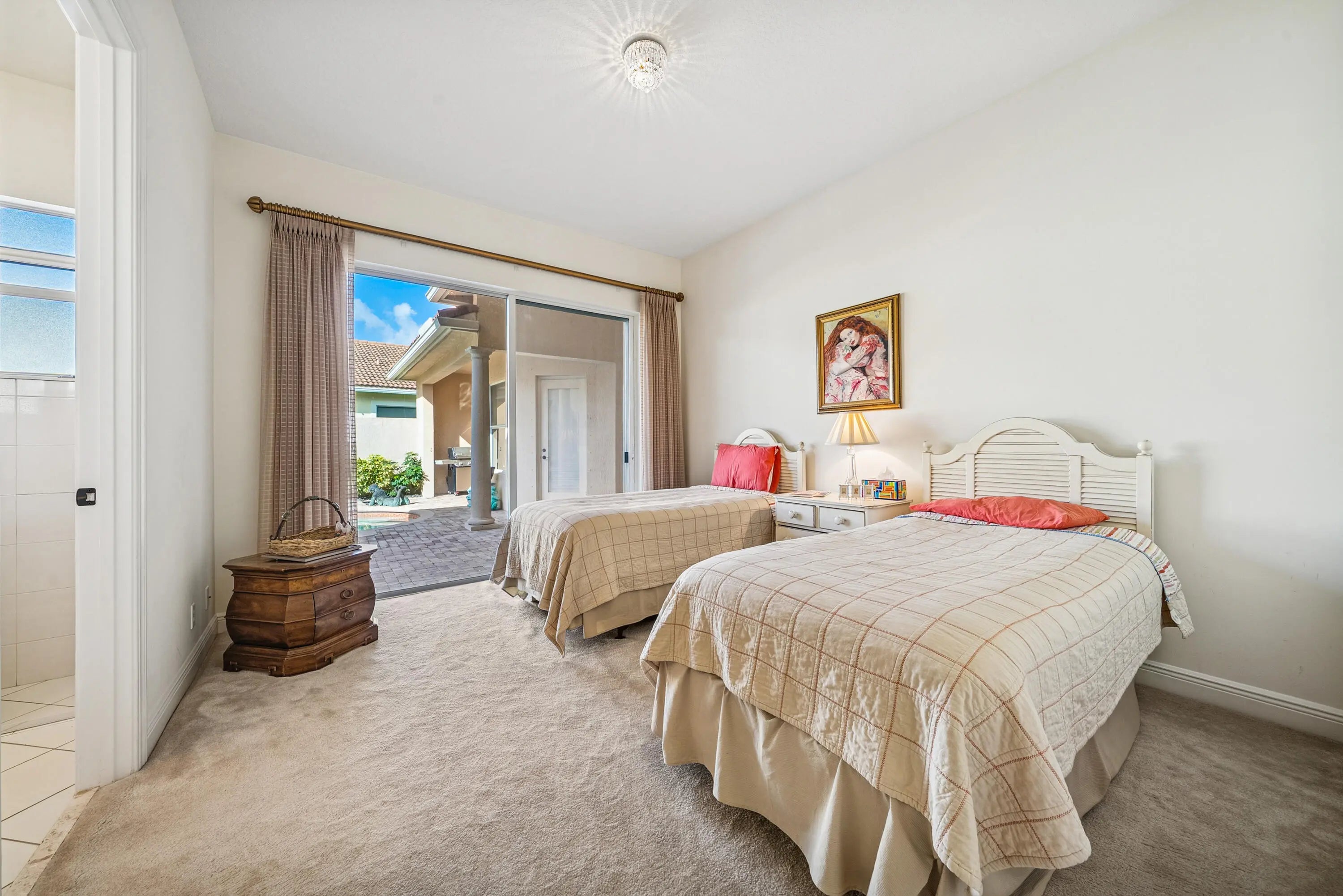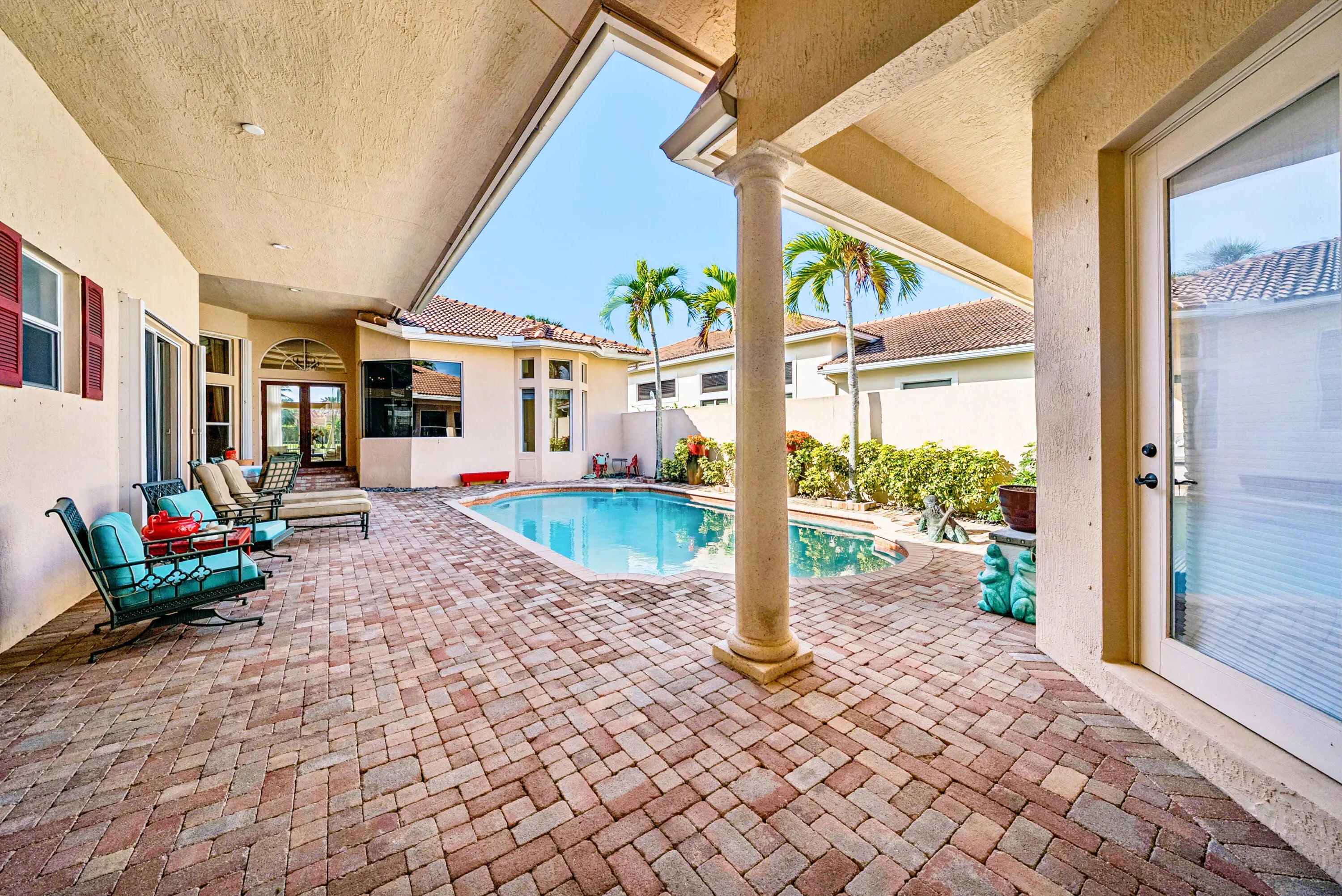 Exceptional courtyard estate perfectly positioned on a premium lot overlooking the 16th fairway and serene lake views in the prestigious Frenchman's Reserve Country Club. This well-appointed 4 bedroom, 4.5 bathroom residence offers refined living for both everyday comfort and elegant entertaining. The spacious open layout features high ceilings, abundant natural light, and expansive living and dining areas. The primary suite serves as a private retreat with dual closets, and a luxurious en-suite bath designed with separate shower and spa tub for relaxation. A detached courtyard guest suite provides flexible accommodations ideal for extended family, visitors, or a private home office. Each of the four bedrooms includes its own en-suite bathroom. Enjoy tranquil garden and courtyard views along with inviting outdoor living spaces perfect for entertaining or taking in the golf and lake vistas. This home has a very desirable Social/Sports Membership. Residents enjoy world-class amenities at Frenchman's Reserve including championship Arnold Palmer Signature golf course, grand clubhouse, tennis & pickleball facilities, state-of-the-art fitness center, full-service spa, resort-style pool, kids' CORE club, and multiple dining venues. Conveniently located just minutes from beaches, fine dining, and premier shopping. Schedule your private tour today.