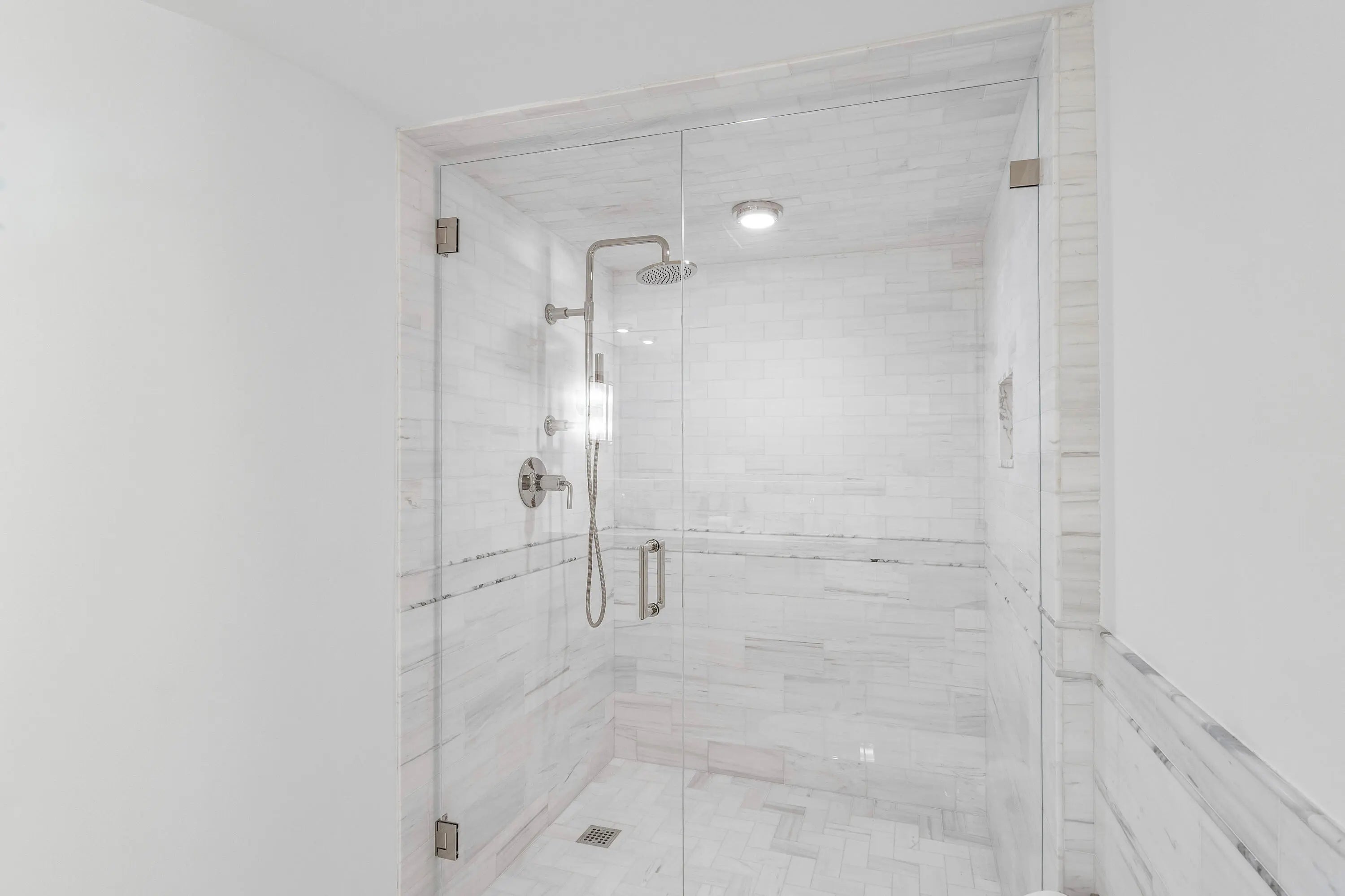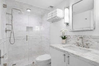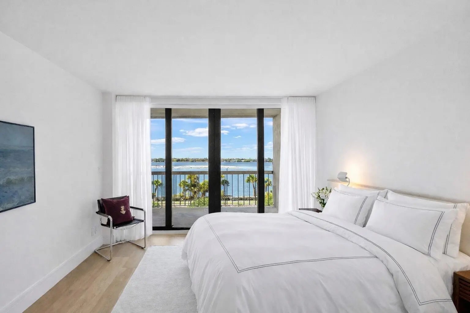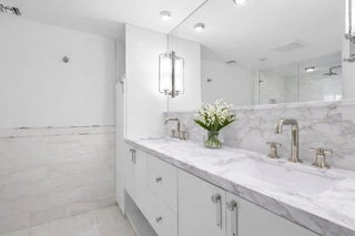 Fully reimagined and masterfully renovated, this exceptional 2-bedroom, 2-bath residence at The Dorchester offers breathtaking Intracoastal water views and spectacular sunsets from every room. Designed with uncompromising attention to detail, every inch of this home has been rebuilt to the highest level of quality, craftsmanship, and finish. Wide-plank white oak flooring flows seamlessly throughout the main living areas, while the kitchen showcases striking chevron-pattern white oak floors, marble dolomite countertops and backsplash accents, custom cabinetry, and a Bertazzoni induction range. Elevated design elements include Ralph Lauren designer lighting and Emtek hardware throughout, creating a cohesive and refined aesthetic. The fully redesigned spa-inspired bathrooms exude luxury, featuring exquisite marble finishes, custom vanities, premium fixtures, and frameless glass showers for a true retreat experience. New impact glass doors and windows frame unobstructed west-facing water views and open to a massive private balcony accessible from the main living area and both bedrooms--offering seamless indoor-outdoor living and panoramic sunset vistas over the Intracoastal. Additional highlights include in-residence laundry, one garage parking space, and thoughtfully curated finishes that elevate the home well beyond typical renovation standards. Located in a highly respected Palm Beach building, residents enjoy resort-style amenities including a pool and spa, tennis courts, a well-equipped fitness center, private beach access, and a beautifully appointed club room. A rare opportunity to own a designer-quality waterfront residence in Palm Beach with unparalleled sunset views and refined coastal elegance.