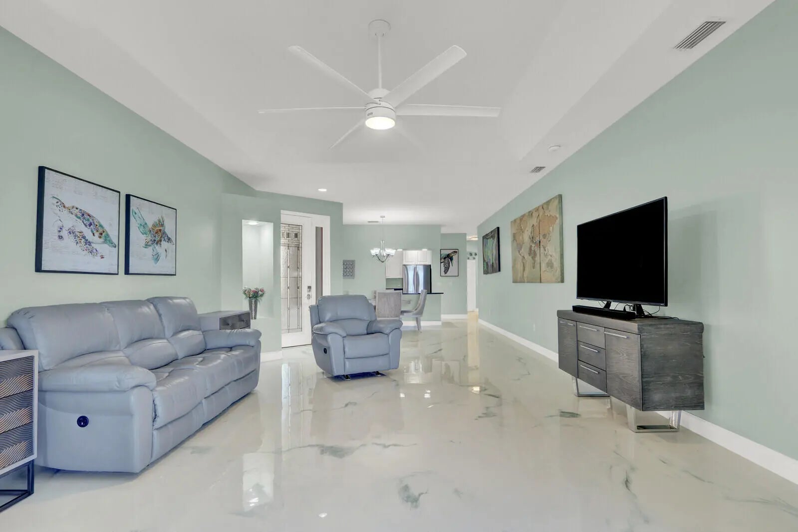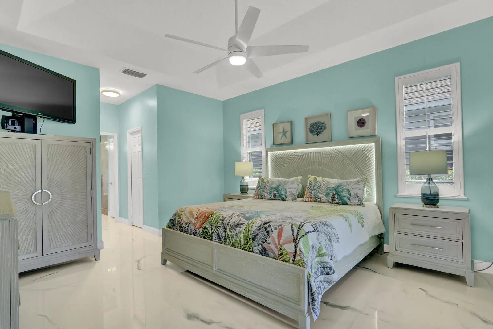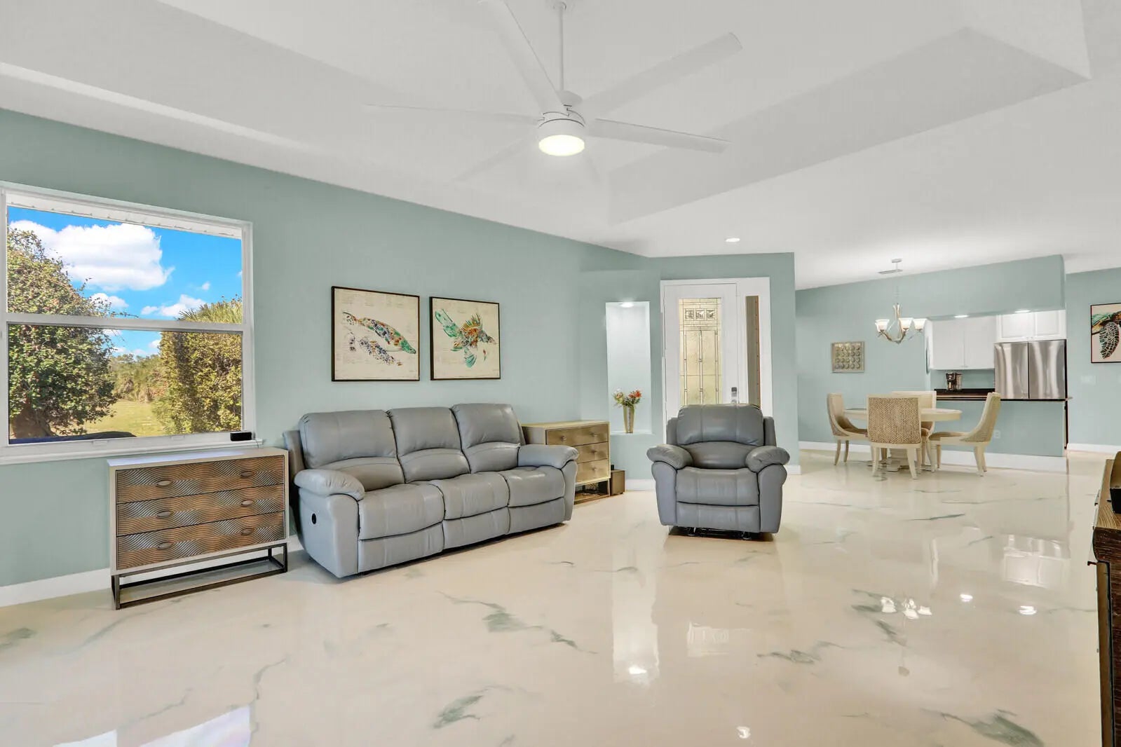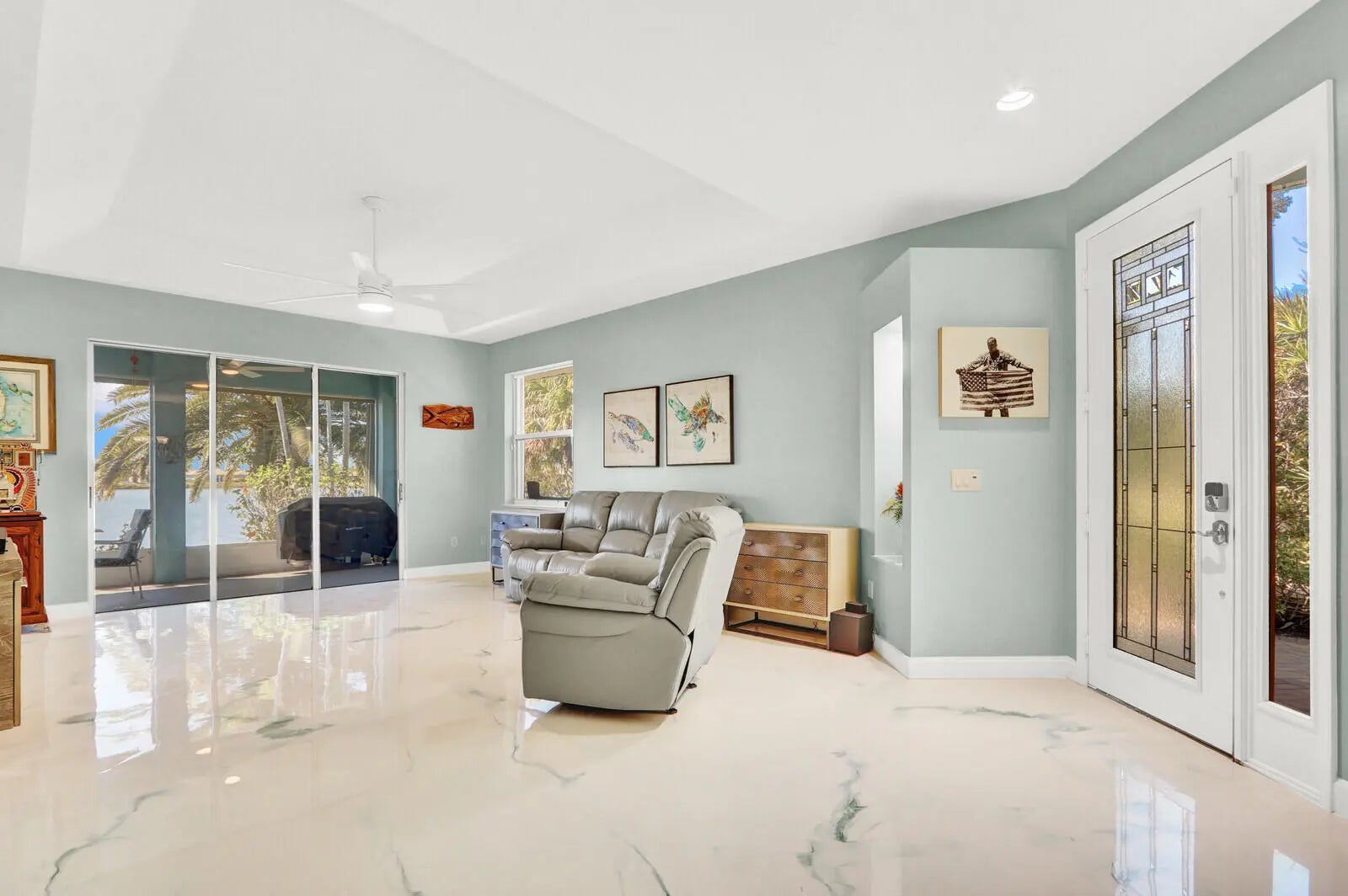 Welcome to your slice of paradise! This stunning 3-bedroom, 2-bath beach house on Hutchinson Island offers the perfect blend of coastal elegance, modern upgrades, and resort-style living all with breathtaking lake views and unforgettable sunsets. From the moment you step inside, you'll be captivated by the bright, open, and airy floor plan designed to maximize natural light and showcase serene water views. Brand new epoxy flooring flows seamlessly throughout the entire home, creating a sleek, modern look that's both beautiful and durable. Major upgrades provide peace of mind, including new roof (Nov. 2024), new AC (Aug. 2024) & accordion shutters for full storm protection. The spacious living areas open to an expanded patio, offering generous outdoor space perfect for entertaining, relaxing, or simply soaking in the spectacular sunset skies. The screened, covered lanai with epoxy flooring creates the ideal setting for morning coffee or evening cocktails while overlooking the tranquil lake. Split bedrooms offer plenty of privacy for guests. The primary bedroom has sliders leading to the screened lanai, two walk-in closets and a tranquil spa-like bathroom with a steam shower. Located in an exclusive gated community, residents enjoy community pool, tennis courts, Pickleball courts, private marina with potential for renting or purchase of a boat slip and best of all private beach access. Whether you are searching for a full-time coastal residence, a seasonal escape, or an investment opportunity, this home delivers luxury, comfort, and the ultimate Florida lifestyle. Wake up to lake views. End every day with gorgeous sunsets. Live where others vacation.