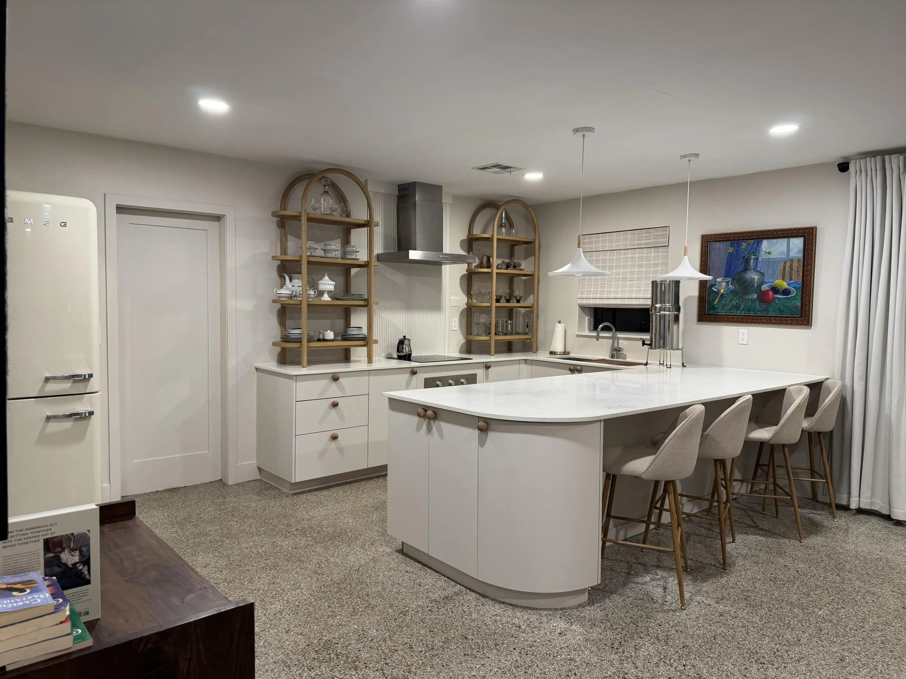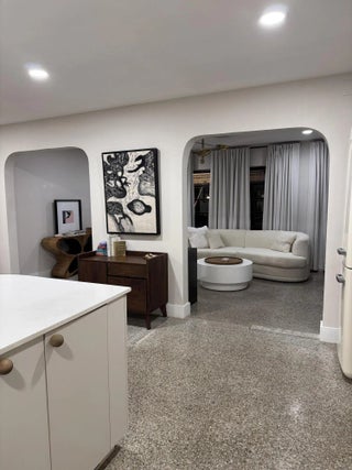 Midcentury Gem, Move-In Ready, A MUST SEE. This beautiful midcentury bungalow was mindfully modernized in 2023, keeping the charm, while adding all the modern comforts. - Terrazzo Floors uncovered and polished - Kitchen modernized featuring an expansive curved peninsula, soft close cabinets and drawers, induction cooktop, built-in oven, Sub Zero ice maker, Smeg refrigerator and Ruvati workstation sink. - Ceilings Refinished - Lighting updated - Patio screened and upgraded w/ marble pavers - Privacy fence added as well as mature Clusia hedge. - Large Workshop/Utility Room refinished to house a sizable office as well as indoor laundry including new front load Maytag washer/dryer -Situated on a large lot w/ beautiful private garden ready for your personal touch.