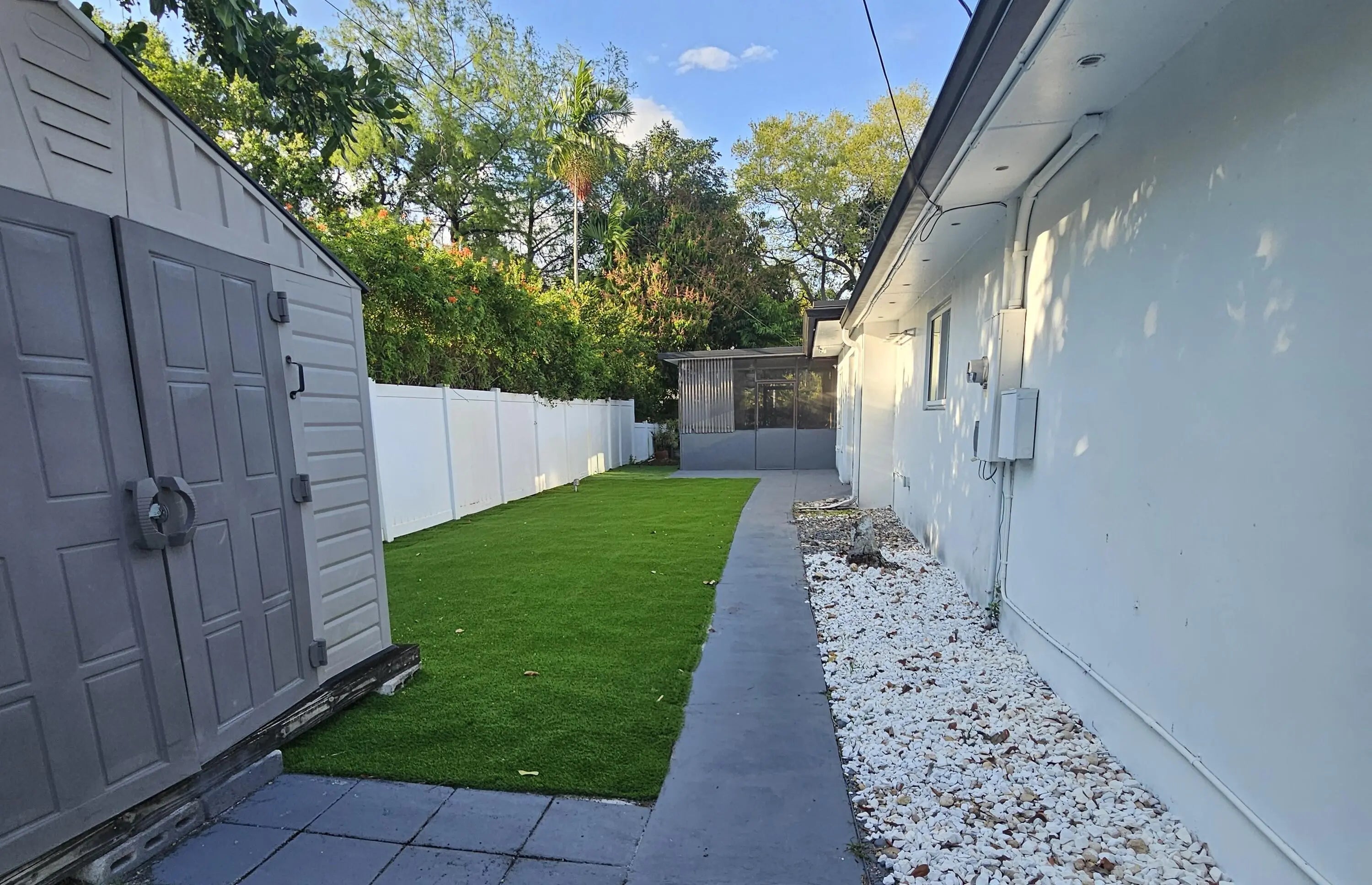 Welcome to one of the largest and most beautifully updated homes in Hollywood Hills. Situated on a quiet, oversized corner lot, this 4-bedroom, 3.5-bath home offers just under 2,700 SF of bright living space--rare for the neighborhood. Major upgrades include a newer tile roof, impact windows, full PVC plumbing, all new interiors, including kitchen and bathrooms, and abundant natural light throughout. A standout feature is the private secondary suite with its own entrance, bathroom, closet, and AC--perfect for guests or in-laws. Enjoy a resurfaced pool, new pool deck, turf yard, full PVC privacy fence, and a dedicated cabana bath adjacent to the pool. Two driveways provide exceptional parking. Move-in ready and ideally located near shopping, beaches, schools, and houses of worship. Updates Include: New Kitchen New Bathrooms All new PVC pipes Impact windows and doors 2020 Tile Roof Updated Electrical LED Lighting New Paver Pool Deck New exterior cabana bath near the pool 2 Primary Suites