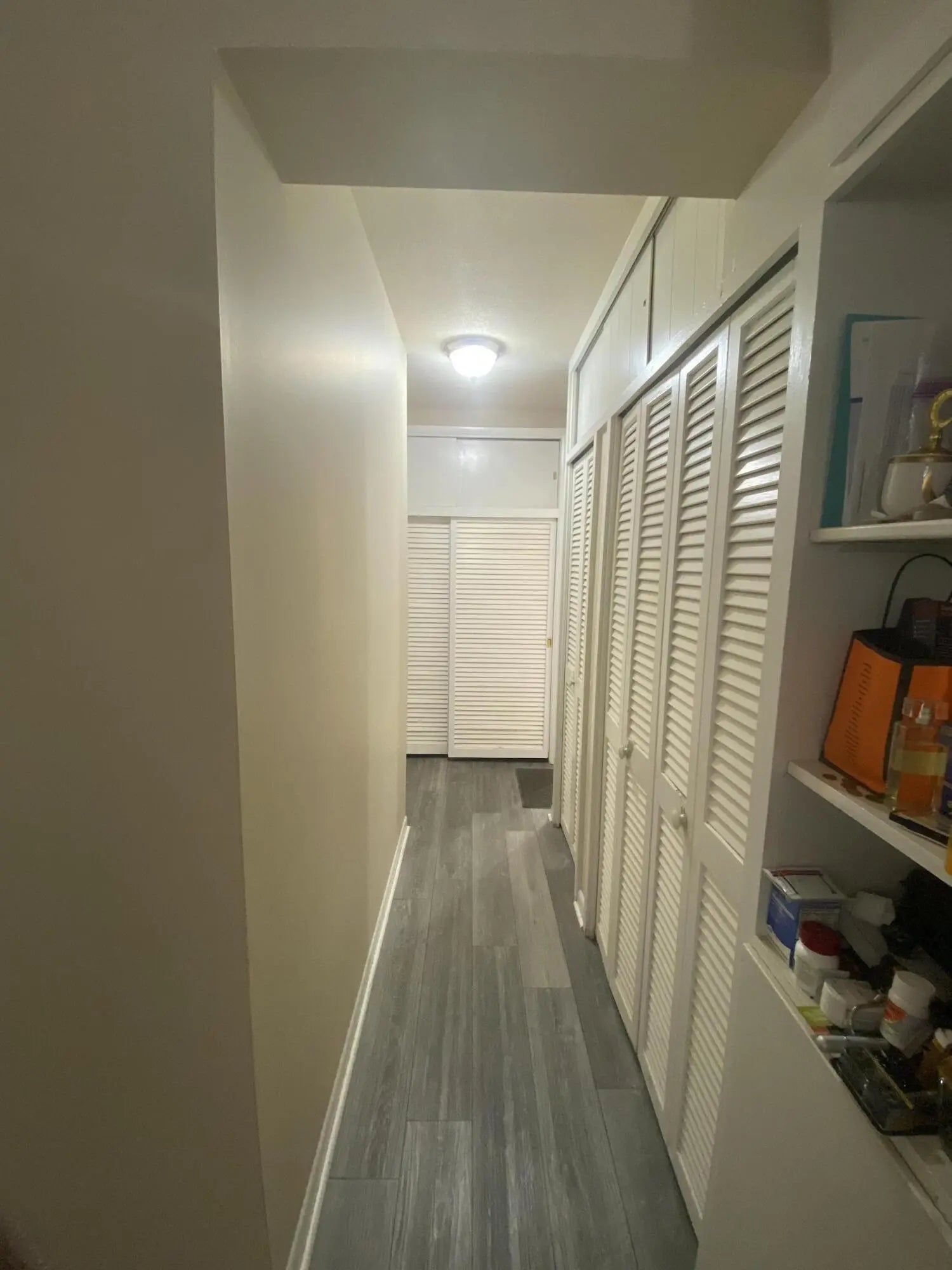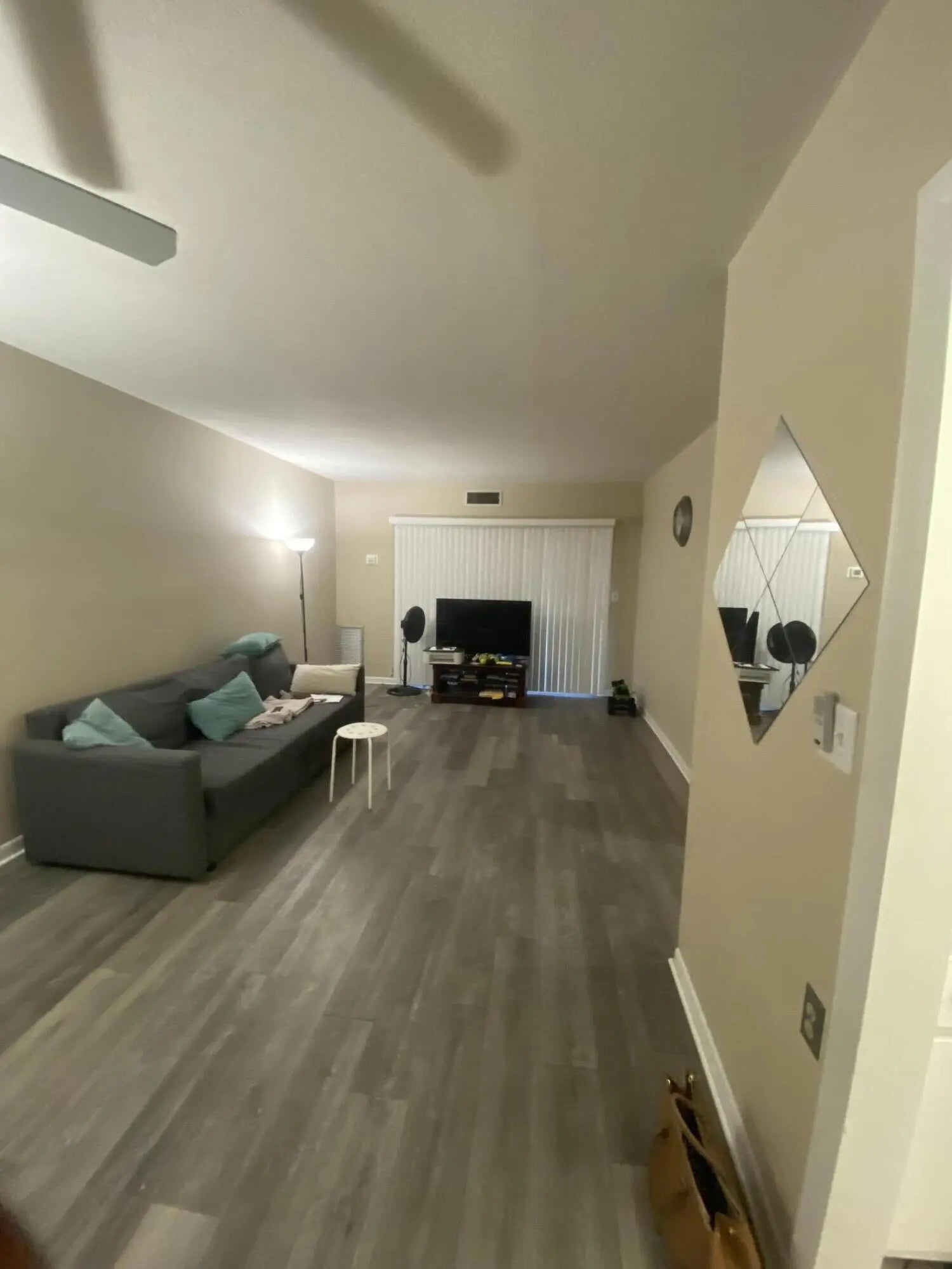 Spacious well-maintained 1 bedroom 1 bathroom apartment with newer flooring and paint and excellent storage. Private patio overlooking a peaceful garden view, with the community pool located just steps away. One assigned parking space located directly outside the front door. Great location close to I-95, the Turnpike, shopping and restaurants.