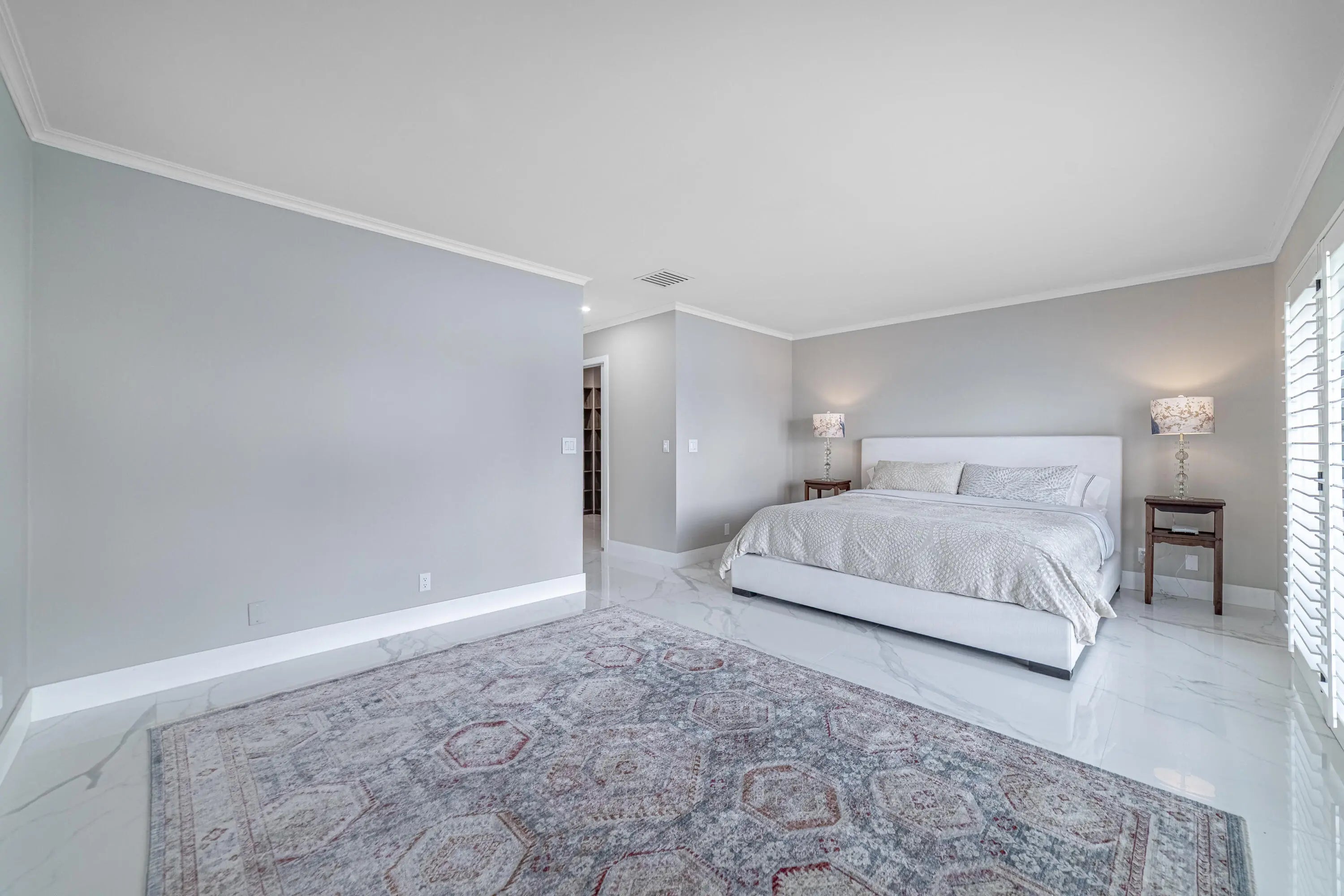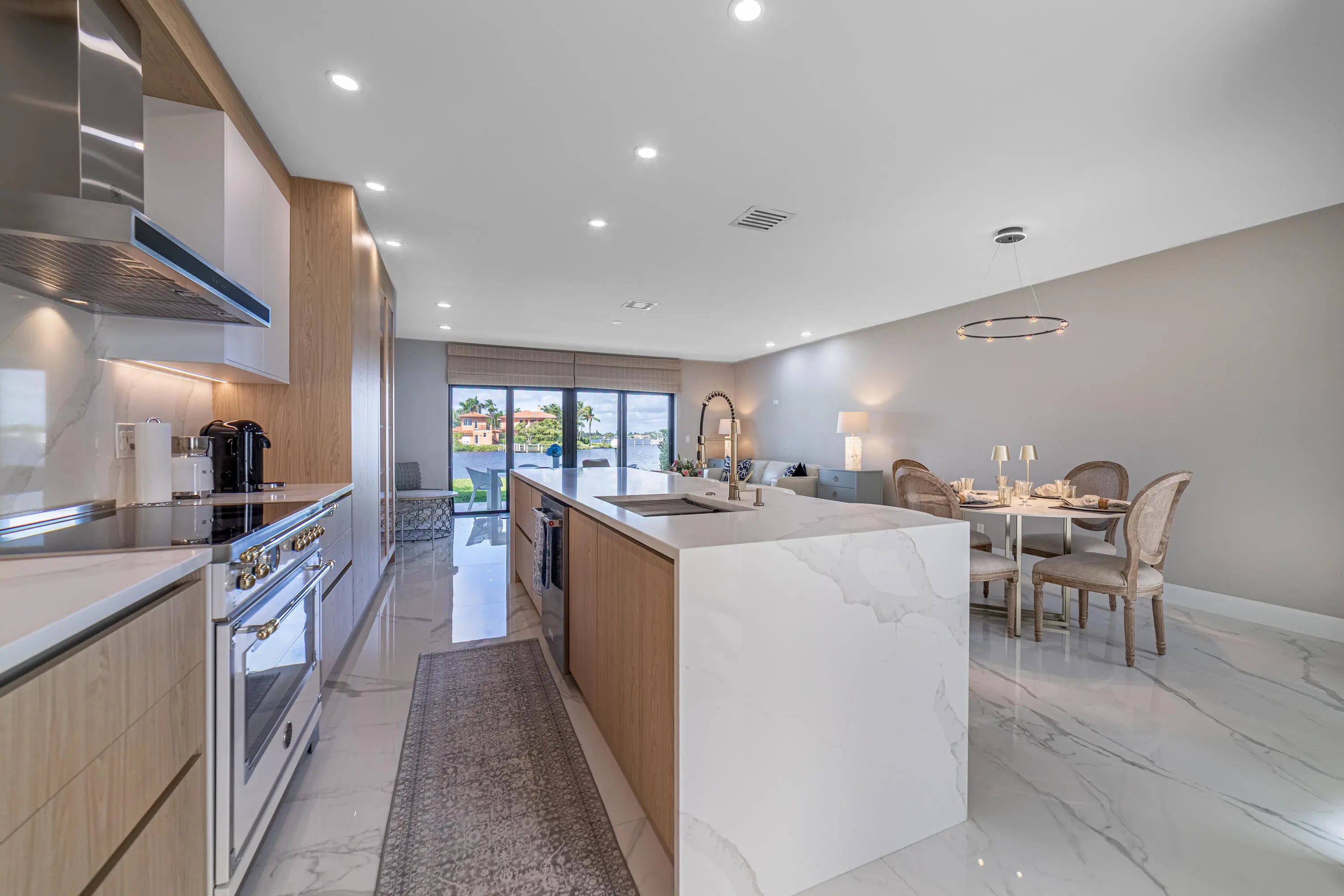 Direct Intracoastal townhouse -This beautifully renovated residence on Palm Beach Island is available for immediate sale and offers a highly desirable floor plan with a guest bedroom and full bath on the main level, and a spacious primary suite upstairs. Enter through the gated front patio and feel instantly at home. Inside, oversized 48x48 porcelain tile floors enhance the open living areas, creating a bright and expansive atmosphere. The open-concept kitchen features top-of-the-line stainless steel appliances, custom cabinetry, quartz countertops, and a large island overlooking the living and dining areas. Floor-to-ceiling sliding glass doors on both the east and west sides flood the home with natural light and open to private patios, offering effortless indoor-outdoor living. Enjoy breathtaking direct Intracoastal views and stunning sunsets from the west-facing patio ideal for entertaining friends. The community pool and common dock are just steps away. Additional features include a laundry area with stackable washer and dryer, one covered parking space, and one guest parking space.