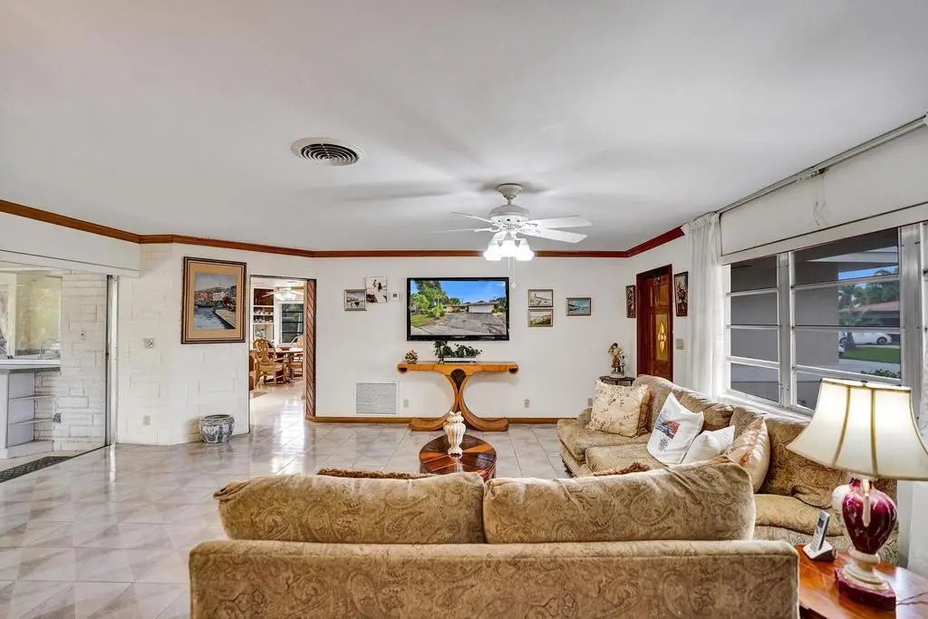Located in the desirable neighborhood of THE COVE, this 3/2 home is ready for your customization. Huge corner lot on private, quiet street. Split floor plan allows for privacy. Brand new 2025 roof. Walk into expansive living room overlooking large, screened lanai. With almost 1900 s.f. under air, plus a true two-car garage, this is not your typical East Deerfield Beach home. Plenty of room to expand on the lot or even add a second story. 2020 A/C, 2021 H/W Heater. Circular driveway w/plenty of parking. Create your own masterpiece here. No HOA fees or hassles! Perfect location in the Cove; minutes to Sprouts, Target, The Cove restaurants and shops. Or bike to the renowned beaches of Deerfield Beach. Location, location, location!