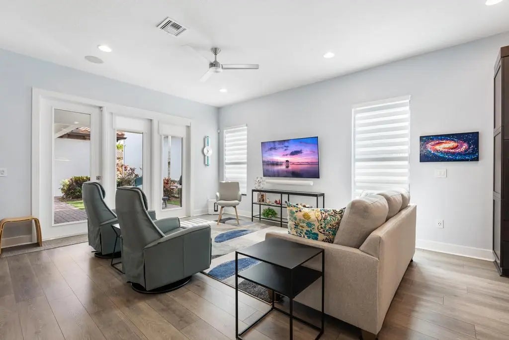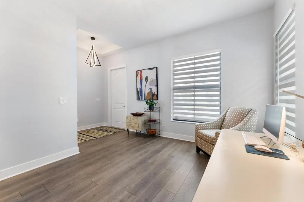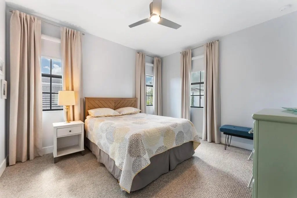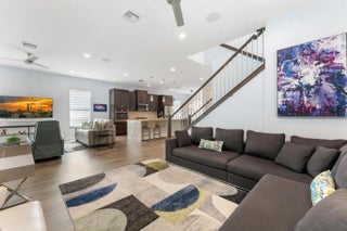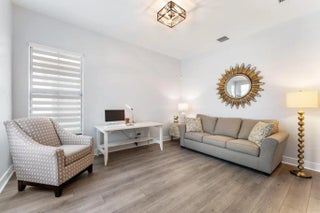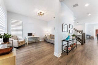 Impeccably maintained, like-new residence in the highly sought-after community of Alton. This two-story home offers the perfect blend of luxury and functionality with a thoughtfully designed open floor plan and a spacious three-car garage. The main level features a light-filled great room that flows seamlessly into the kitchen, complete with upgraded cabinetry, quartz countertops, a dramatic waterfall island, GE Profile appliances and eat-in dining area. The first-floor primary suite provides comfort and privacy with custom closets, upgraded cabinetry and a beautifully appointed bath. There is also a flex space for den, office or 4th bedroom. Upstairs, you'll find a versatile loft space along with two spacious bedrooms, each with its own en-suite bath, ideal for guests or family. Laundry room is also located upstairs. Solid core doors, designer lighting, custom window treatments, blinds, and drapes elevate the home's sophisticated feel throughout. Step outside to a meticulously maintained courtyard backyard featuring premium turf with lush, private, and perfect for effortless outdoor living. Residents of Alton enjoy a resort-style clubhouse, pool with cabanas, state-of-the-art fitness center, tennis, pickleball, basketball courts, and scenic walking trails. Just moments from Alton Town Center's shops and dining, and minutes to beaches, golf, and everything Palm Beach Gardens has to offer.