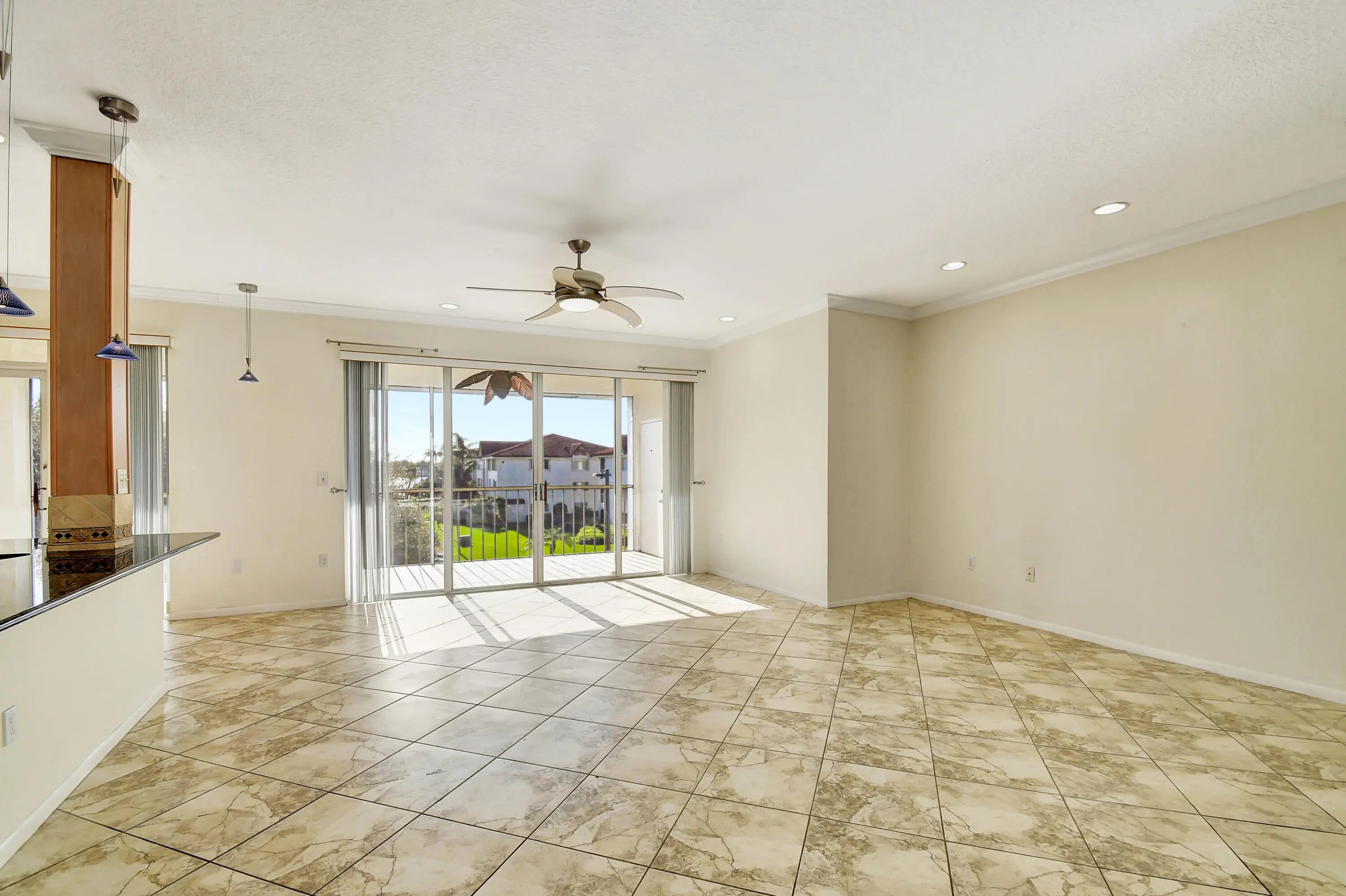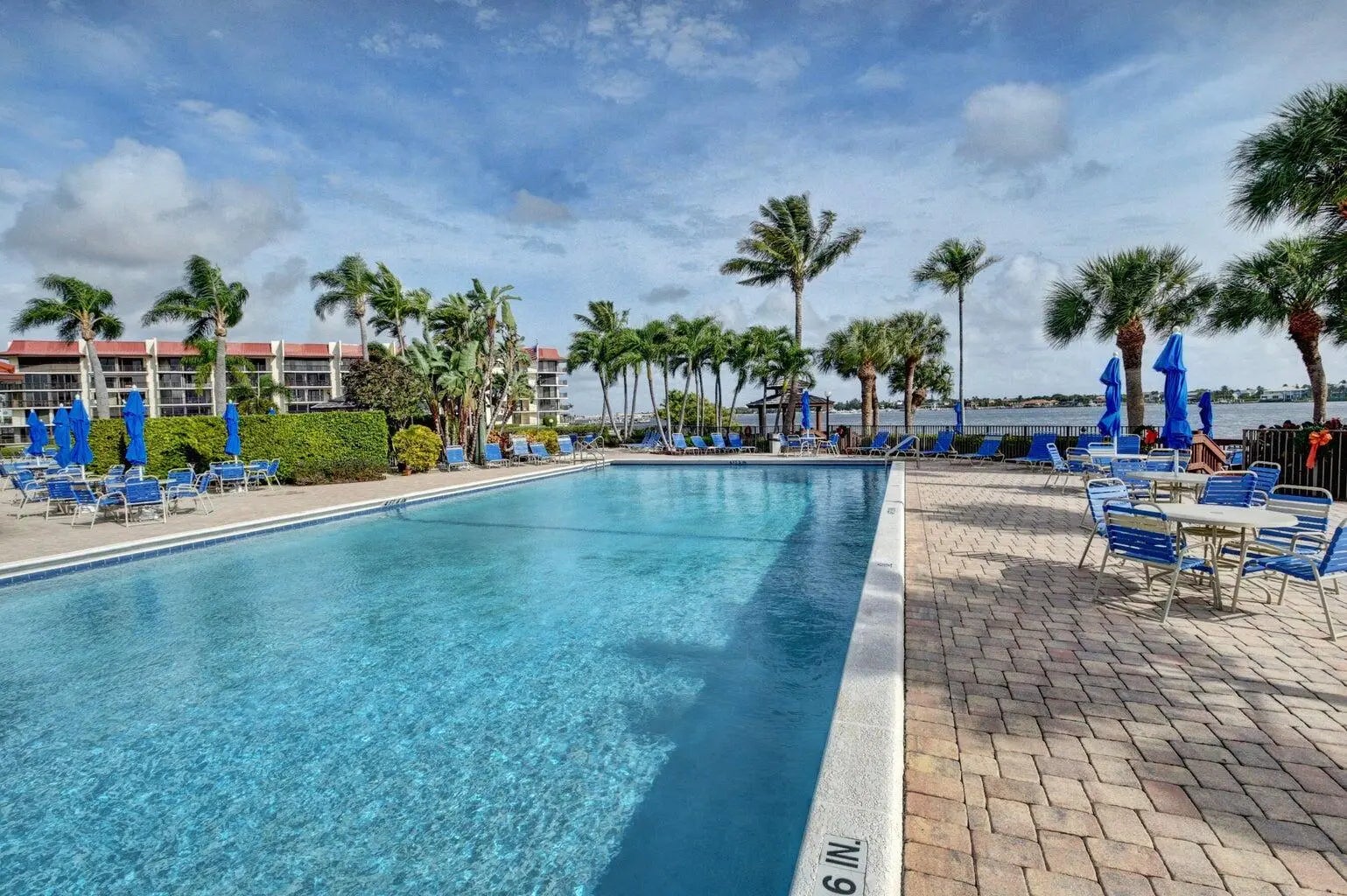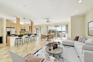 Your heart will skip a beat when you see the amazing sprawling waterfront setting of Half Moon Bay! (photos may be virtually staged). Watch the sunrise from the balcony of this beautiful, big, 2 bed, 2 bath, top floor condo. Soaring ceilings and open floor plan, large marble look tile floors, granite and stainless steel kitchen with tumbled marble backsplash, full size washer dryer, newer AC and water heater. All ages resort amenities to enjoy 365 days a year, or lease it when you're not in residence, no waiting, twice a year, which makes it an excellent choice for Investors. Two pools, hot tub, sandy beach, wood decks with gazebos, tennis, billiards and more. Five marinas just north, the Boynton Inlet just south. Leave the stress, come decompress: LOVE WHERE YOU LIVE!