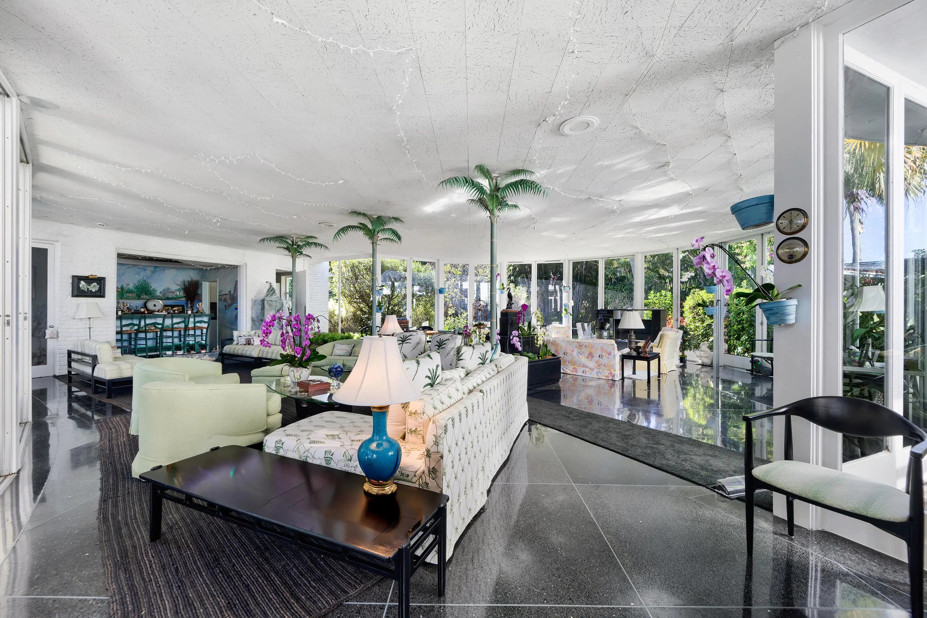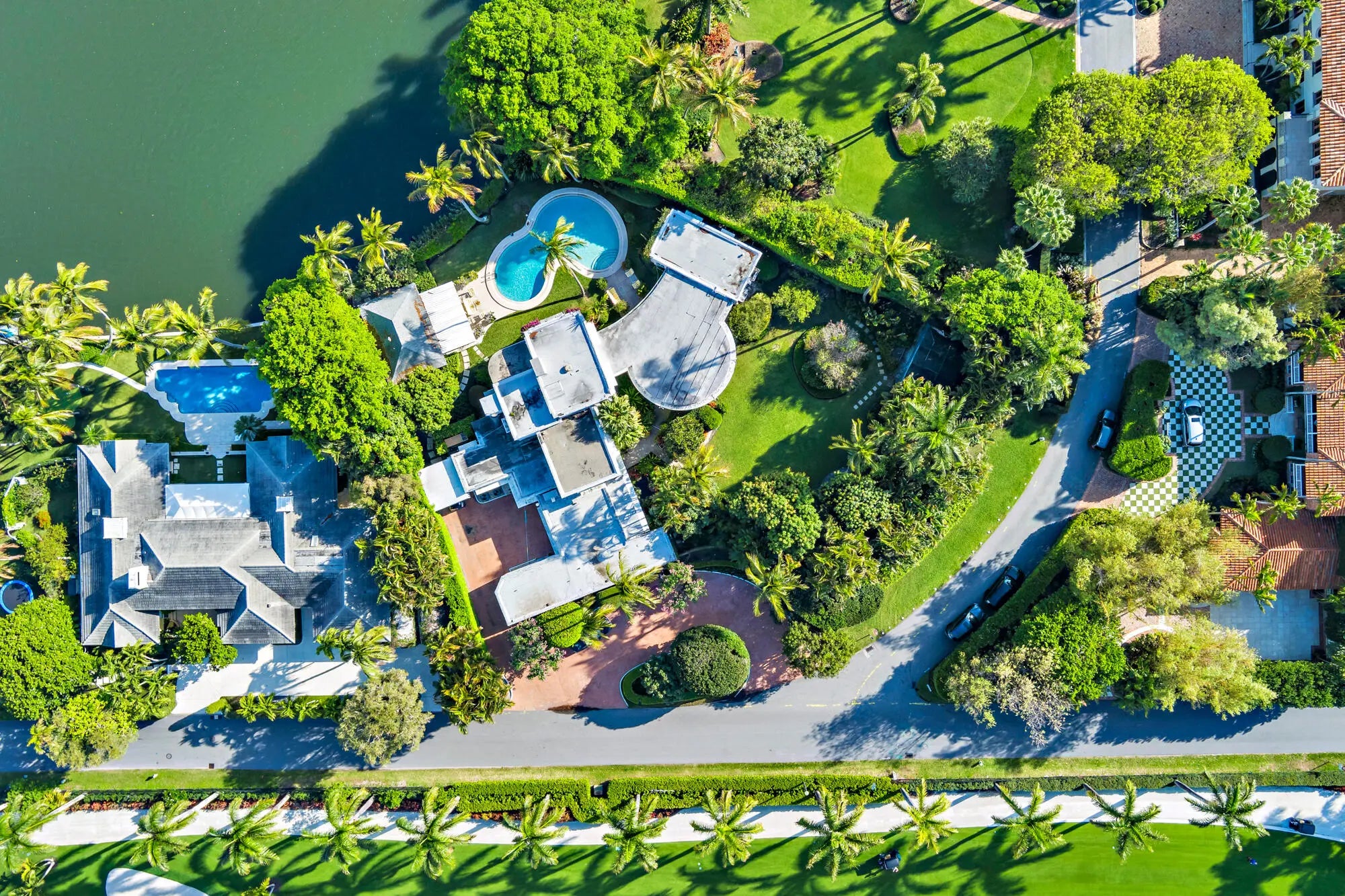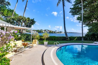 Located on Island Road in the Estate Section of Palm Beach, this 31,798± square foot property offers 100 feet of direct Intracoastal frontage with rare south-facing water views. To the north is the Everglades Club golf course, providing both Intracoastal views to the south and golf course views to the north. The lot's size, frontage, and premier location present an exceptional opportunity to build a new waterfront estate in one of Palm Beach's most desirable residential areas. The property currently features a 6,729± total square foot Mid-Century residence. The main house includes six bedrooms, six full bathrooms, and one half bath, along with formal living and dining rooms, a kitchen with butler's pantry, and a large party room with bar and kitchenette designed for entertaining. A separate pool house includes an additional two bedrooms and two full bathrooms. The grounds have a waterfront pool, as well as a spacious yard with a pond and orchid slat house. Additional features include a two-car attached garage, carport, full house generator, and full house water filtration system.