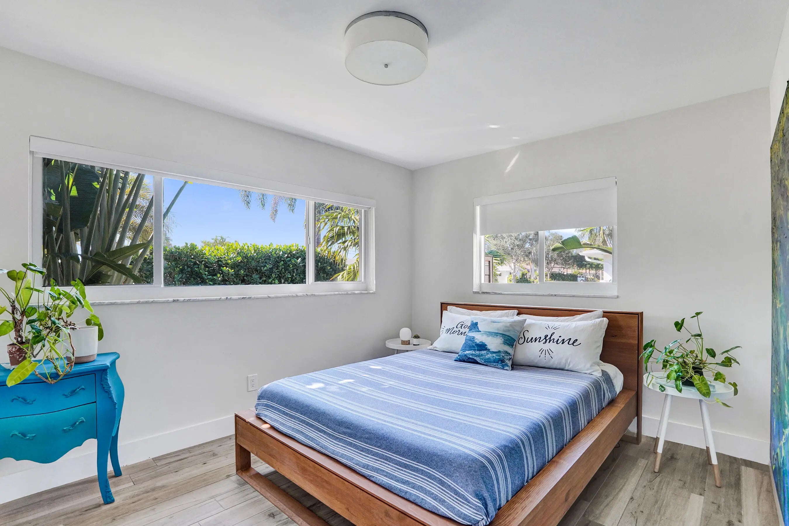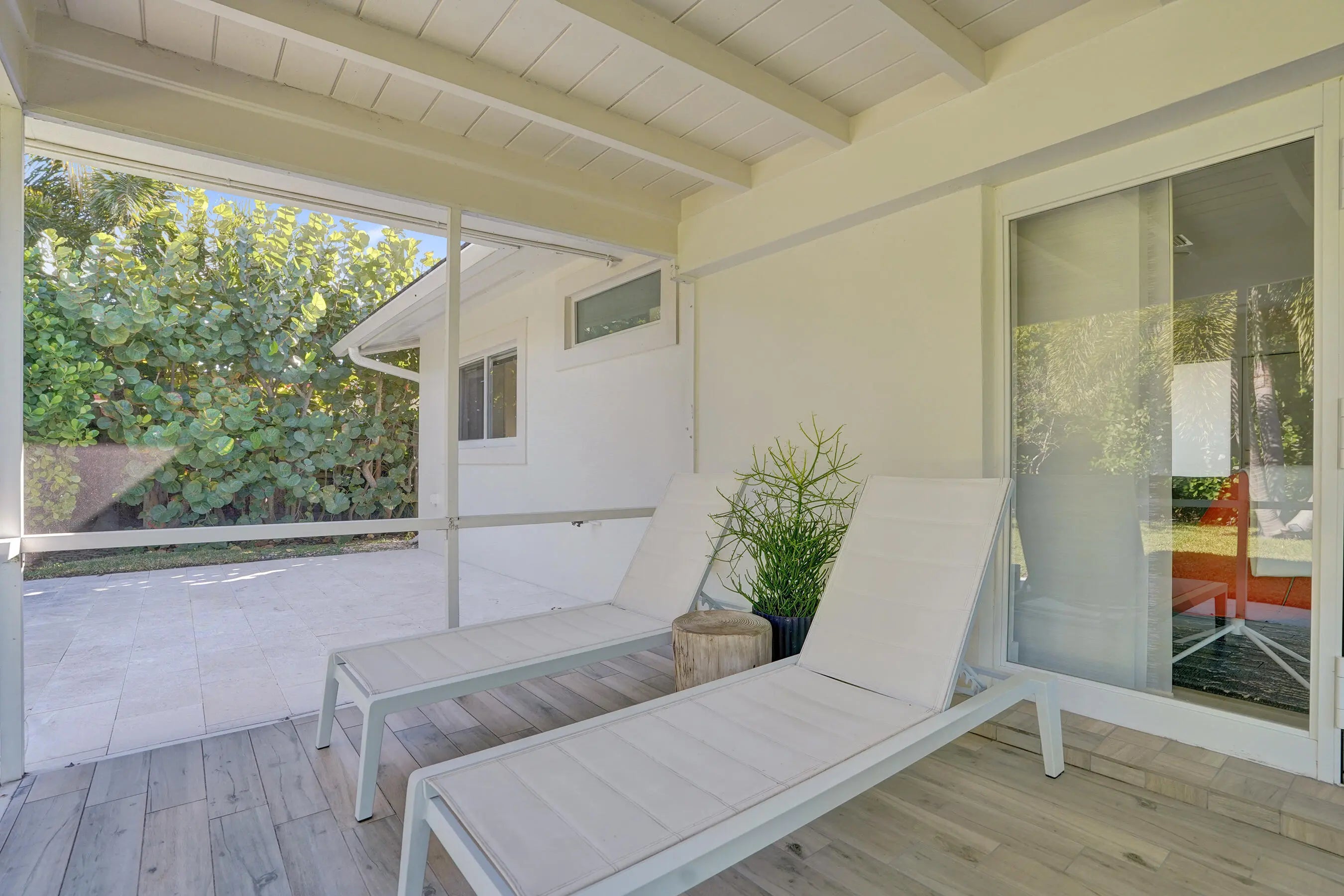 Welcome to Casa Flora - designer curated and furnished 2/ 2 home in East Boca's desirable Boca Square. Fully stocked, the casita offers a seamless blend of comfort, great energy and an unbeatable East Boca location with all amenities, 95 & beach minutes away. Open concept living with French doors flood the residence with natural light leading to a screened in terrace with a teak dining table and loungers for your sunrise coffee surrounded by lush tropical foilage and fenced private yard, The stylish bedrooms feature built in storage, a small gym in garage, dedicated office area, a full size W/D, - every aspect considered. Casa Flora is ideal for the discerning renter seeking a turnkey home surrounded by nature, great design and a walkable, bikeable neighborhood. Impact rated windows and doors for your piece of mind. Offered furnished (annual rate listed, inquire for shorter term rates / options) Grass cutting service included. Schedule a private tour of Casa Flora today! No Pets. No Smoking.