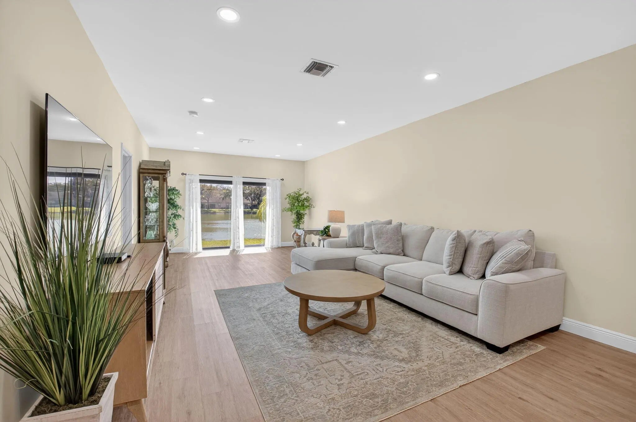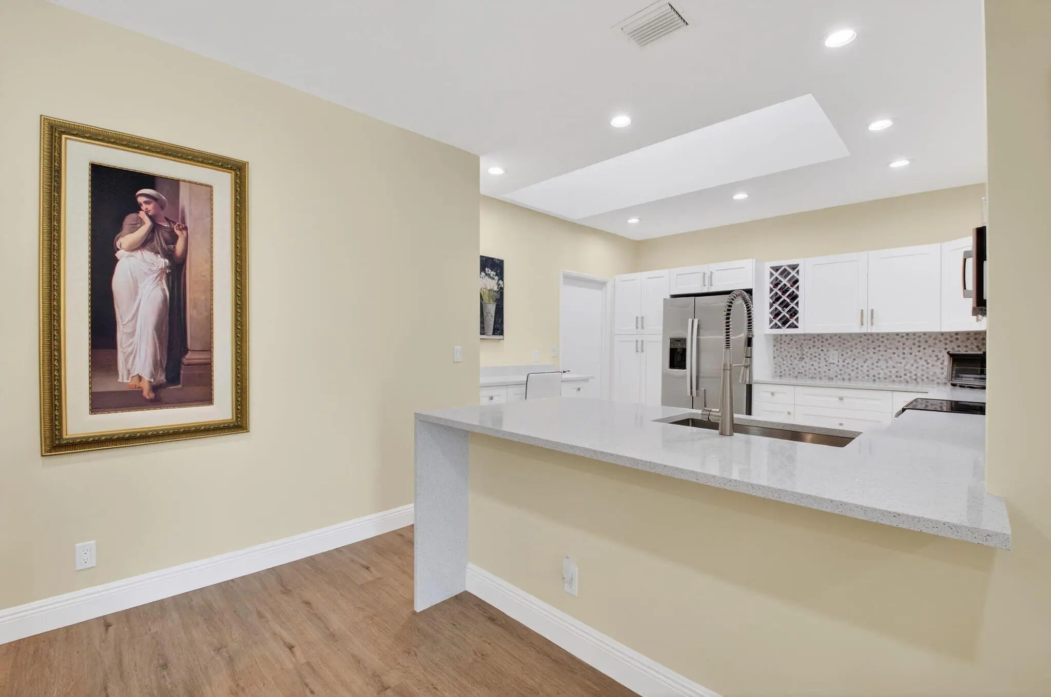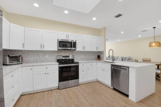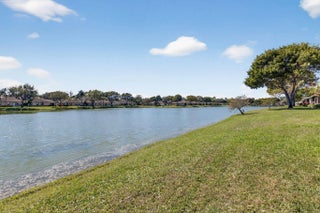 Move in ready : Beautifully updated lakefront villa with southern exposure. From the front door, enjoy stunning lake views in this spacious 1,423-sq-ft home featuring 2 bedrooms and 2 bathrooms with a thoughtfully designed layout for modern living. The recently renovated open kitchen is a chef's dream, showcasing sleek finishes and plenty of space for cooking and entertaining. Centrally located within the gated community on the widest part of the lake, this villa offers enhanced privacy and a tranquil setting. Residents enjoy wonderful amenities including a community pool, tennis, pickleball, and an active social club. Major updates include A/C and water heater (2025), appliances (2025), hurricane windows and front door (2025), and a fully paid new roof (2026).