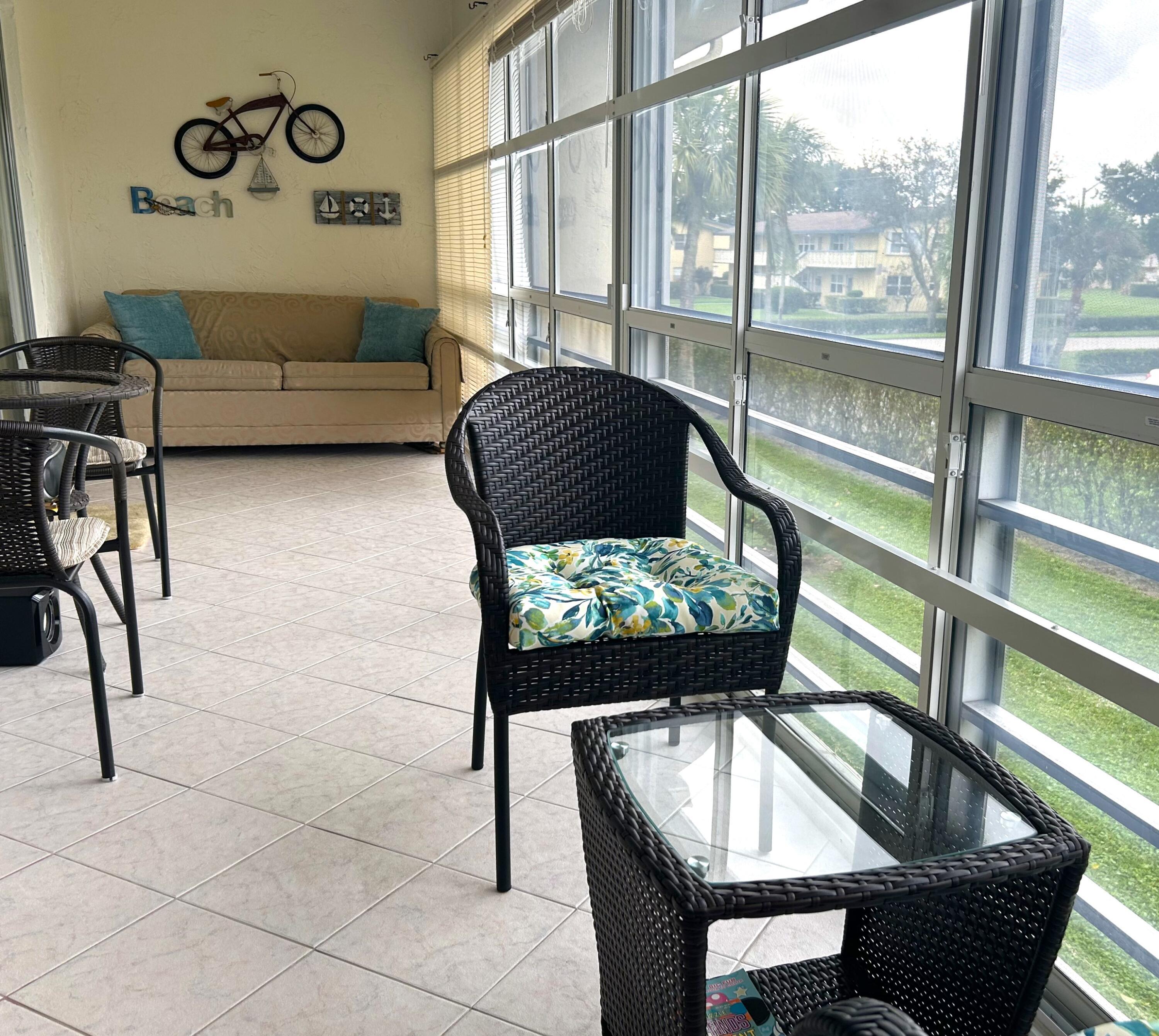 Beautiful and meticulously clean, large and spacious 1 bedroom, 1.5 bath condo in a vibrant active 55+ gated community. New Roof, New Central AC and New Water Heater. This immaculately maintained condo is fully furnished, and features a washer/dryer in unit, dishwasher, porcelain tile in the kitchen / living areas, spacious master suite with walk-in closet, and lots of storage space. The Florida room provides year-round comfort with plexiglass and tinted windows, creating an extended air-conditioned space. Residents can indulge in resort-style living with access to 11 pools, including an indoor resistance pool, a fitness center, pickleball, tennis courts, bocce ball, billiards, hobby/wood shop, golf courses, clubhouse for social gatherings and entertainment, shows, dances, shuttle bus.Close to the turnpike, I-95, the Kravis Center, Rosemary Square, Palm Beach International Airport, fine dining, nightlife, Palm Beach outlet mall shopping, and beautiful beaches. Oxford has a private pool at the end of the building for Oxford residents, a social room with kitchen, and laundry facilities.