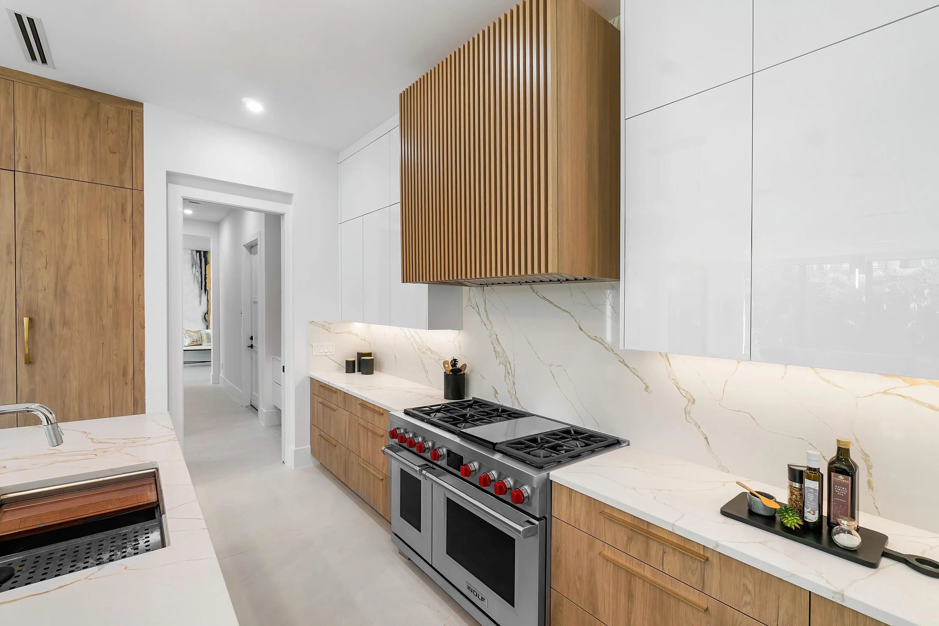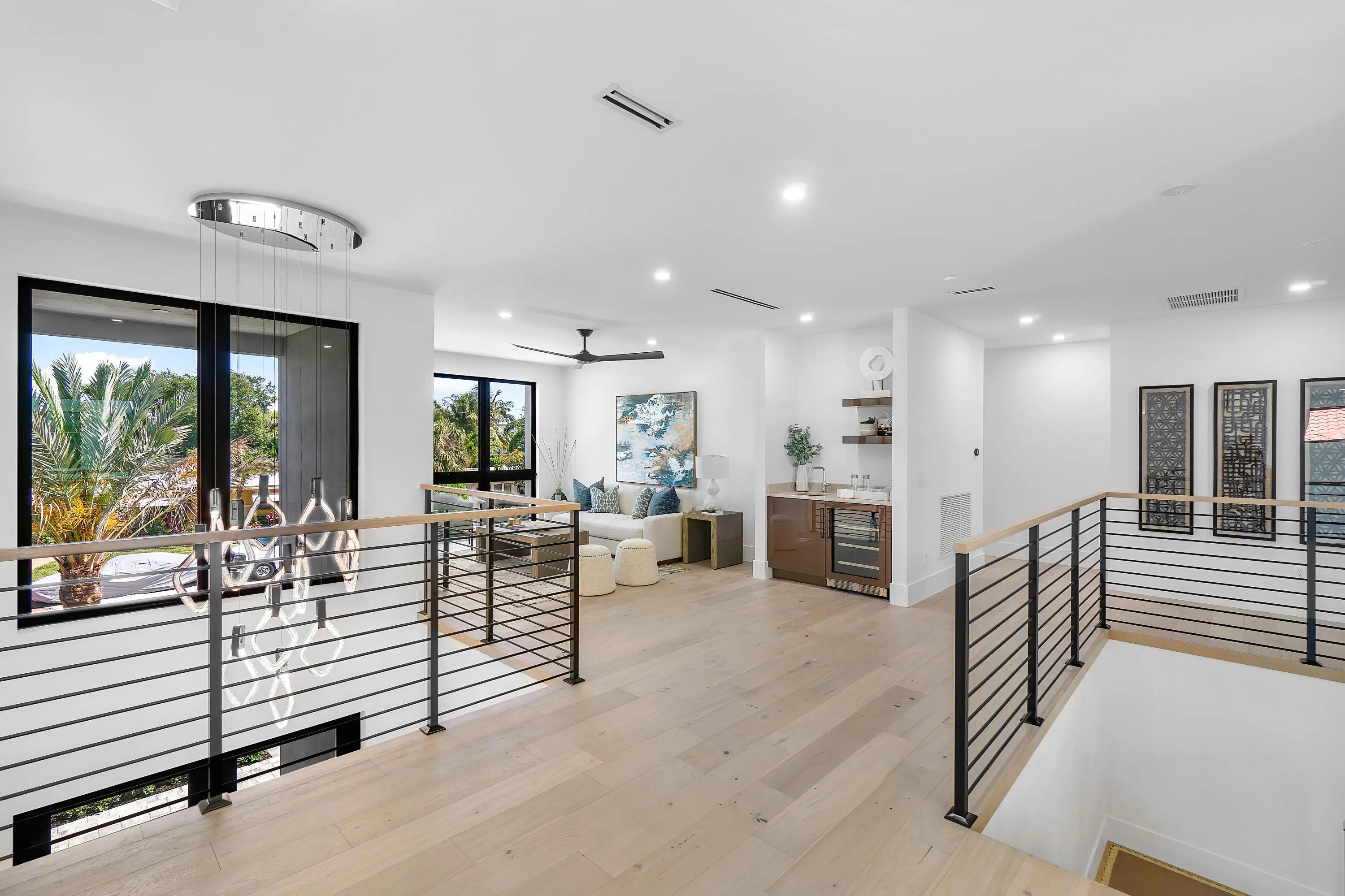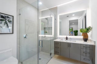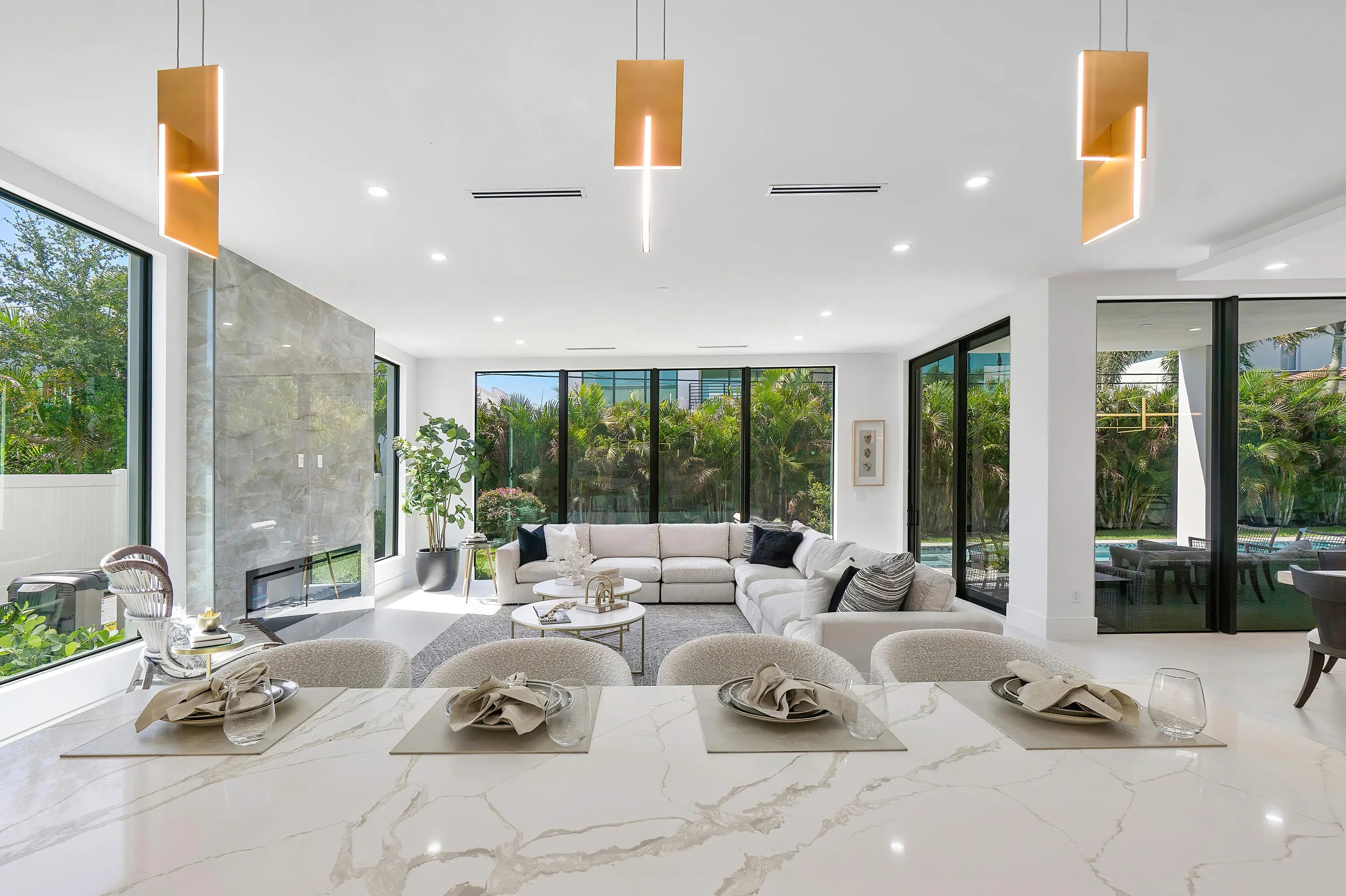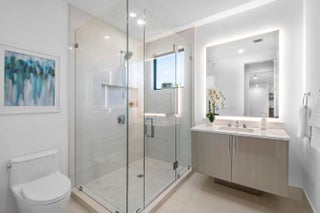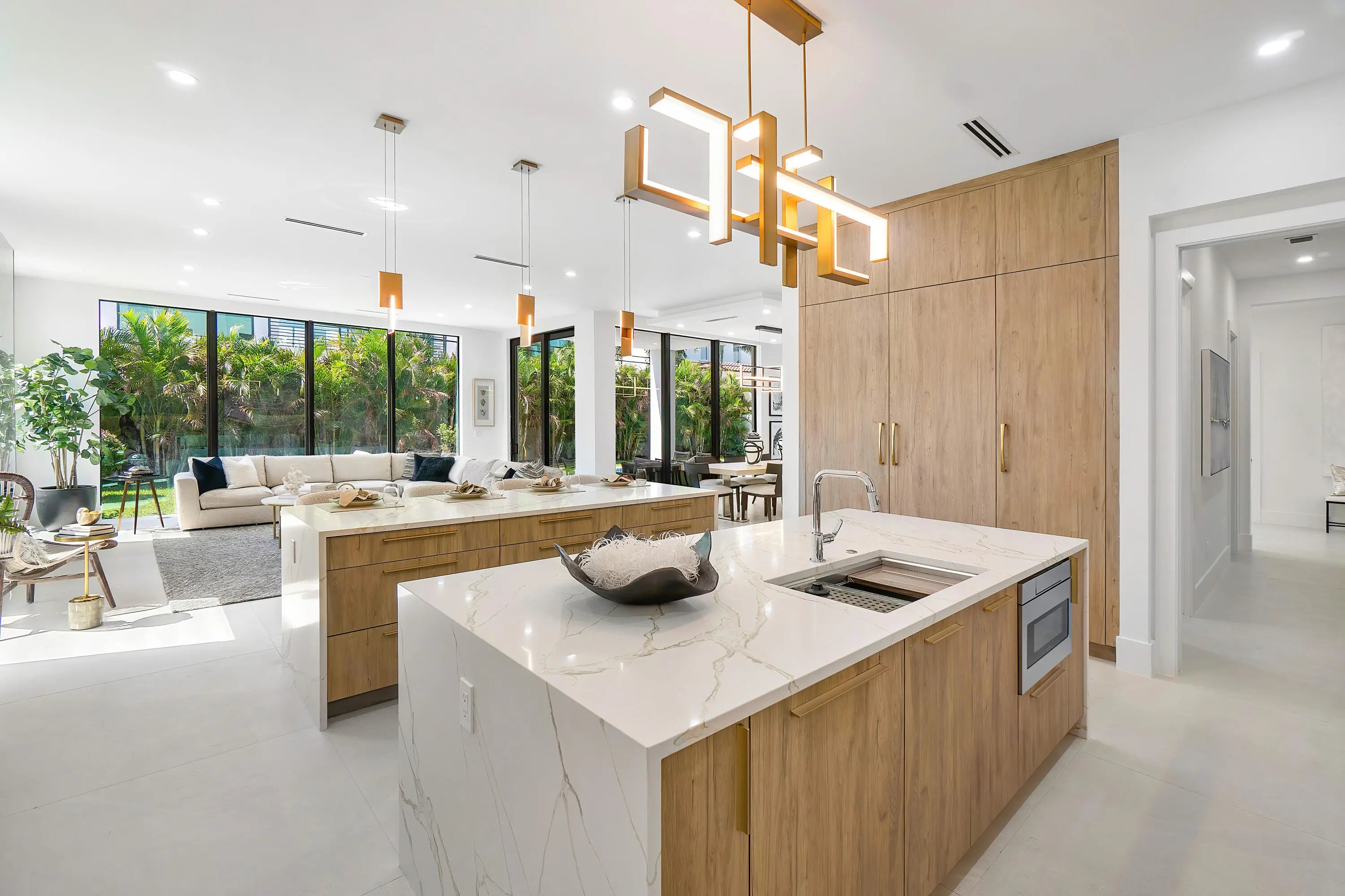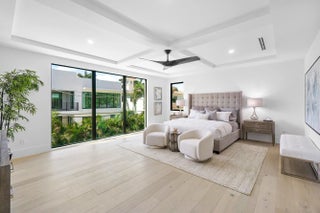 Contemporary sophistication and a prime Golden Triangle location. Just blocks to Mizner Park and downtown Boca Raton, this just completed five-bedroom estate features a grand open floor plan, with expansive two-island kitchen (two sinks, two dishwashers), a two-story living room, expandable dining room, and large family room. A first-floor bedroom is an ideal office or in-law suite, while upstairs you'll find three junior suites, plus a light filled primary with extended closets and spa inspired bath. Outside the south facing marble patio features a built-in summer kitchen, heated saltwater pool and spa, plus plenty of room for pups or playsets. Walkable to Mizner Park a Moke ride away from The Boca Raton and beaches, this home is not to be missed!