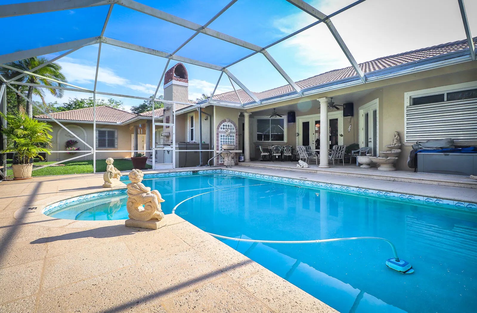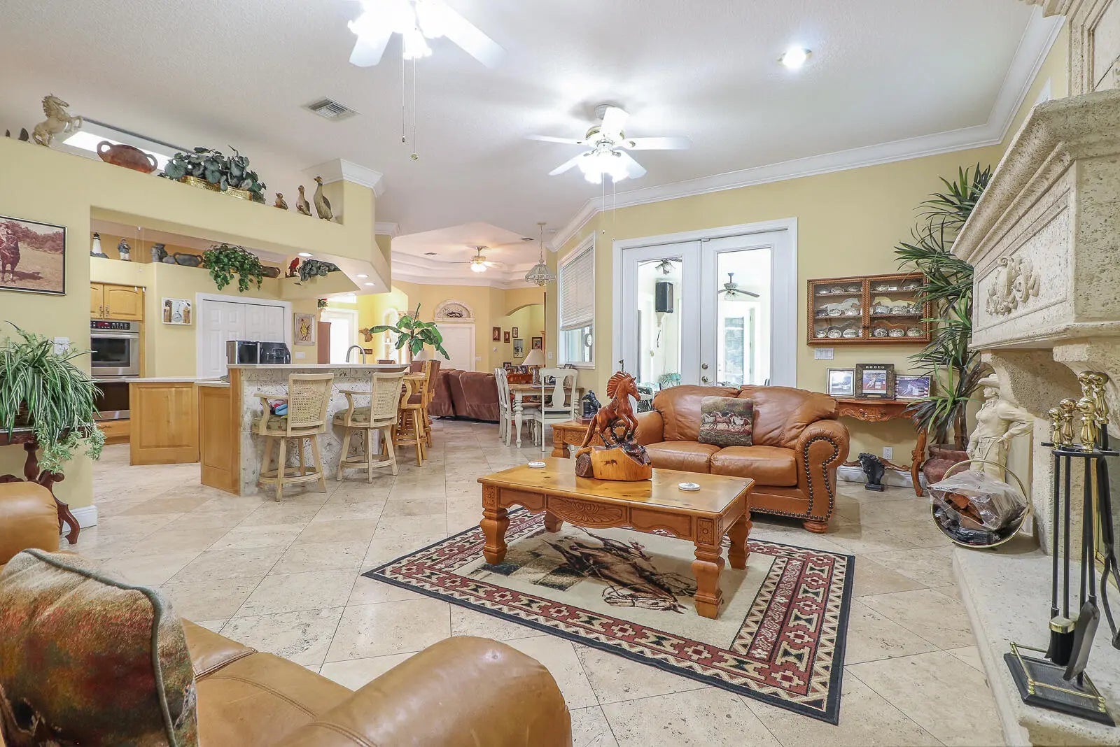 EQUESTRIAN DREAM estate with riding rink & luxury barn. Rare oversize 1.8 AC lot.. Solid concrete construction 4BR/3BA/3 car garage + den/office/5th BR. . Gated/fenced. High ceiling throughout. Luxury finishes exterior and interior by original specialty owner/contractor. Lavish use of stonework and oversized trim in all areas of the house. True estate within the ''Estates''. Conveniently located in close proximity to paved roadway. Huge circle driveway entrance and parking areas for trailers and/or motorhome/boat. Owned by barrel riding champion and used for training. True equestrians will immediately recognize the enormous value of this property. There is no match for this type property in Palm Beach Country Estates.