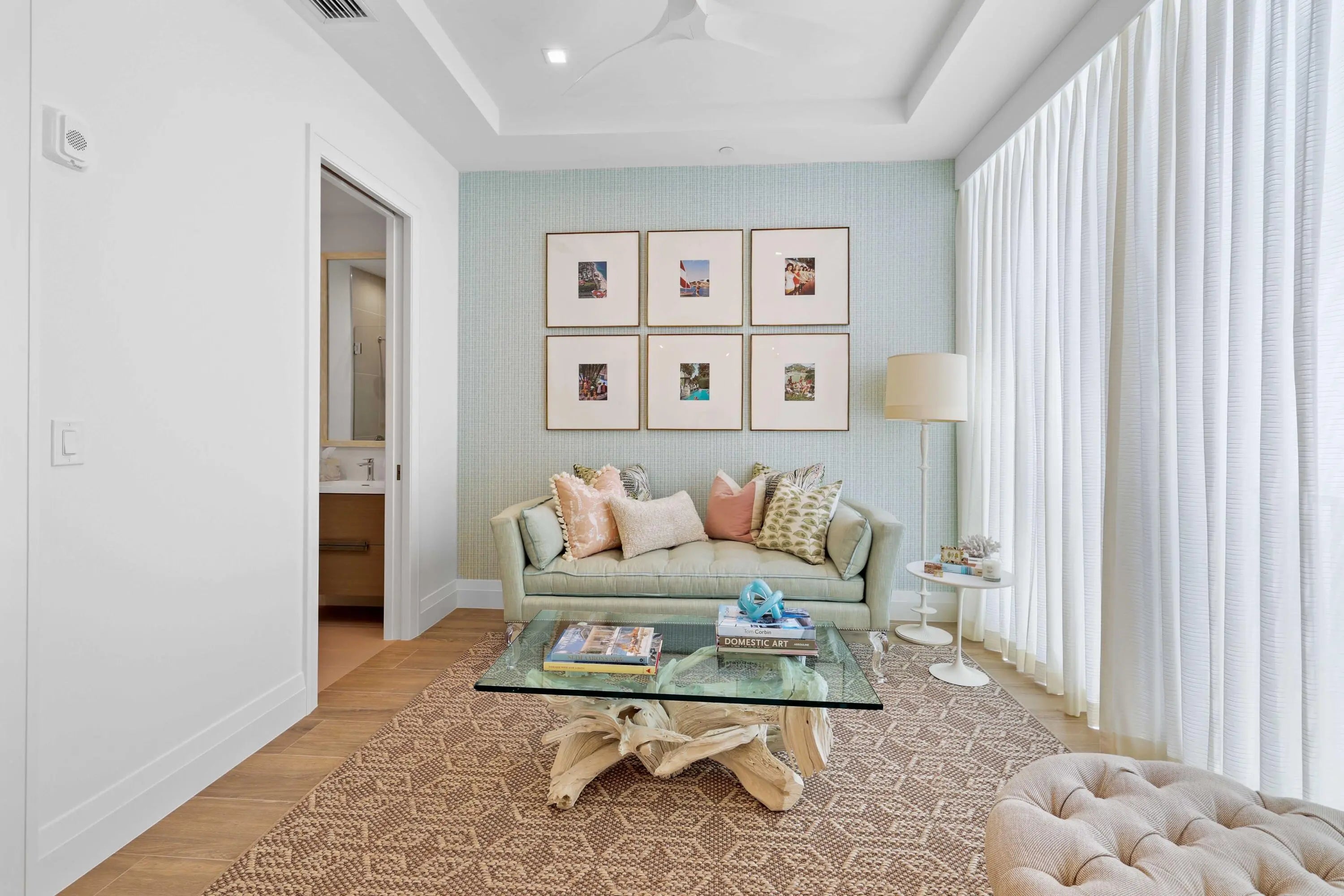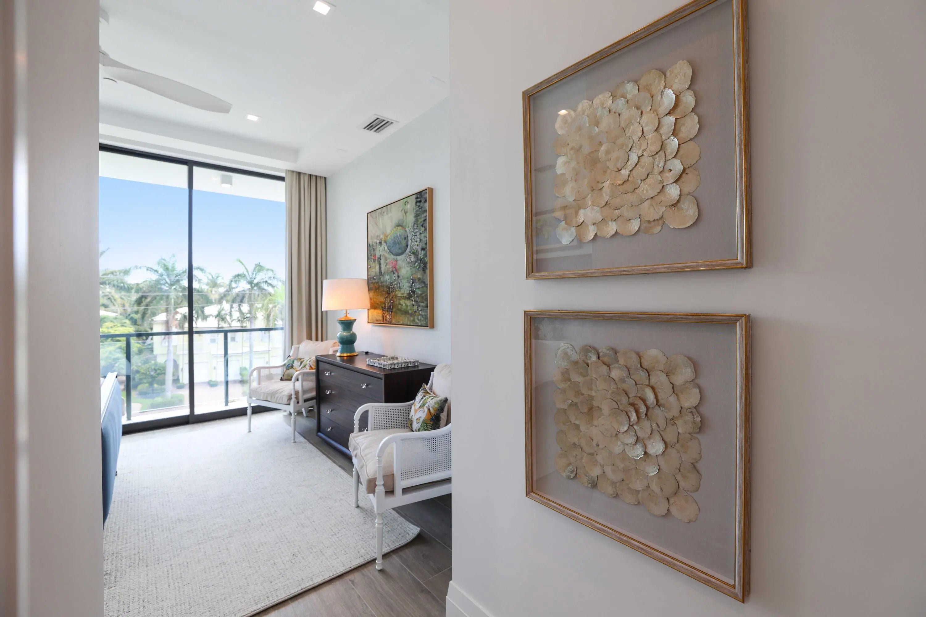 Experience unparalleled luxury just minutes from the beach and Delray's vibrant Atlantic Avenue in this exquisite, fully furnished 3-bedroom, 3.1-bath residence located in the town's newest and most opulent condo building, 1177 Moderne.As you step into this custom-designed home, you are greeted by a stunning entryway featuring elegant wallpaper and hand selected artwork that is showcased throughout the residence. Exquisitely furnished with designer pieces and adorned with sophisticated yet playful coastal colors and Palecek lighting, this lavish retreat is sure to impress. The vestibule provides private keyed access, leading you into a gallery hallway that grants access to all rooms and sets the tone for the refined aesthetic found in every corner. The gourmet kitchen boasts