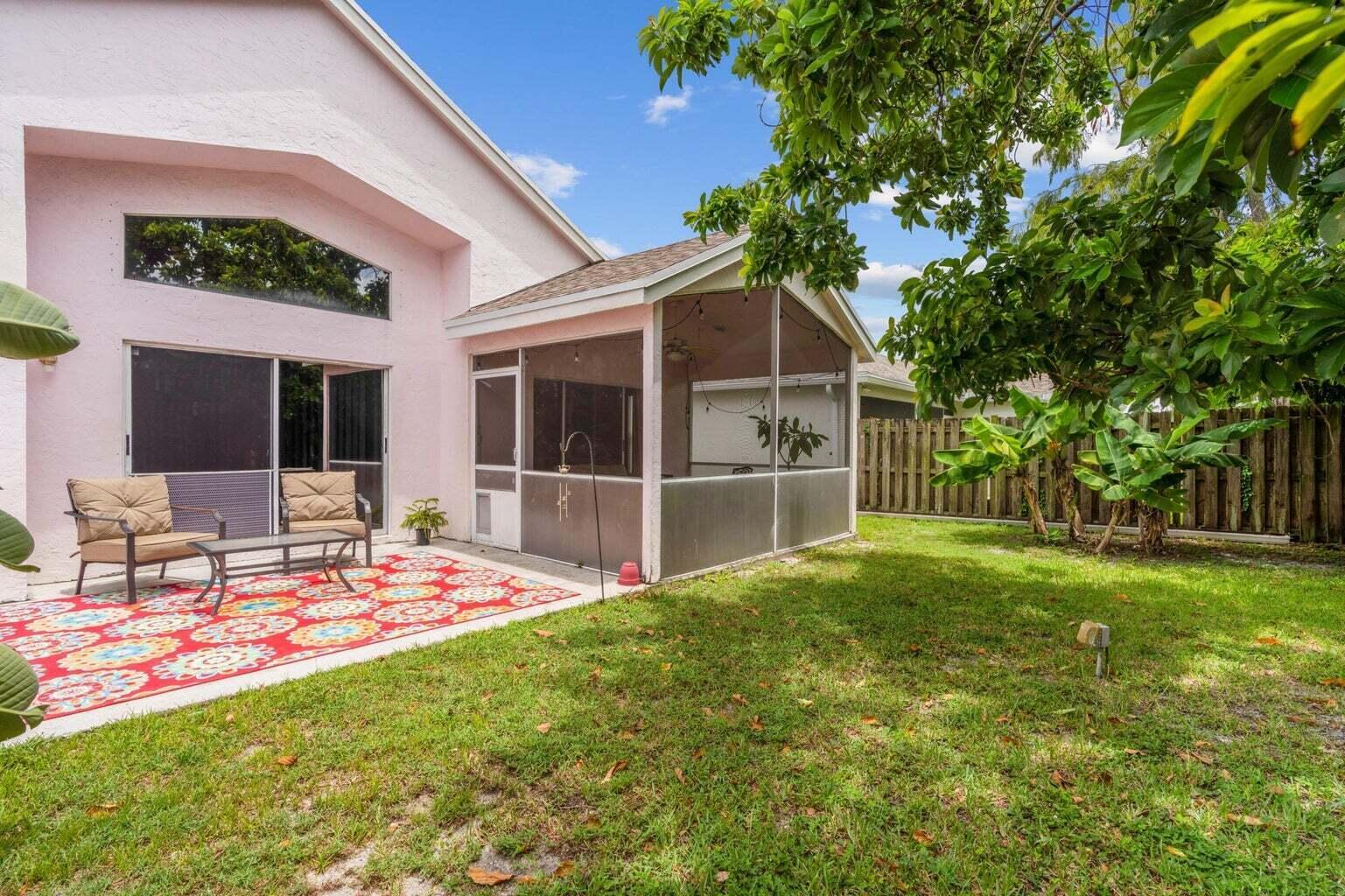 NEW ROOF INSTALLED 2022. Well maintained 3 bedroom 2 bathroom *split floor plan home. Large Kitchen that is open to the living area. *Master bedroom has walk in closet. The large master bathroom features, *dual sinks, *separate shower and *Large bath tub. *LAUNDRY ROOM INSIDE! *High vaulted ceilings and large open living areas. This home also features a *2 car garage and a large driveway. The sliding doors lead out onto the *screened in patio with a separate paved open patio, perfect for BBQing on those nice summer nights. *FENCED in backyard with fruit trees for your enjoyment. Centrally located in Wellington at Emerald Forest, LOW HOA, A rated schools. Minutes from WEF! Close to shops, restaurants and the Wellington Green Mall.