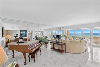 OCEANFRONT PENTHOUSE with a rare through-building floor plan. DEEDED 3,015 SF total with 2,150 SF under air + 388 SF Private SE & NW balconies with Sunrise-to-Sunset views of the Ocean, Intracoastal and 25 miles to Fort Lauderdale. LUXURIOUS 738 SF primary suite with dressing room, walk-in closet, and spa-style bath. KING SIZED 290 SF guest suite offers privacy or flex/office space. MODERN sophisticated vibe with porcelain tile, marble & quartz finishes, and 9-ft ceilings. SECURITY is multi-tiered 24/7 manned, keyed elevator, impact glass, and side-by-side garage parking. OCEANFRONT LIFESTYLE on 38 acres with private beach, marina for 50' yachts, pools, spas, tennis/pickleball, gyms, EV charging, putting green and much more.interior side by side garage parking. OCEANFRONT LIFESTYLE with private beach, full-service marina for 50' yachts, pools, spas, tennis / pickleball courts, libraries, EV charging, dog park, putting green, workout gyms all set on 38-acres of lush tropical grounds.